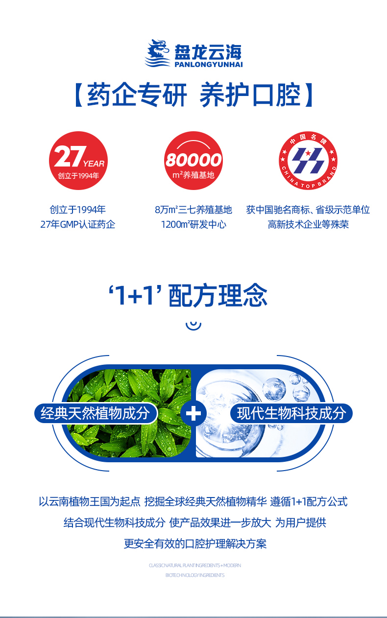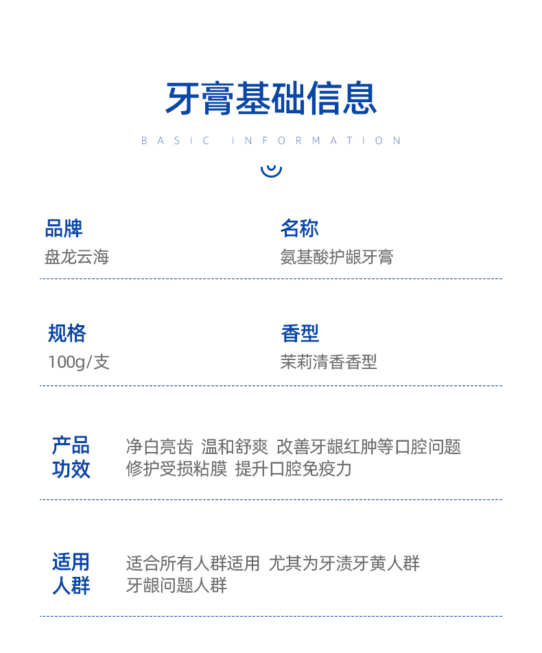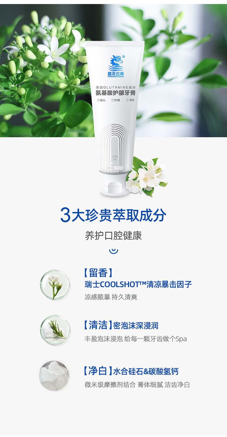 【盘龙云海】氨基酸护龈牙膏清爽劲爆纳米级生物技术优质氨基酸洁净更护齿牙齿更健康