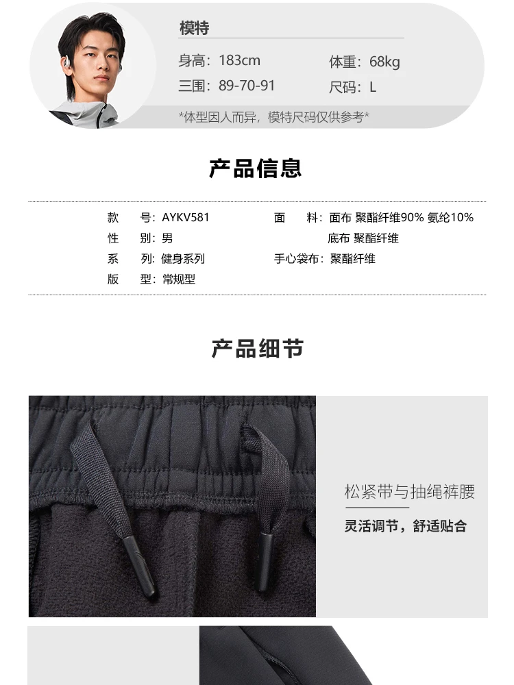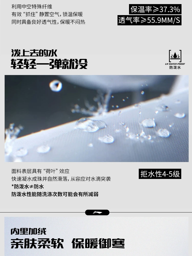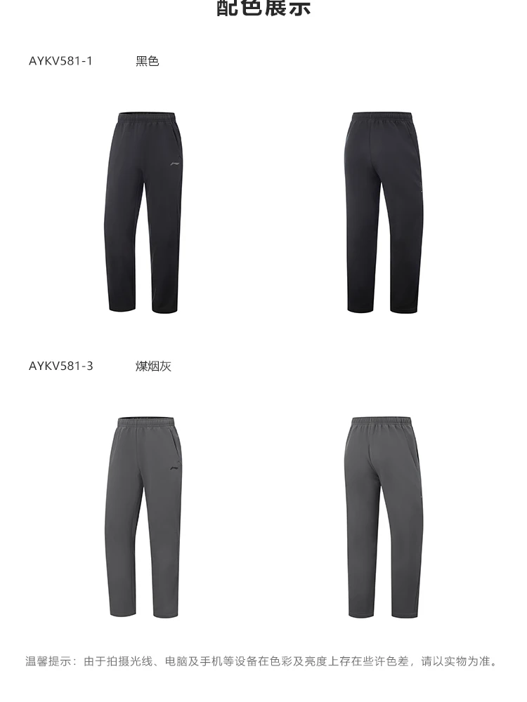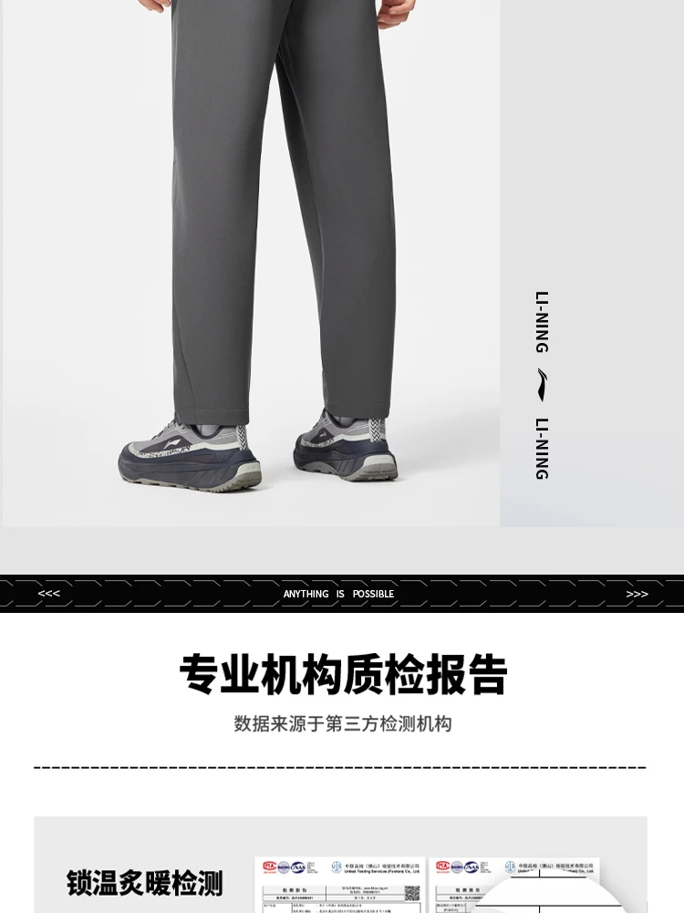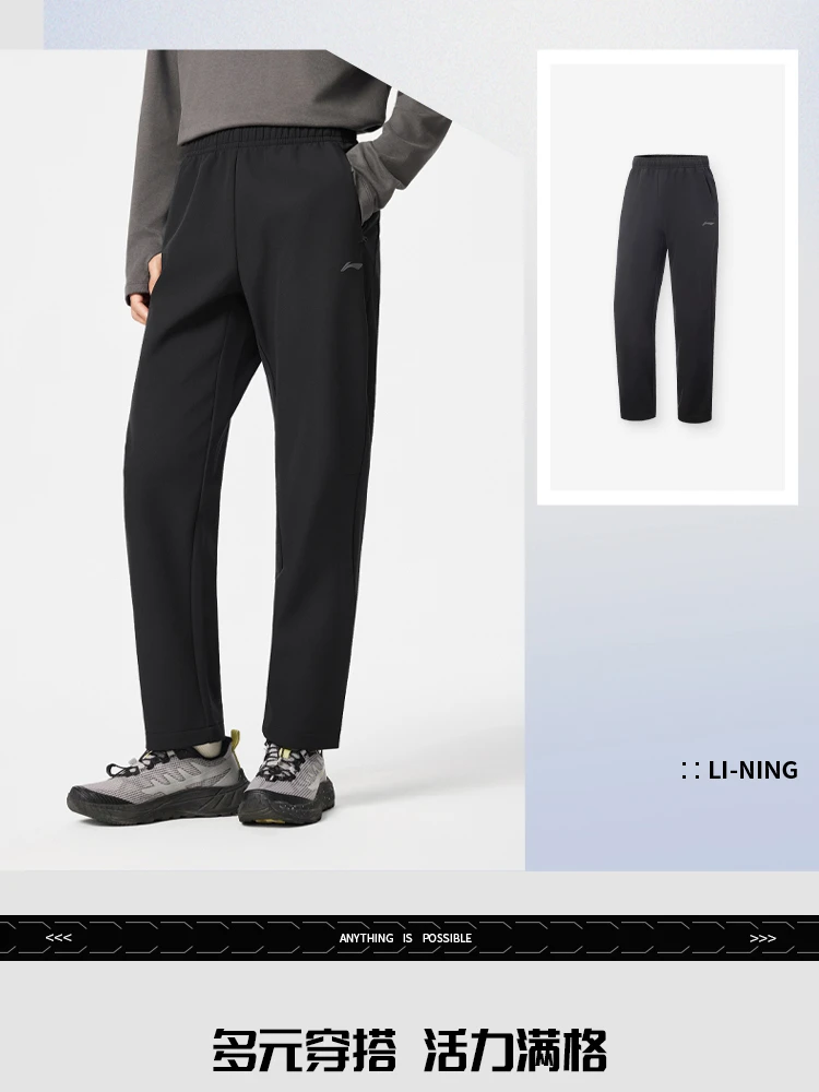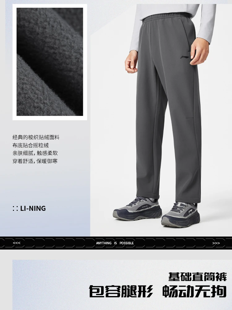 李宁男子直筒加绒保暖防泼水运动长裤AYKV581