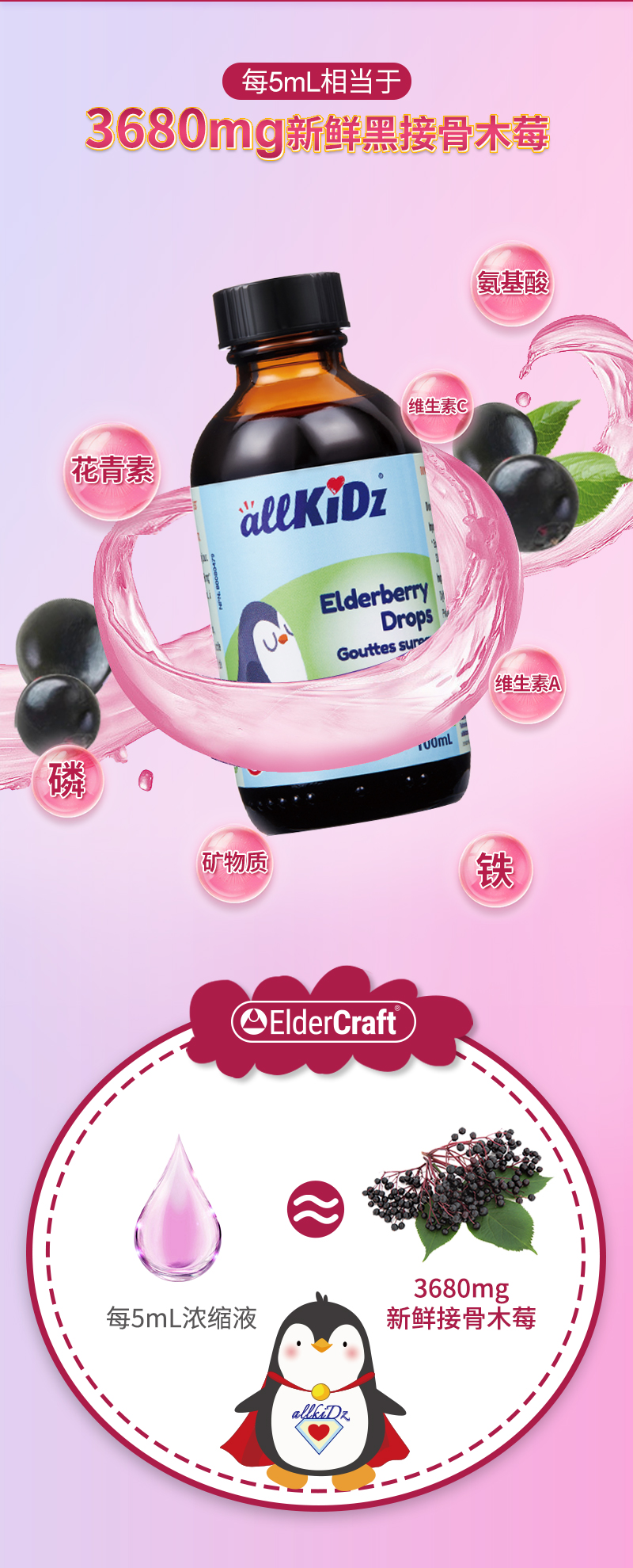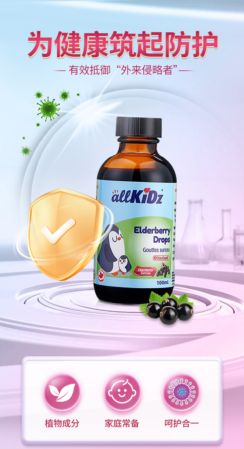 【品牌直发】【接骨木莓汁+葡聚糖组合装】加拿大原装进口 增强免yi力 植物提取,yu防感冒,加快hui复【爱奇氏/allKiDz出品】YYDS-AQS