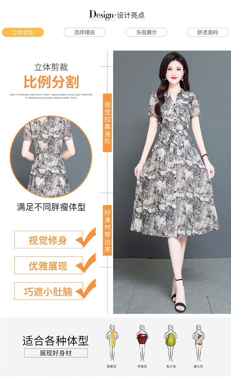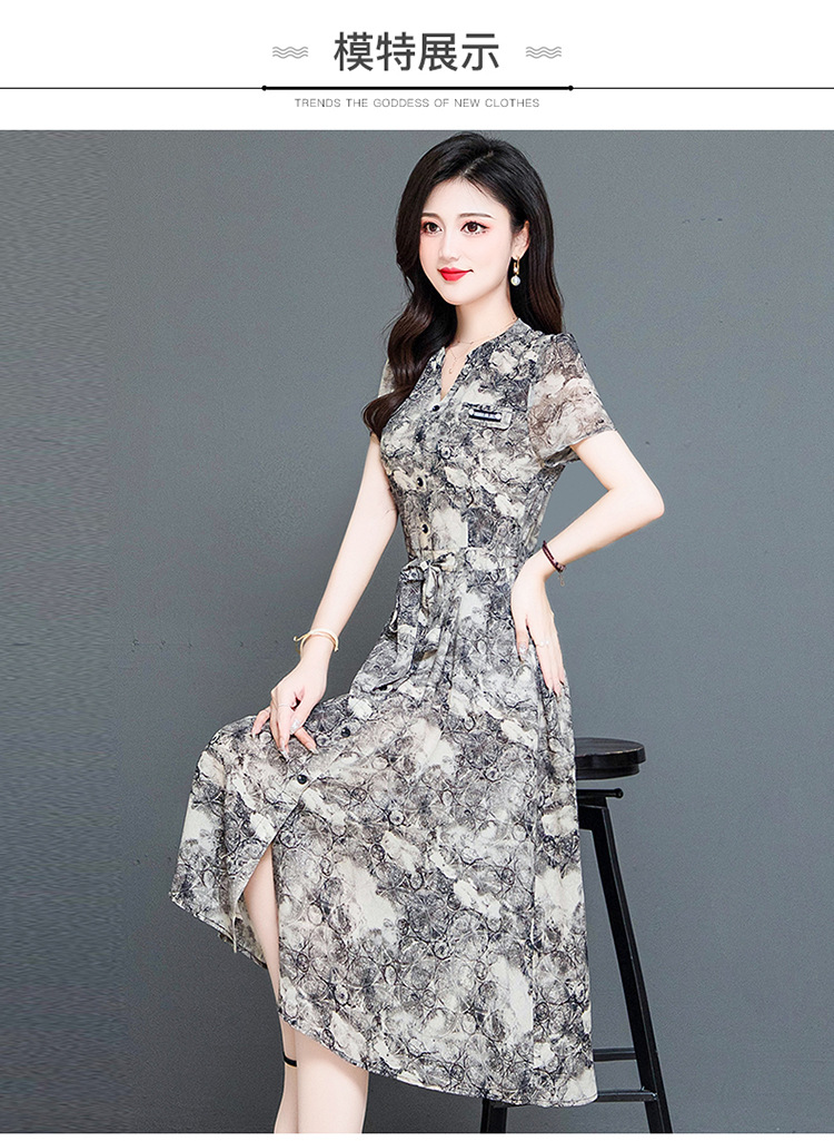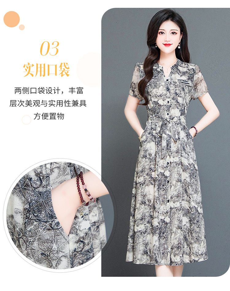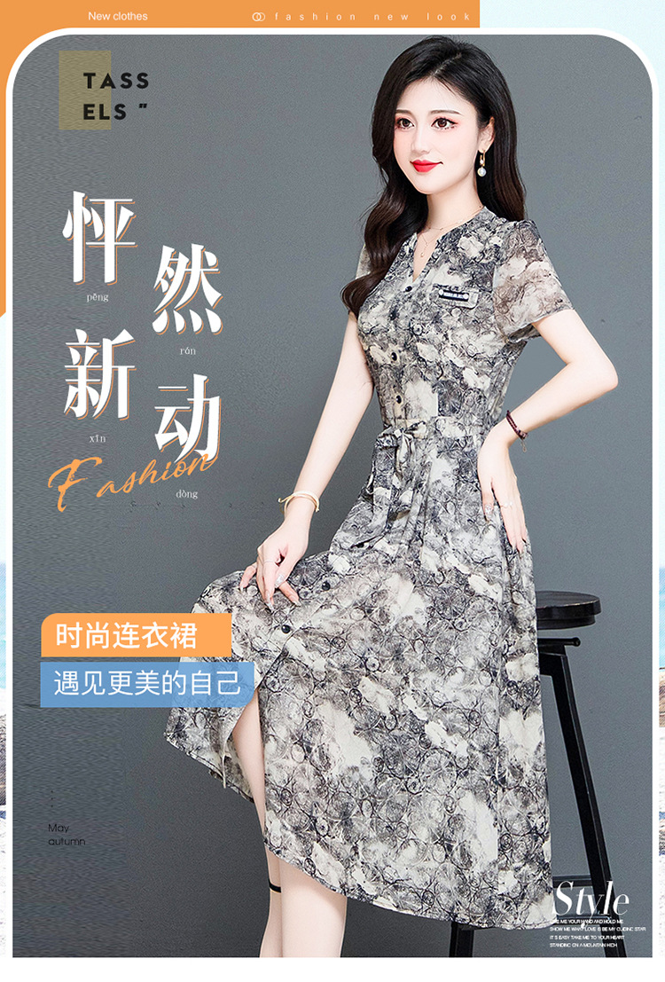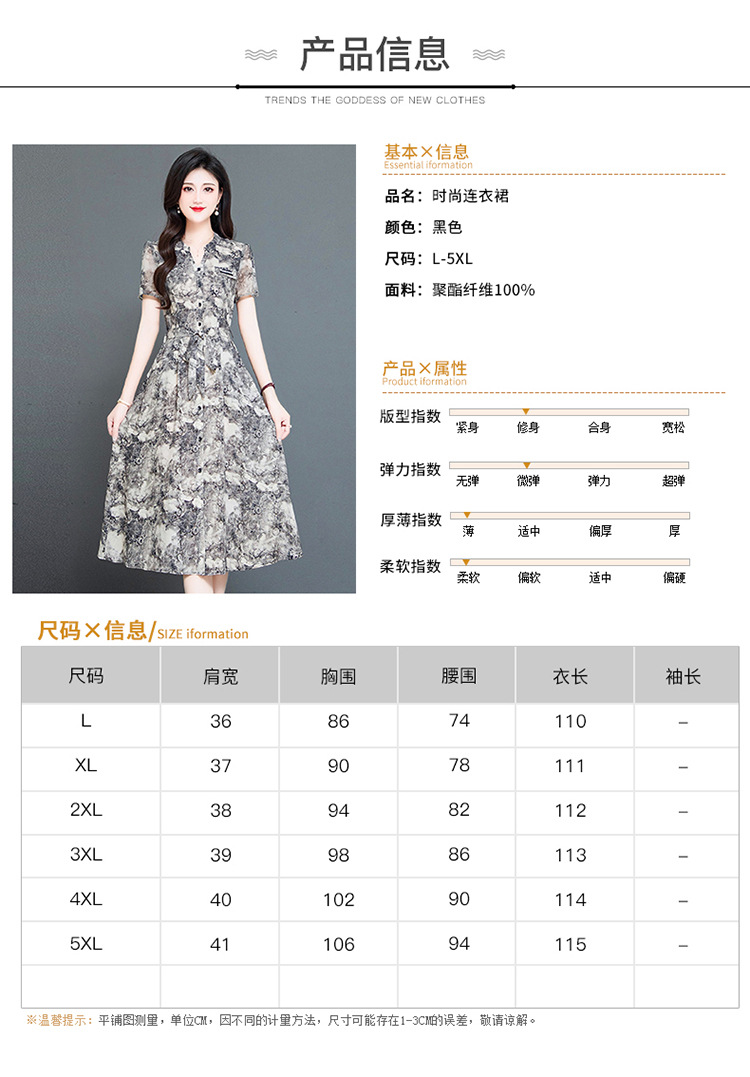 QYM 239352-Y印花连衣裙时尚优雅A字裙