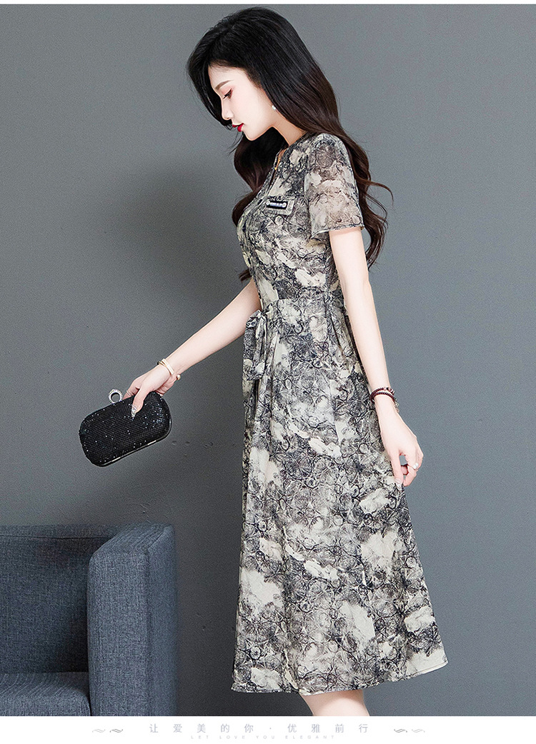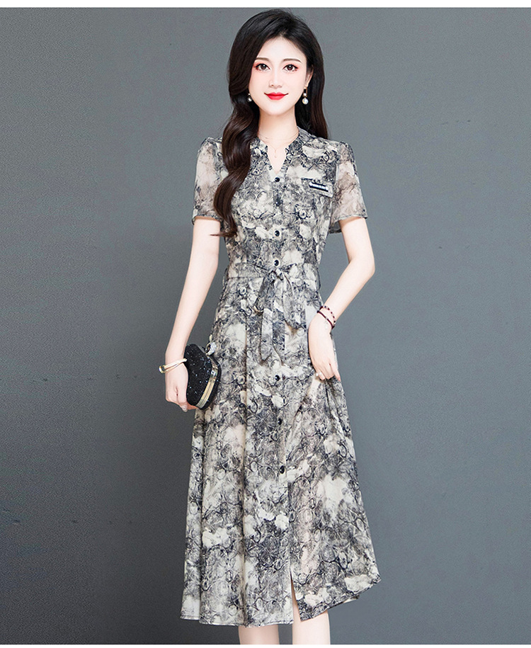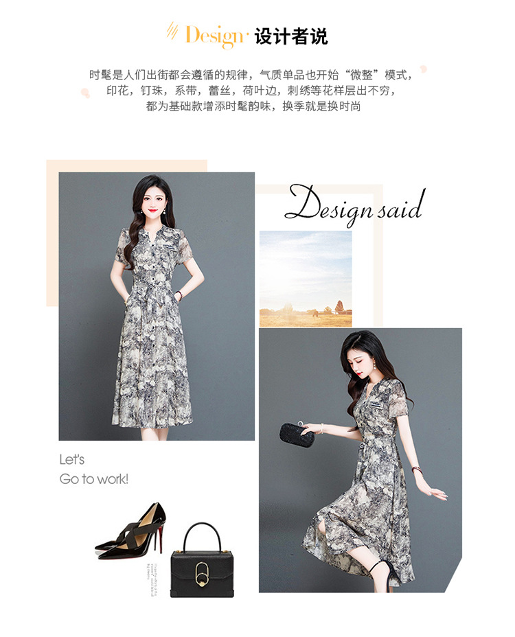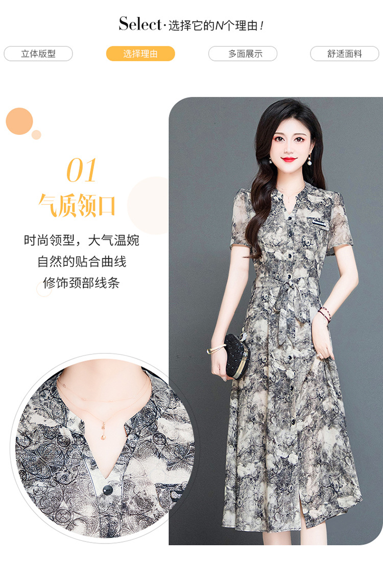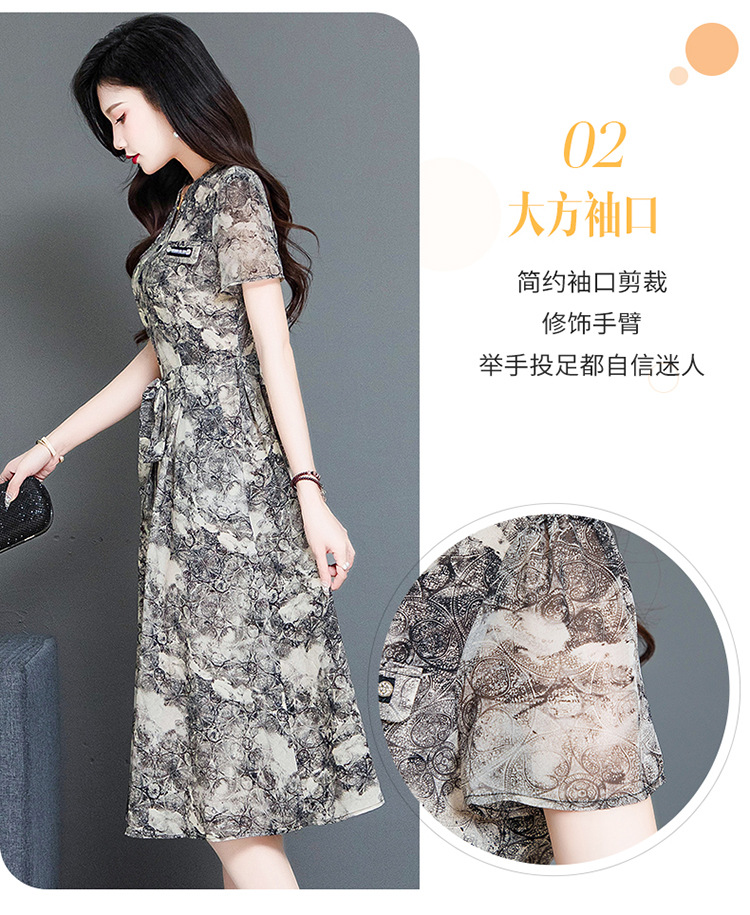 QYM 239352-Y印花连衣裙时尚优雅A字裙