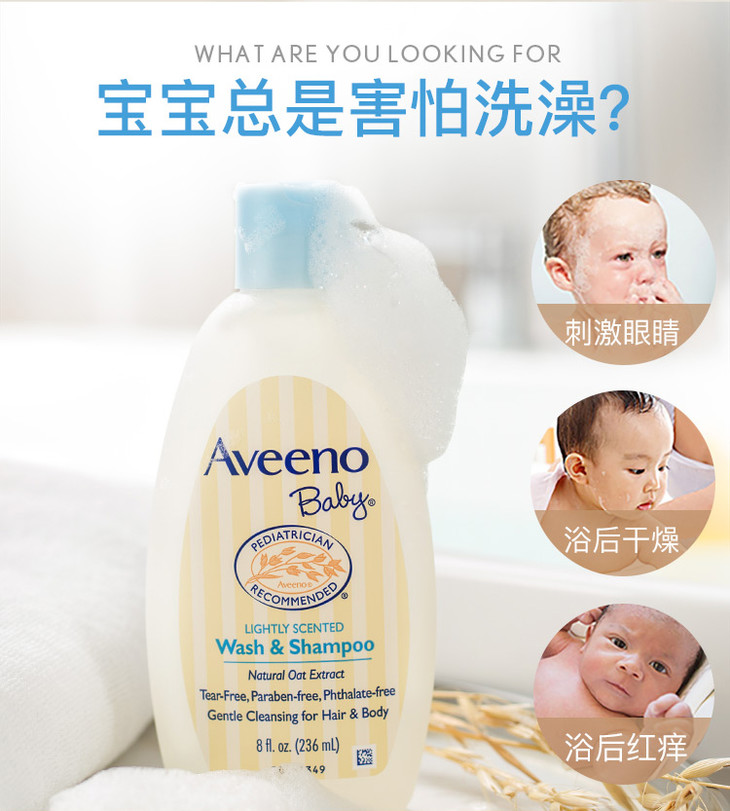 【海外直邮】Aveeno/艾维诺 婴儿洗发沐浴乳二合一 236ml/532ml