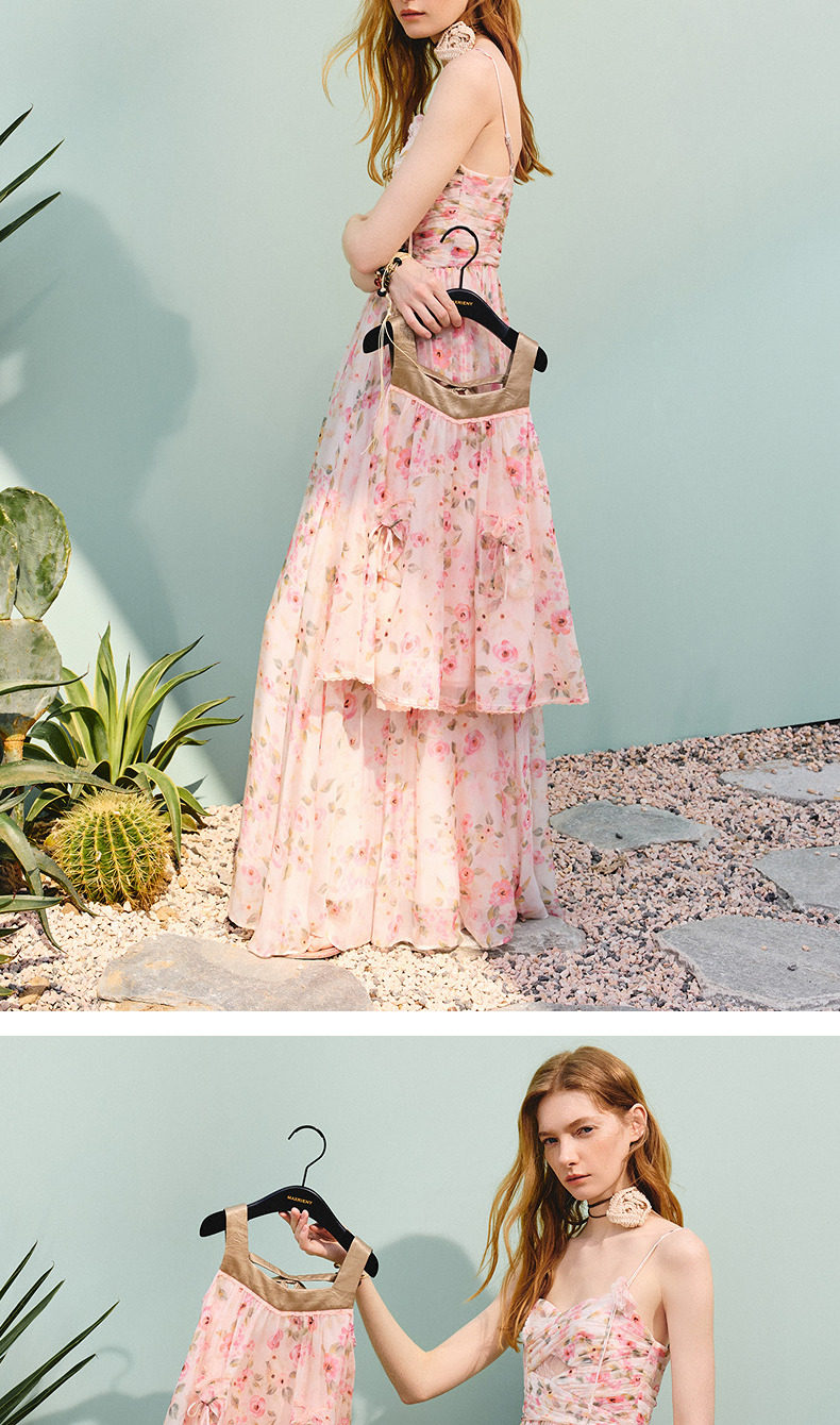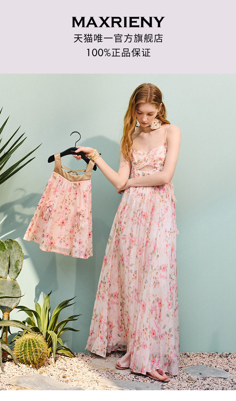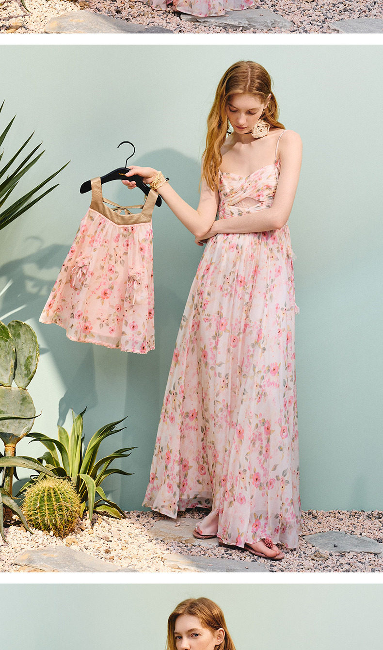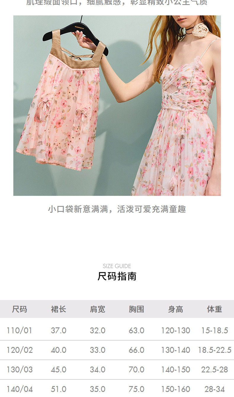 【商场同款】MAXRIENY浪漫度假风女童连衣裙25夏碎褶修身长裙童装(货号:MK86DR253)