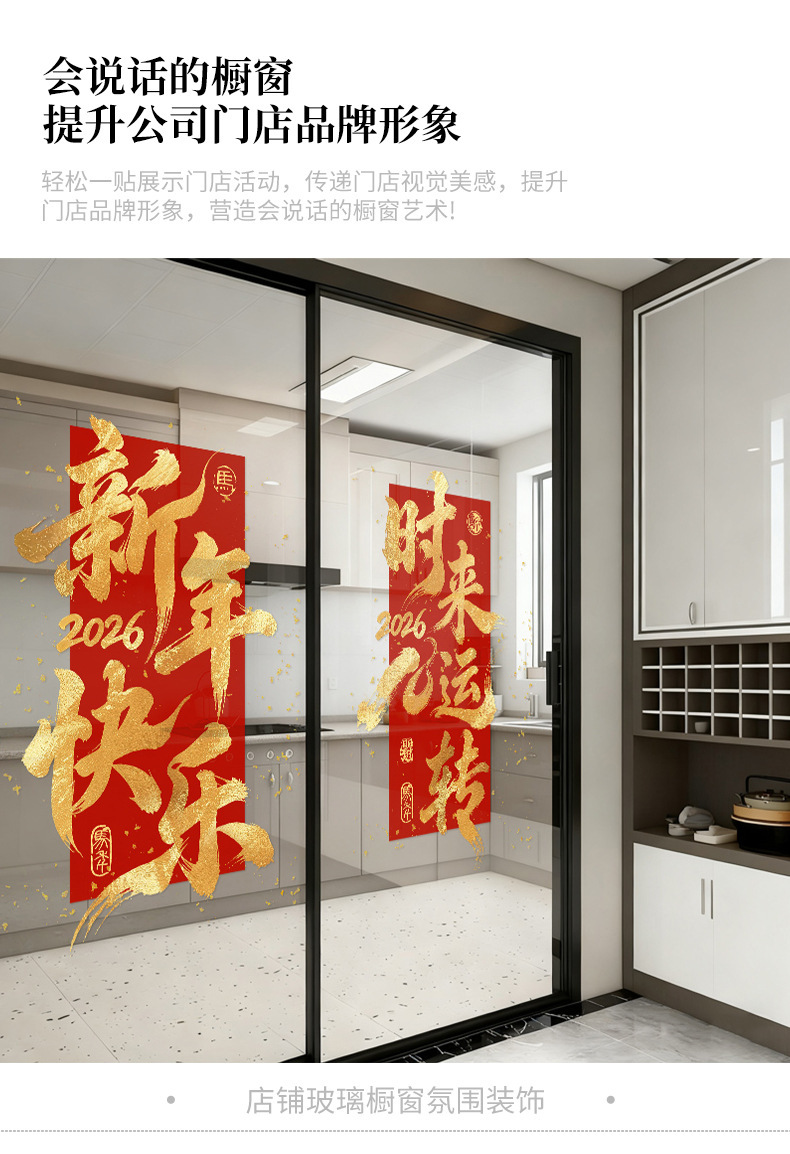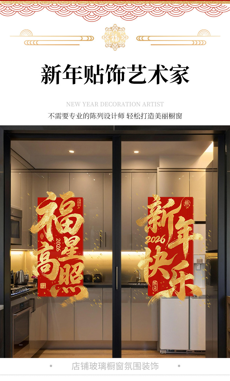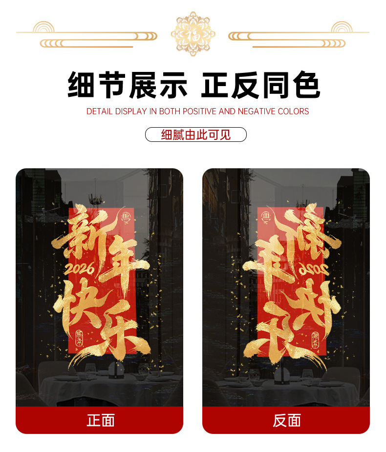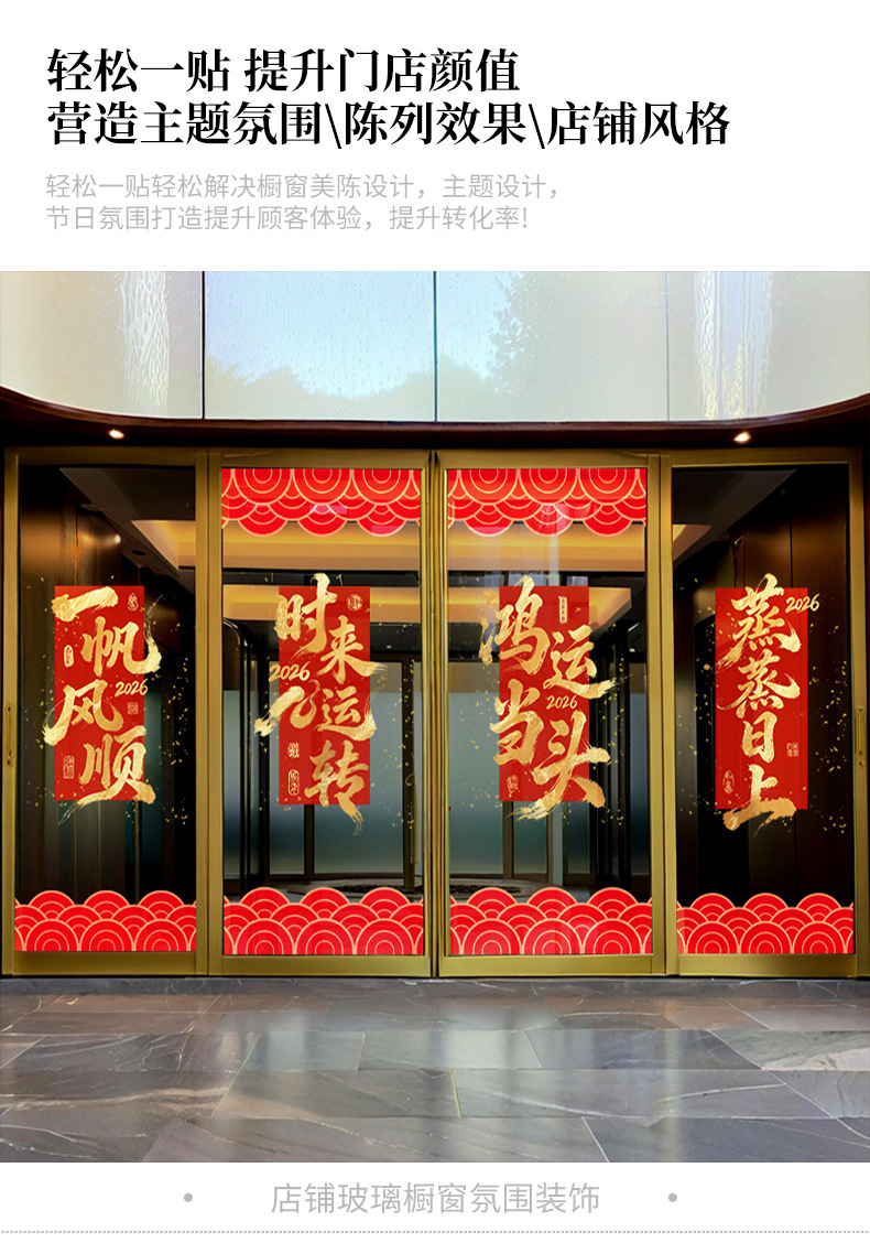 【敲喜庆好看❗️新年氛围感满满】2026马年新年春节鸿运当头场景布置红色金字窗花装饰一帆风顺新年静电玻璃门贴。jc