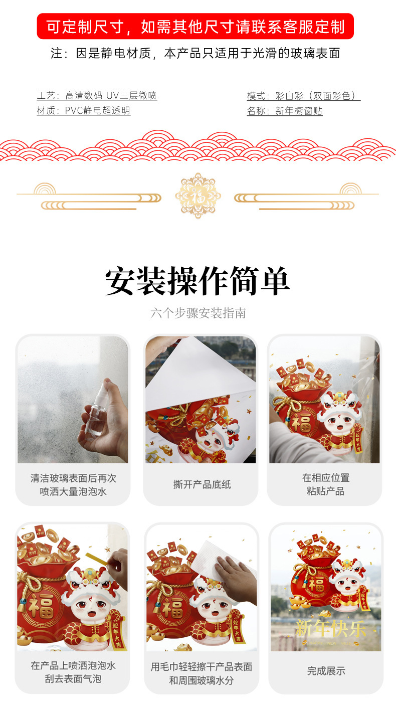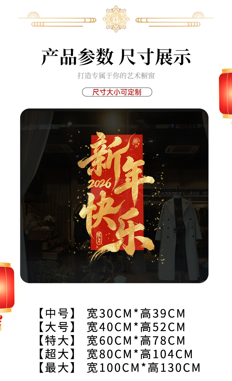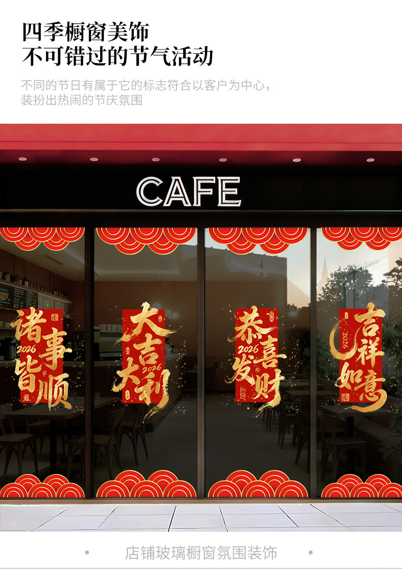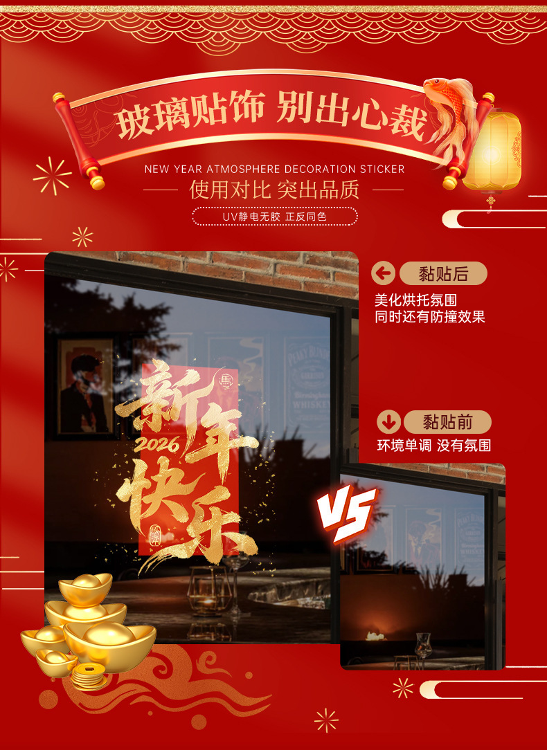 【敲喜庆好看❗️新年氛围感满满】2026马年新年春节鸿运当头场景布置红色金字窗花装饰一帆风顺新年静电玻璃门贴。jc