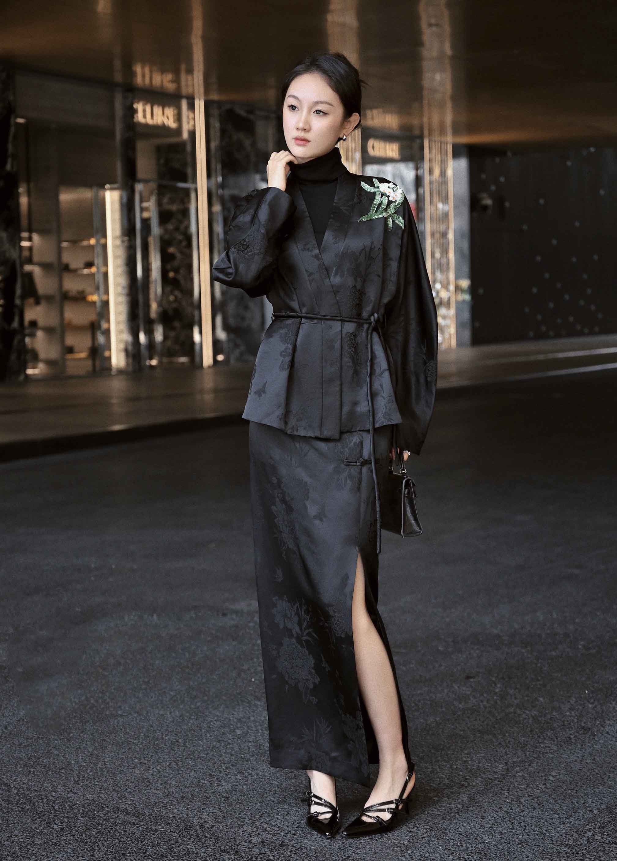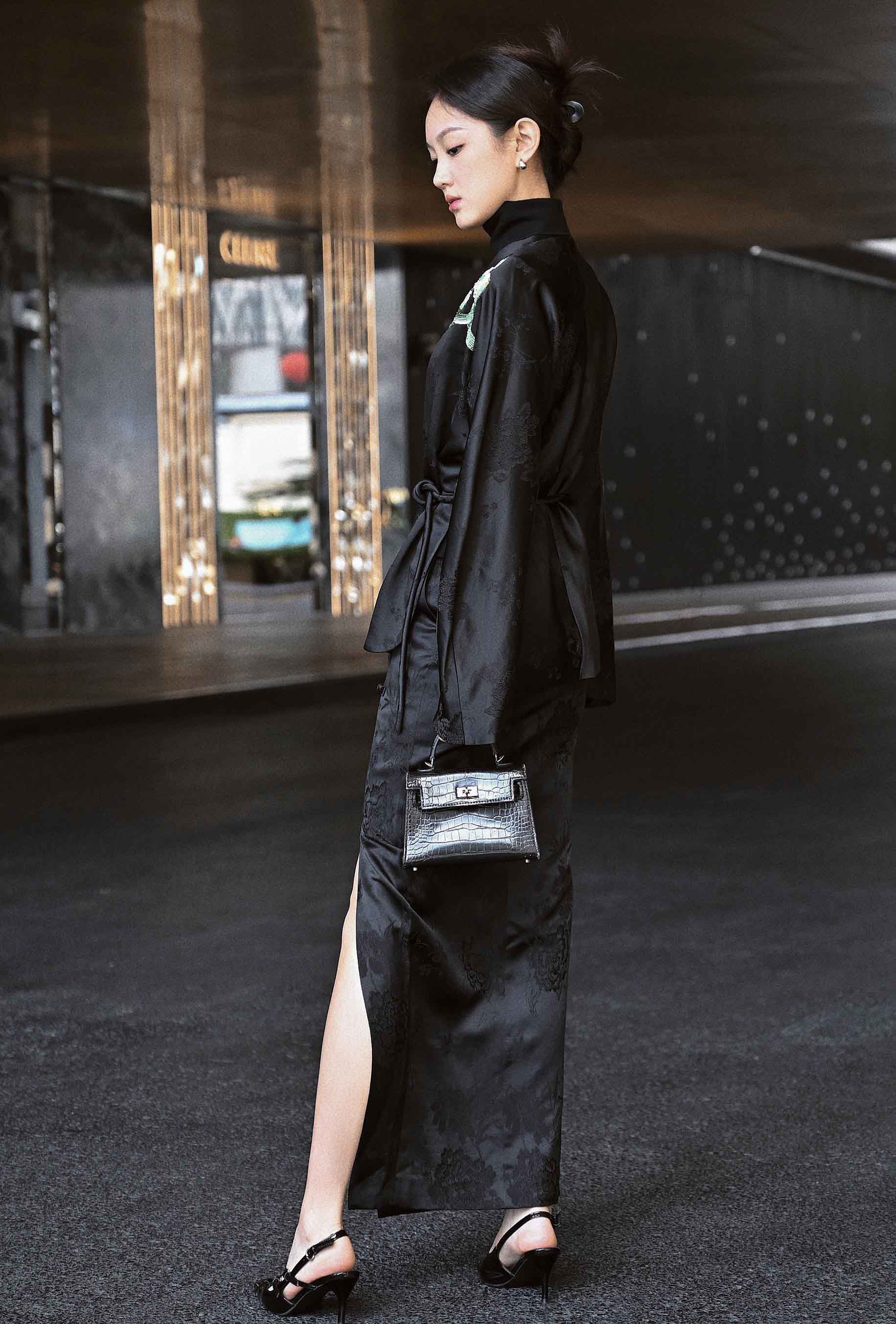 下摆侧边开衩,灵活走动,微露出纤细小腿,魅力十足