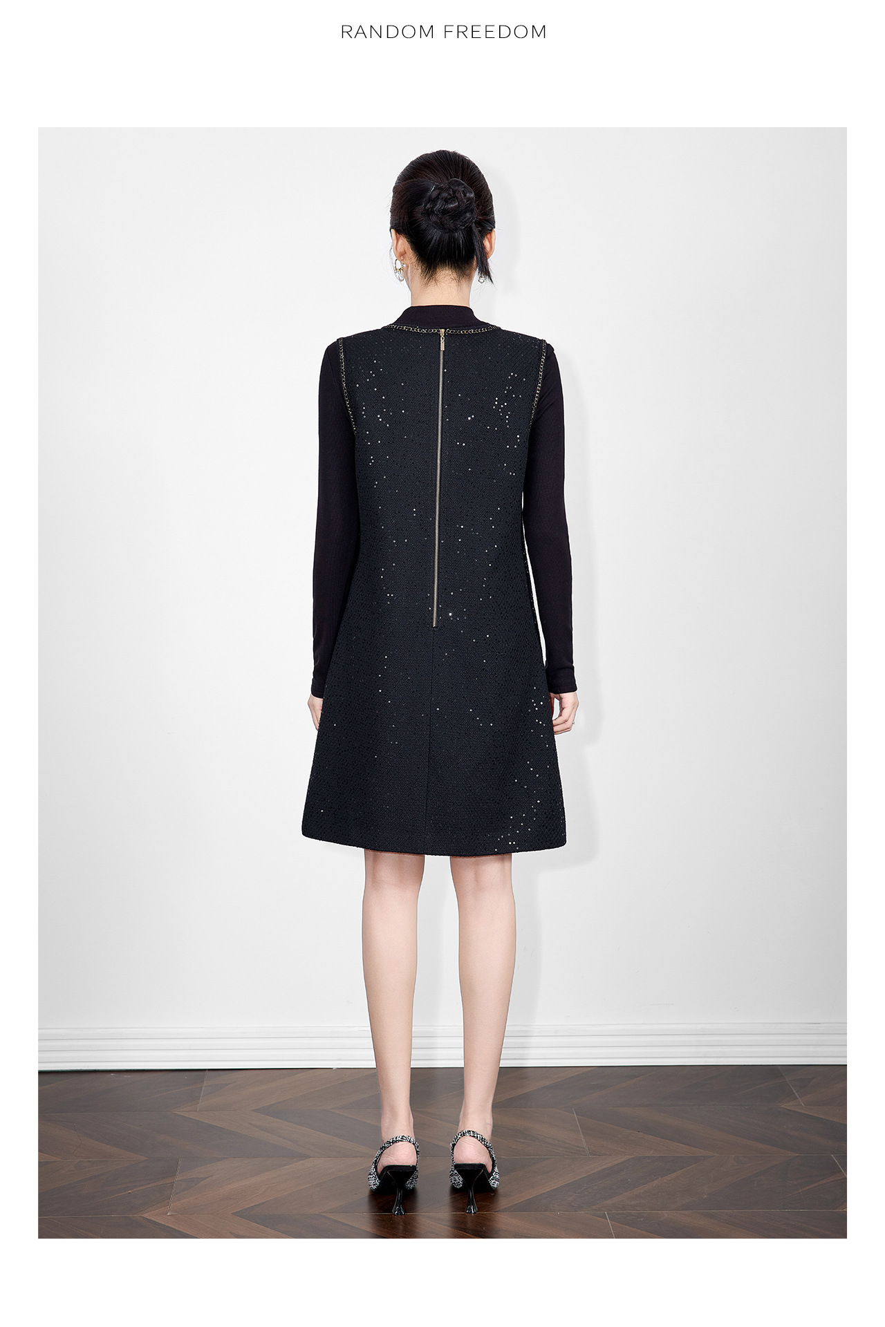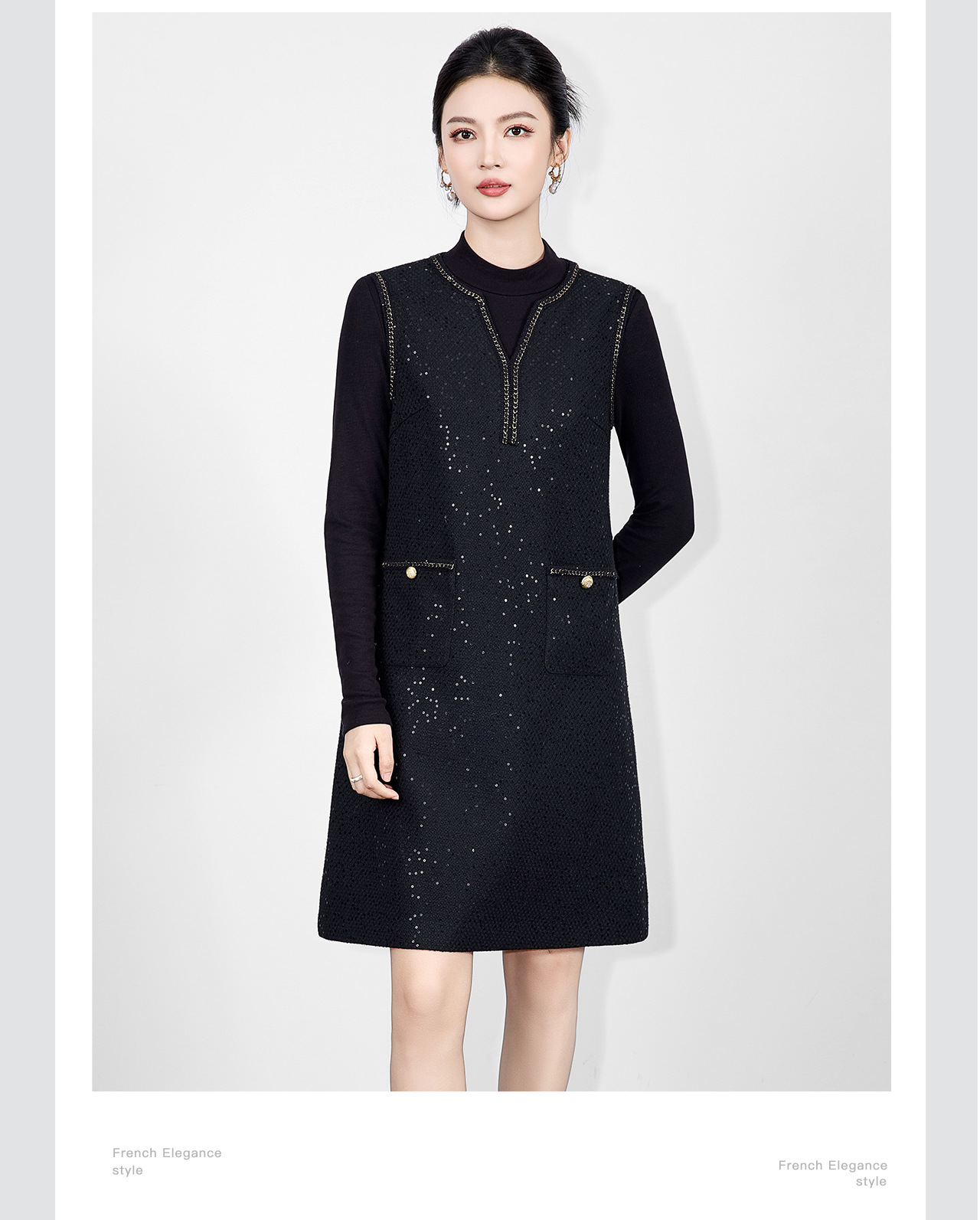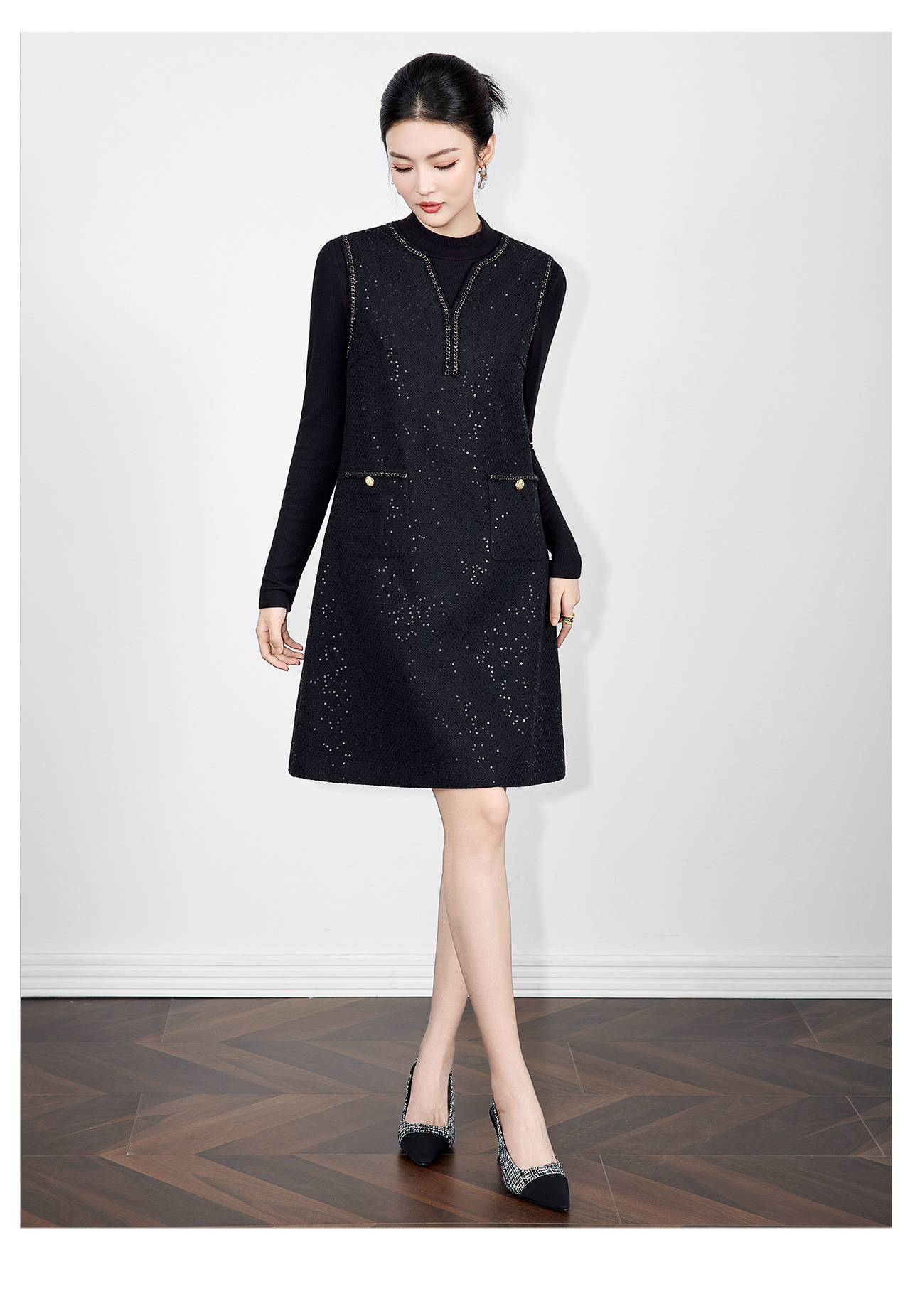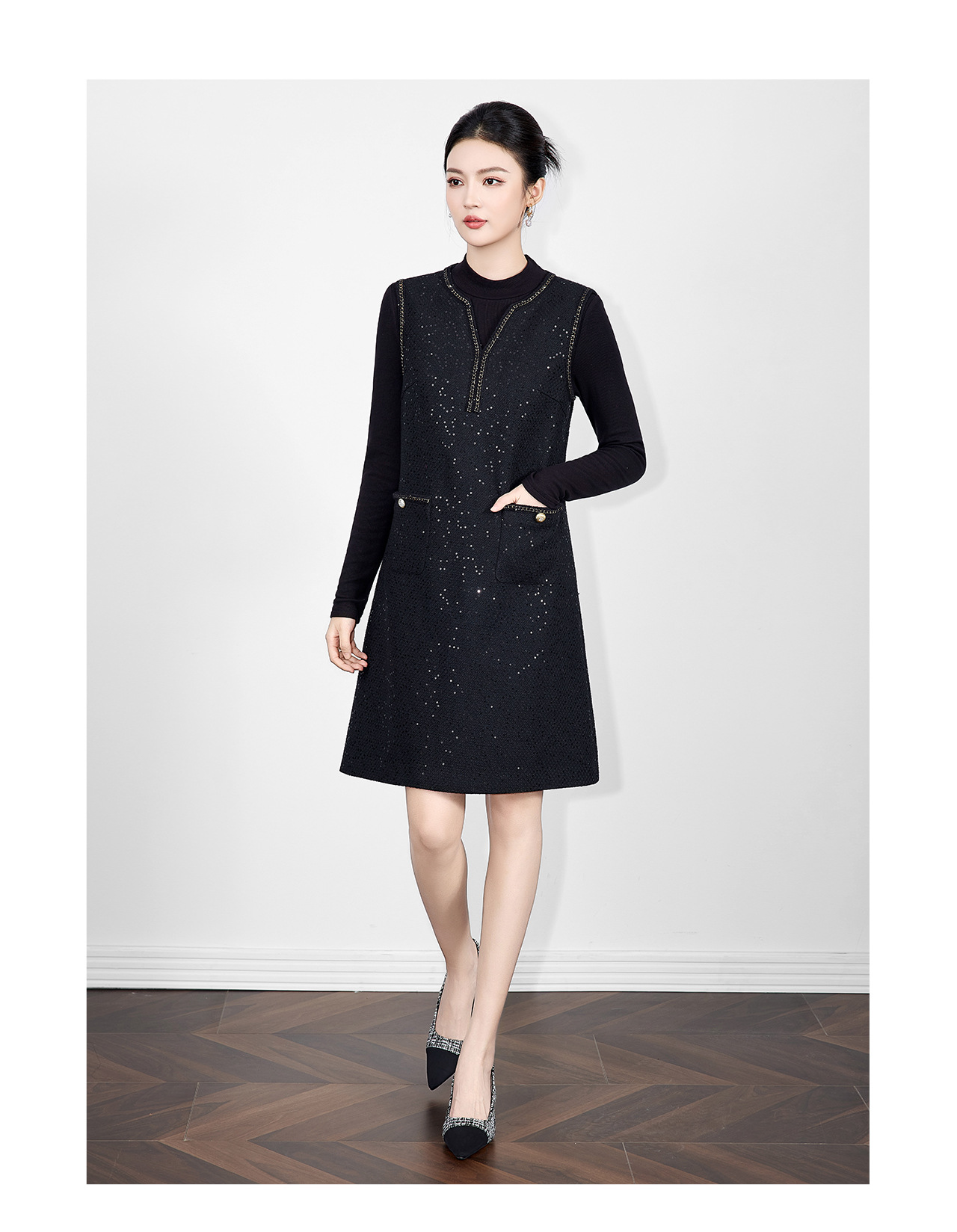 「高货wl」全新升级【铂金会员339/天猫459/差价120】(03707)洛诗琳2025秋冬新款羊毛混纺亮片编织粗花呢小香风背心裙