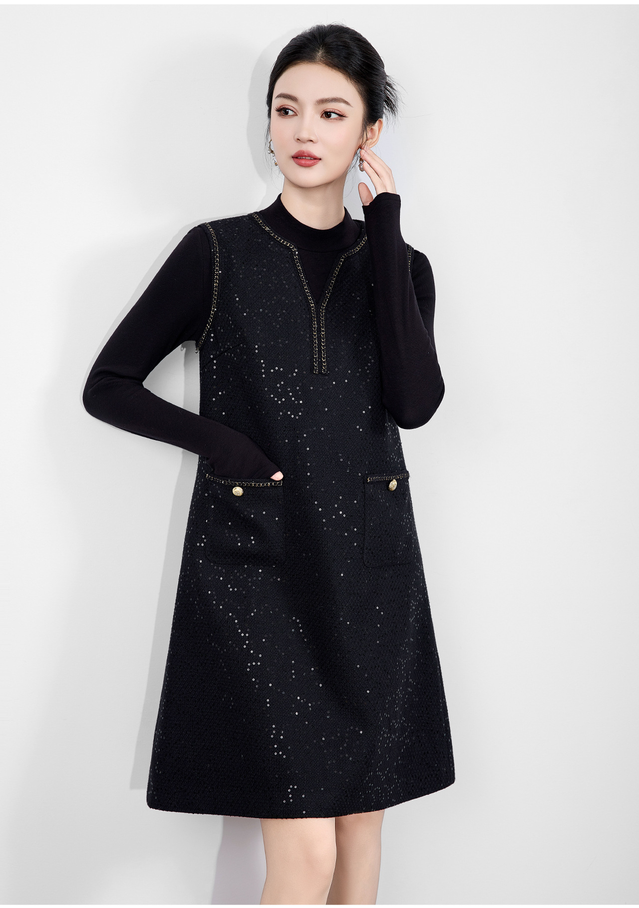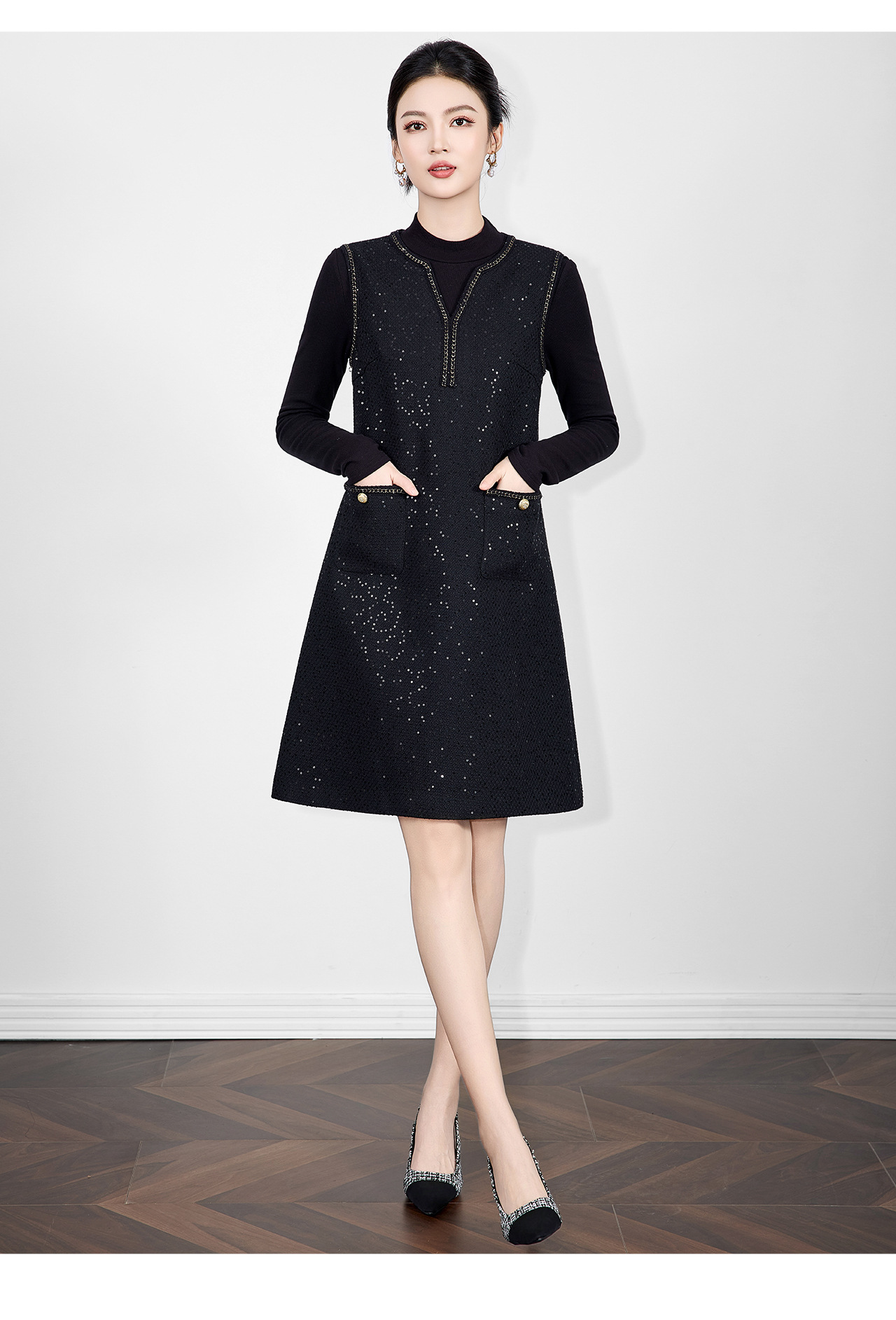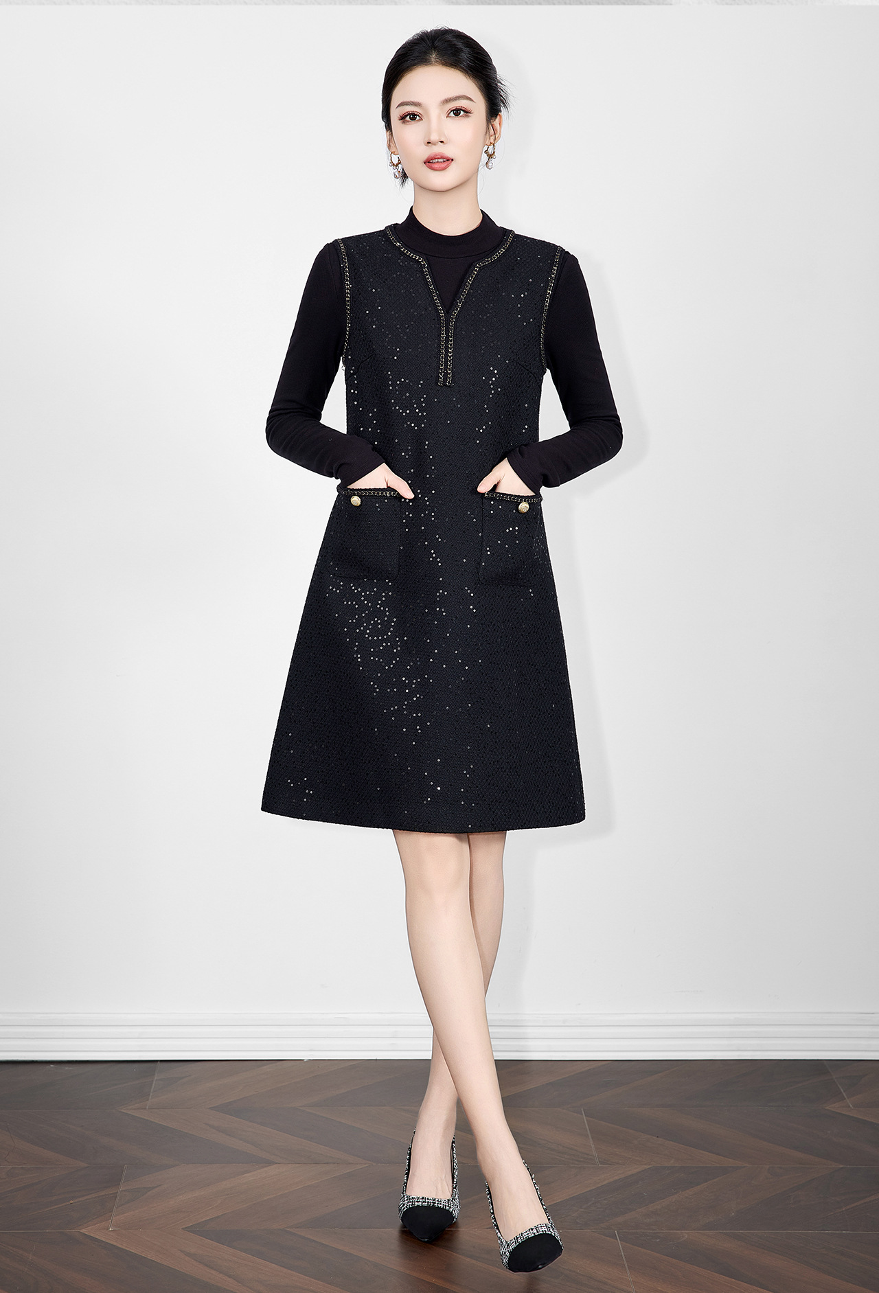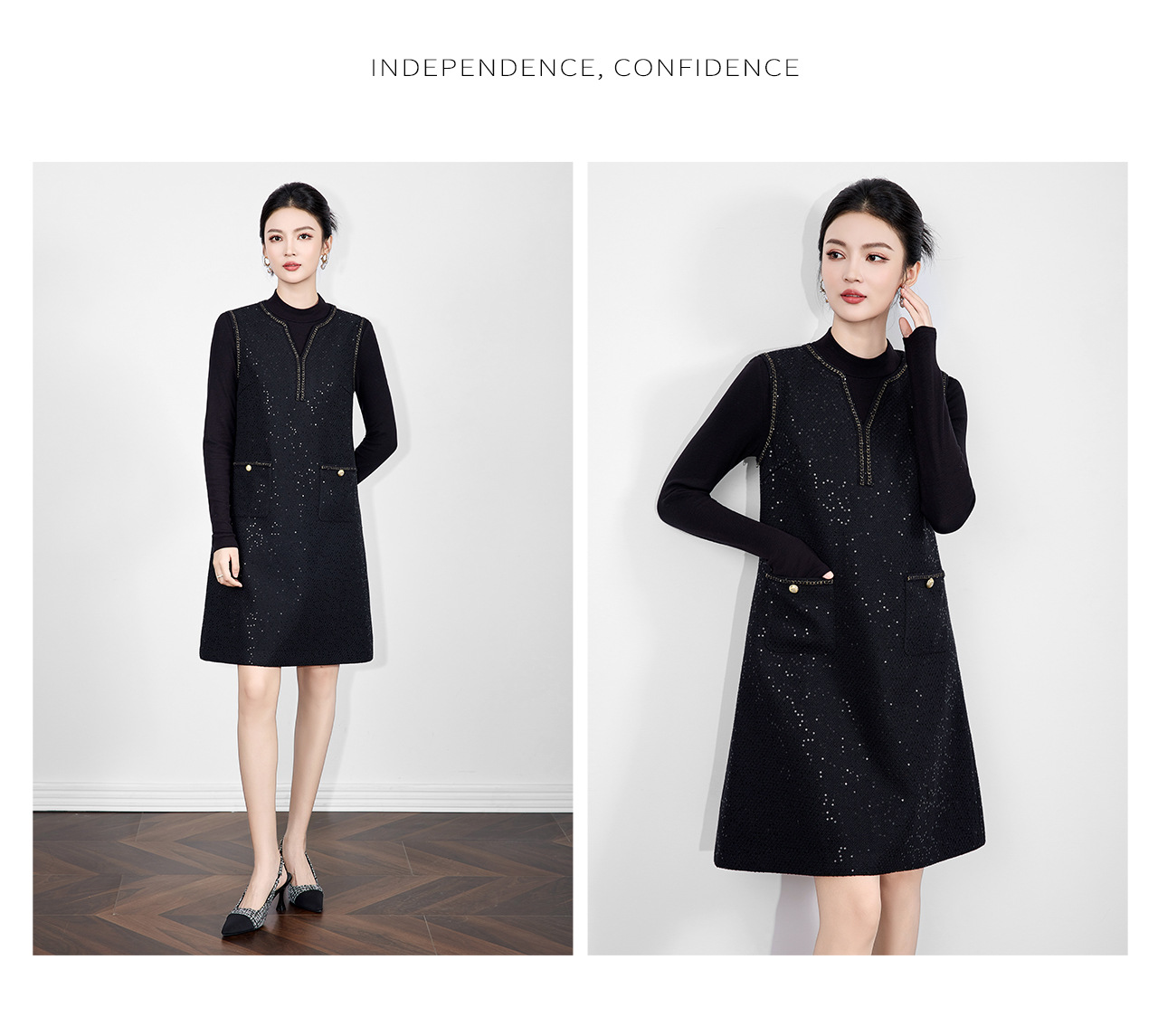 「高货wl」全新升级【铂金会员339/天猫459/差价120】(03707)洛诗琳2025秋冬新款羊毛混纺亮片编织粗花呢小香风背心裙