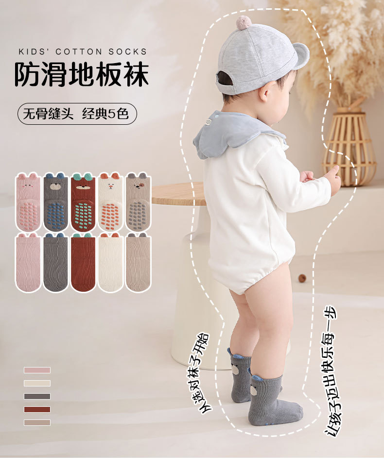 【好看又好穿!全底防滑点胶】儿童袜子精梳棉透气点胶防滑地板袜 卡通提耳无骨婴幼儿袜子A类。ra