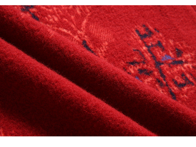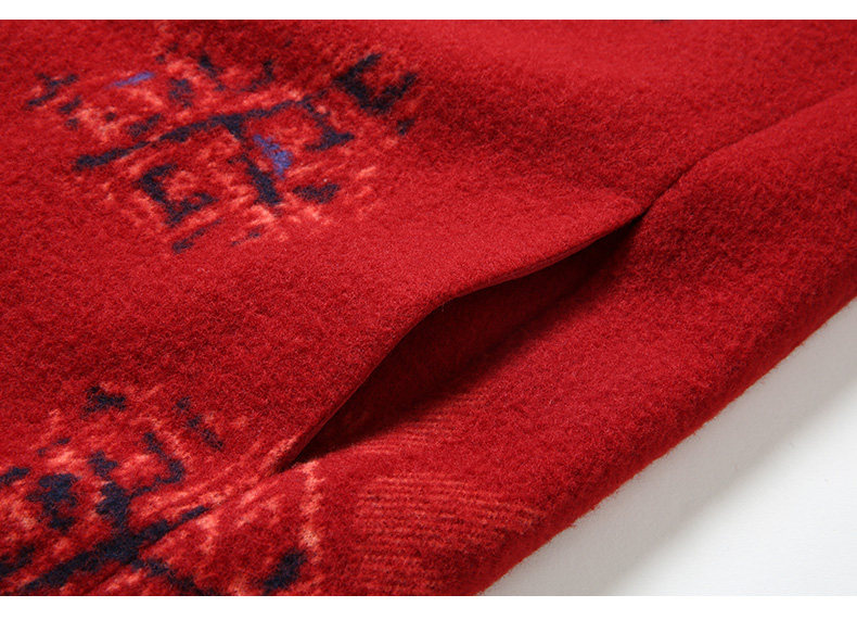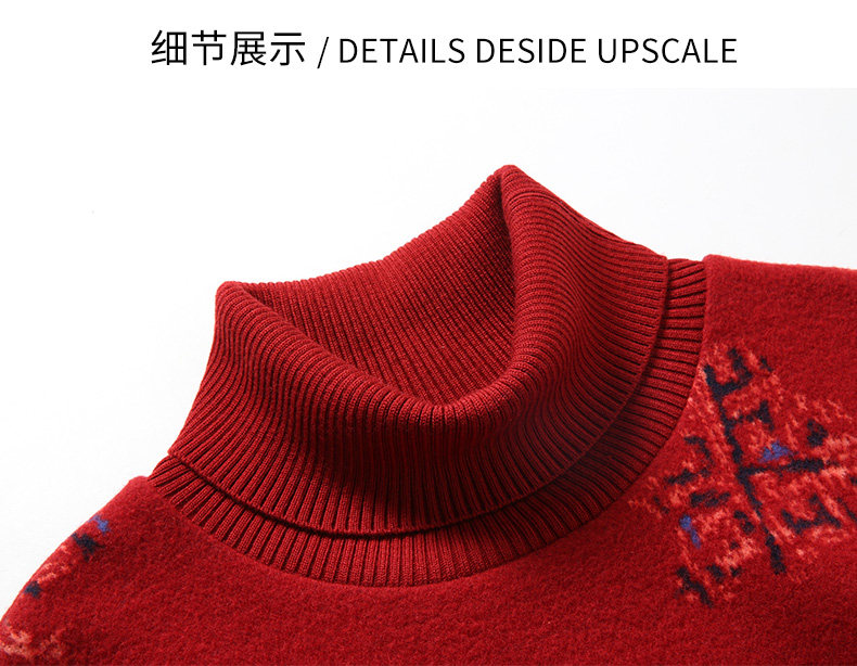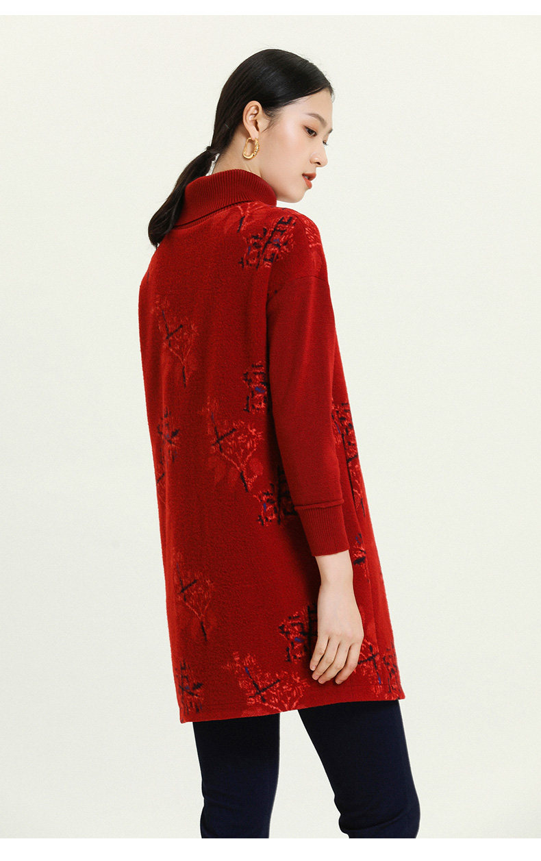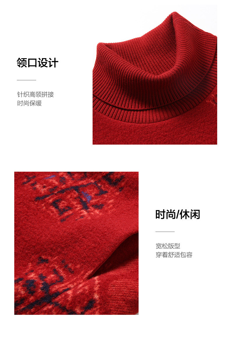 乔万尼秋冬复古红高领印花羊毛显瘦舒适休闲宽松减龄连衣裙ES4E323