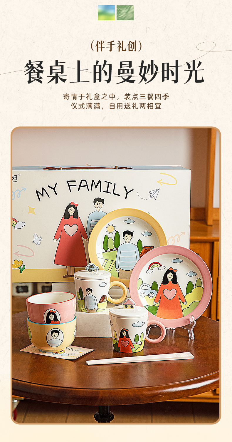 摩登主妇新婚结婚订婚礼物送新人闺蜜情侶餐具套装碗碟釉下彩碗具