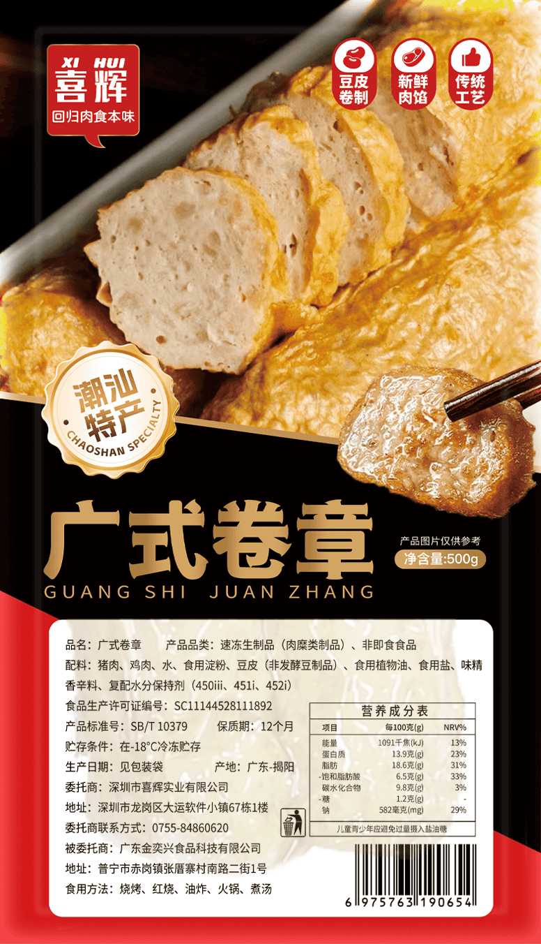 喜辉潮汕猪肉卷章 正宗广式肉饼手工卷特产美食小吃 真材实料外酥里嫩肉质紧实 500g/袋