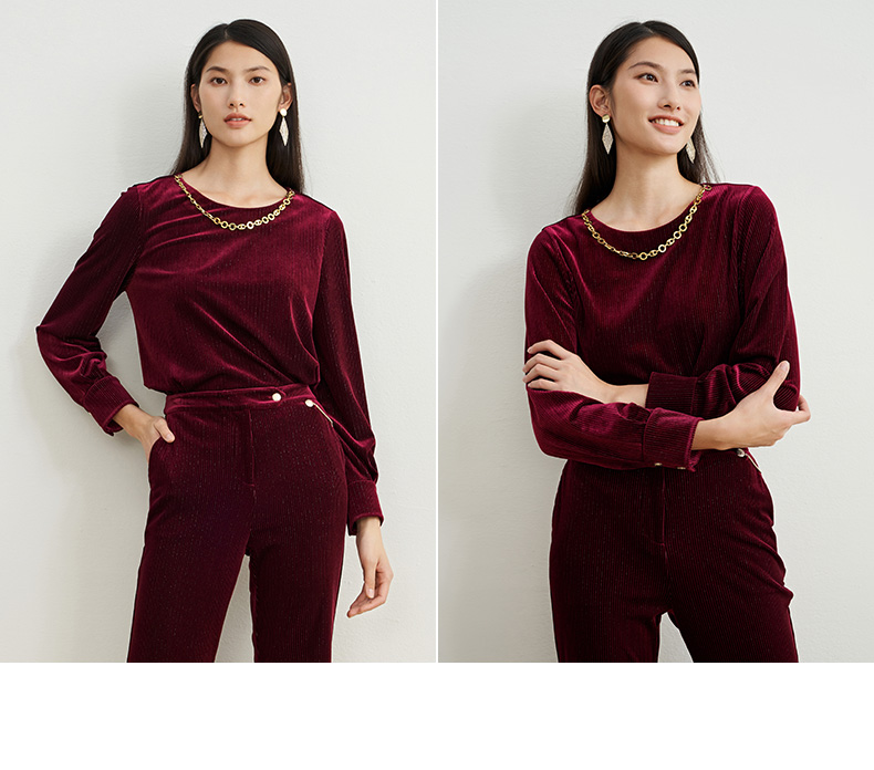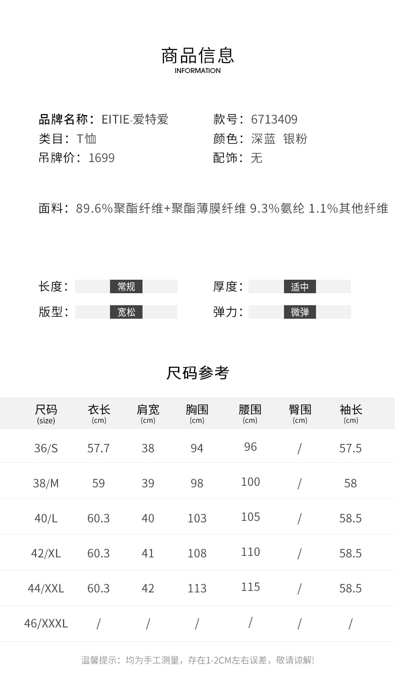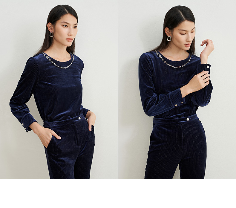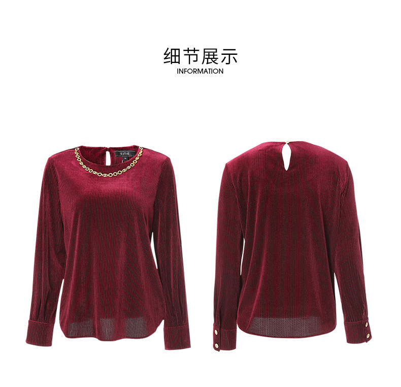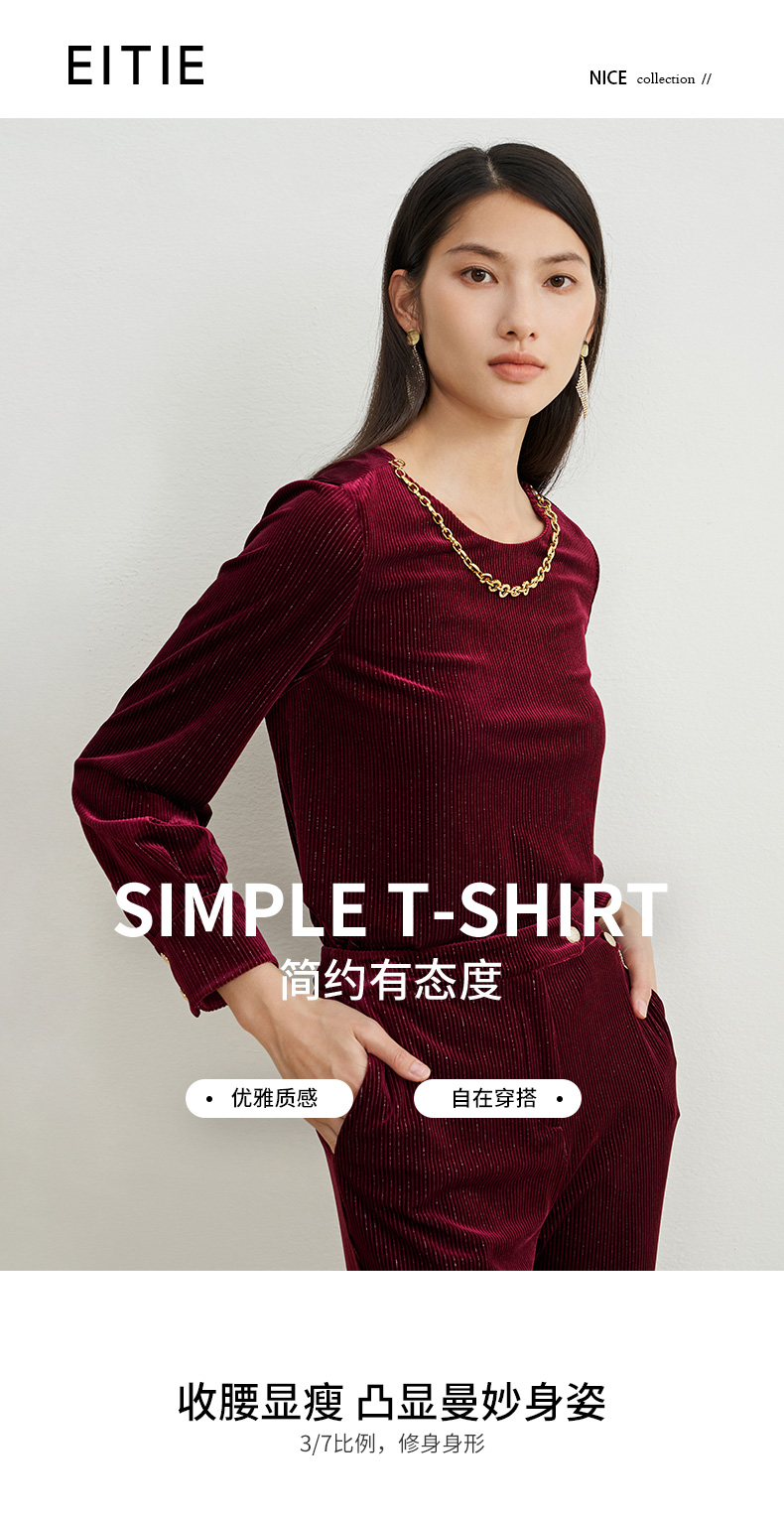 EITIE爱特爱秋季新款修身显瘦纯色上衣女6713409