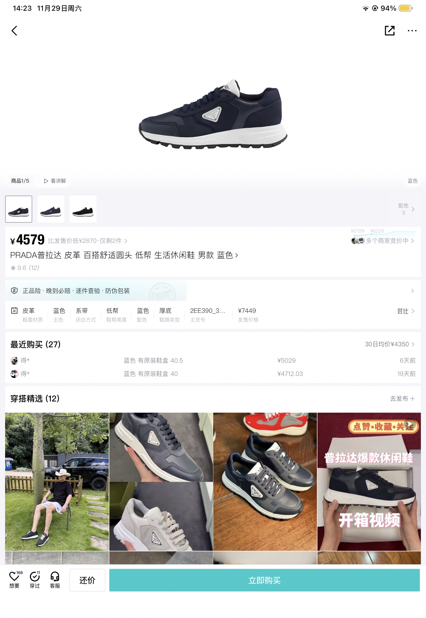 PRA&DA普&拉达 皮革 百搭舒适圆头 低帮 生活休闲鞋 男款 蓝色