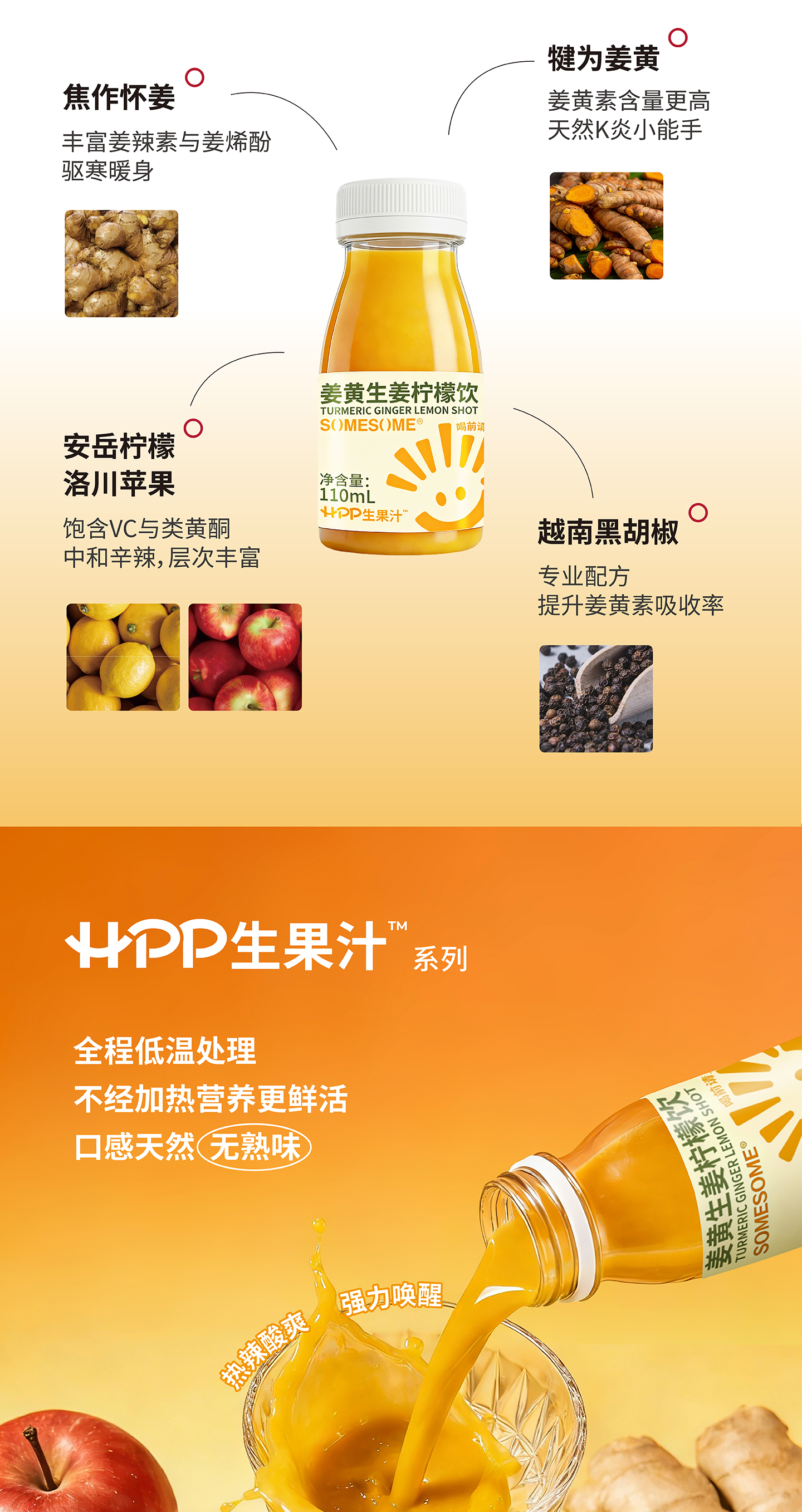 somesomeHPP姜黄生姜柠檬饮(全程顺丰冷链生鲜产品不接受七天无理由)