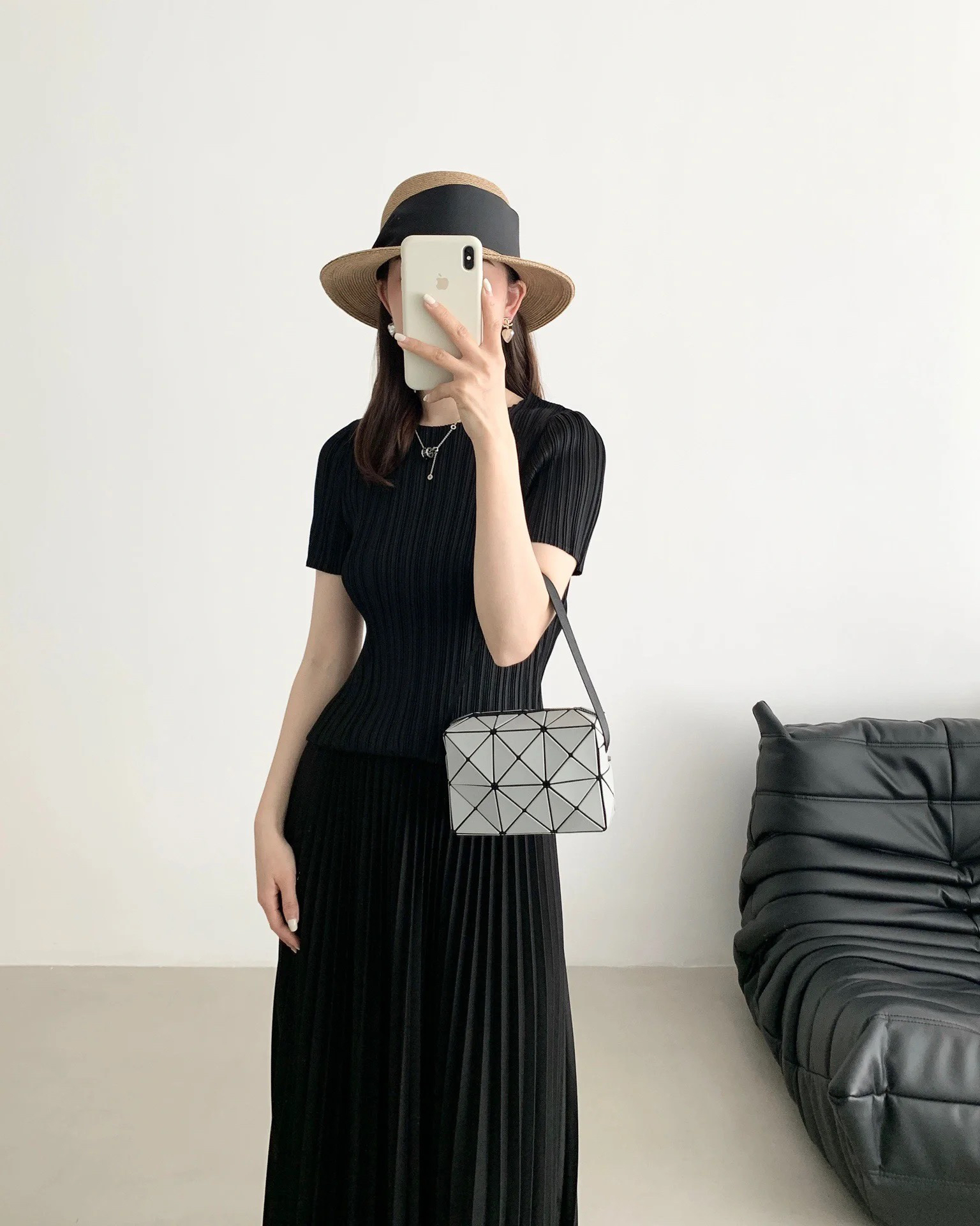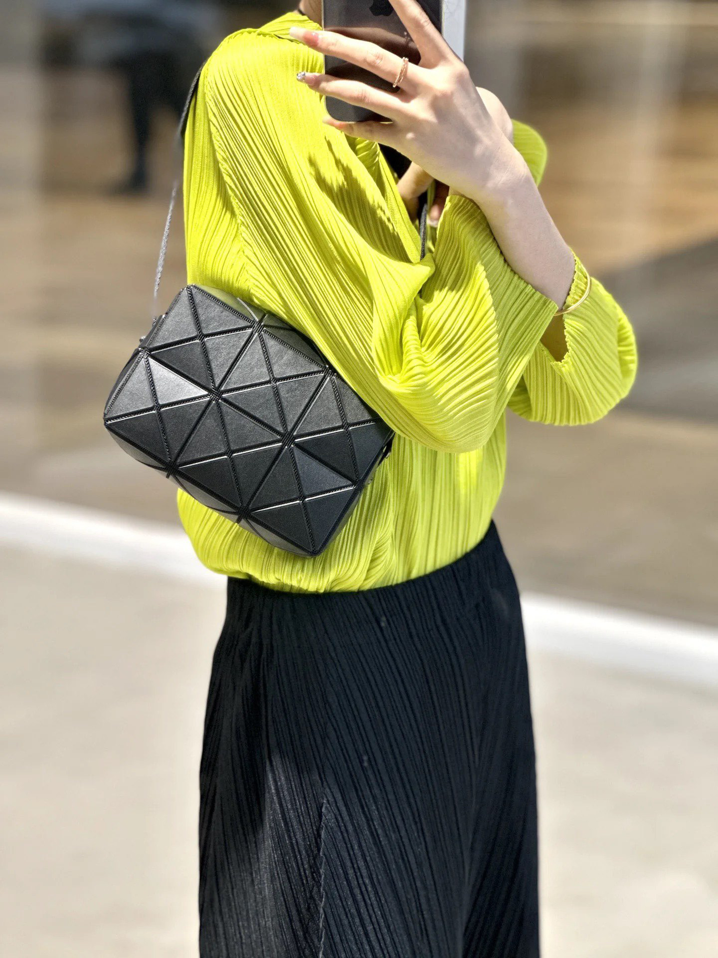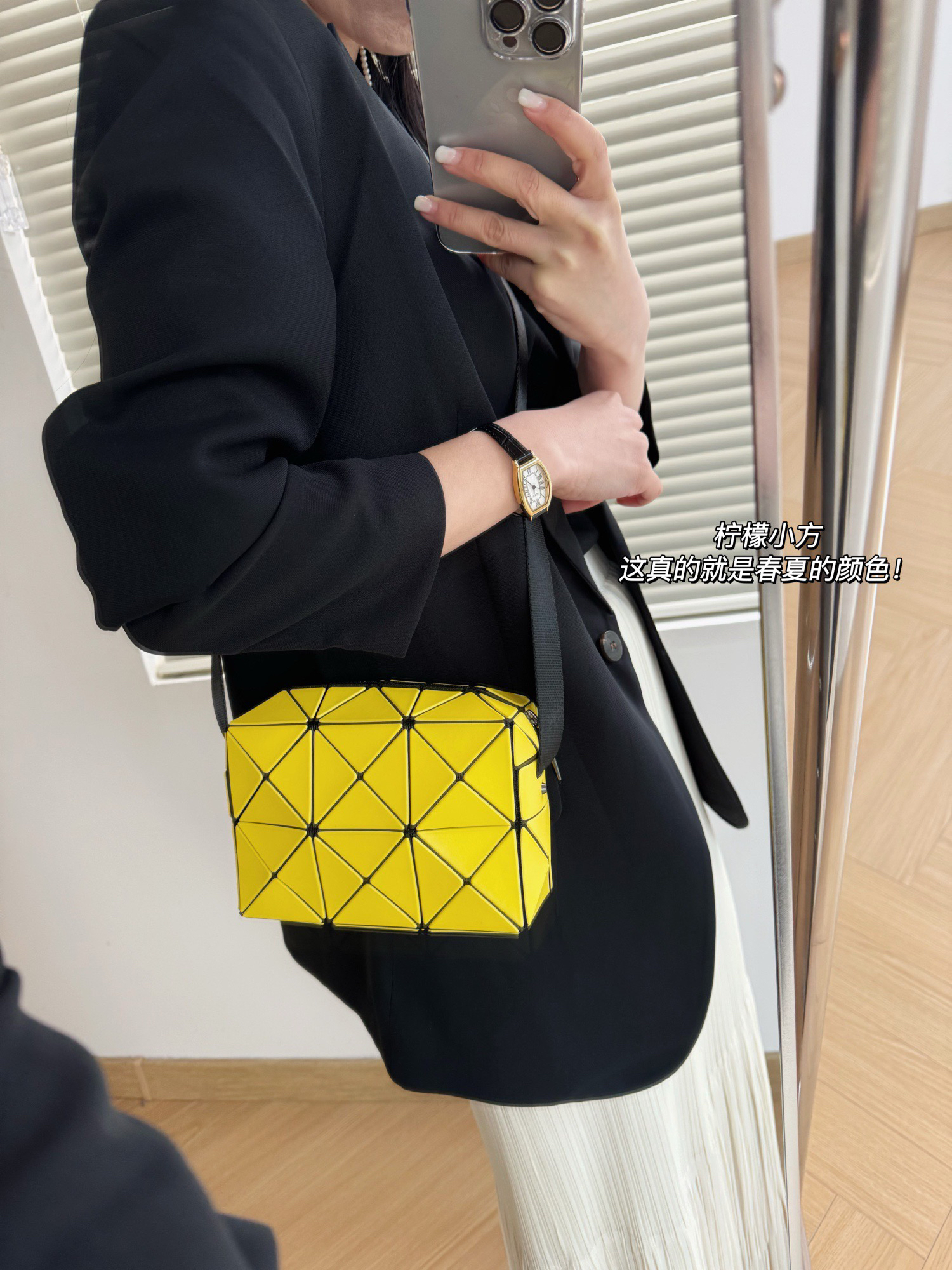 之前上过很多三宅一生的包 都是大包包居多 直到看到这款新出的横版长方形小包包 精致小巧 一下就击中我的心巴了!张俪 龚俊 董璇王大陆都在背 一出场就成了断货王 毫不夸张的说这款比lv新款还难买哈哈哈真的适合所有的季节 超级百搭 无论男女都能背 几何线条的设计艺术且现代非常利落 虽然包包看起来不大 容量很能装!手机、眼镜盒、气垫、口红统统塞得下!!一拿上手真的绝!所谓气质大概就是这样 不动声色的就抓住了你的眼球 官方在售4180➕ 作为三宅老粉我对品质超挑剔的 不吹牛的!这款闭眼入手就行了 跟着原料一块回来的 懂的来! 优雅有质感且不会撞包烂大街的首选非三宅莫属!!
