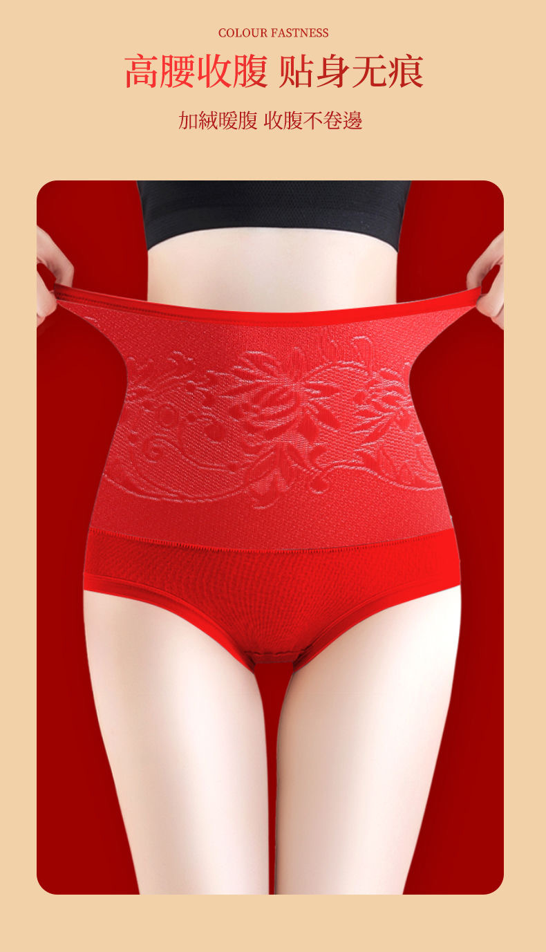 雀说 【4条】加绒加厚女内裤女纯棉高腰收腹护腰防寒保暖三角裤11