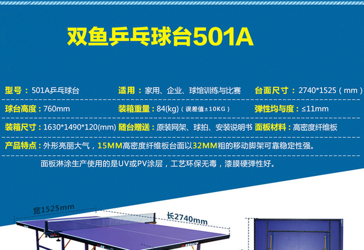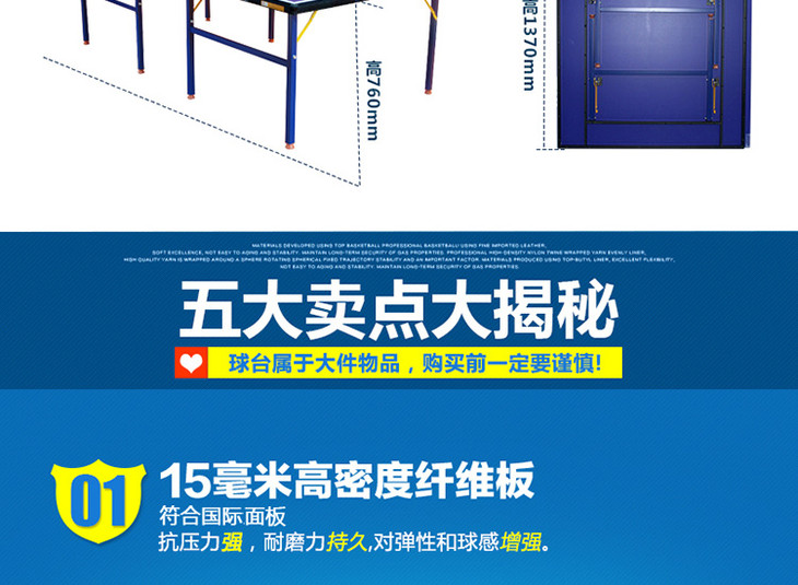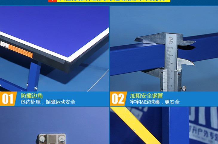 产品说明:台脚使用单折钢管支架,边框为高强度钢框,适用于训练与比赛。