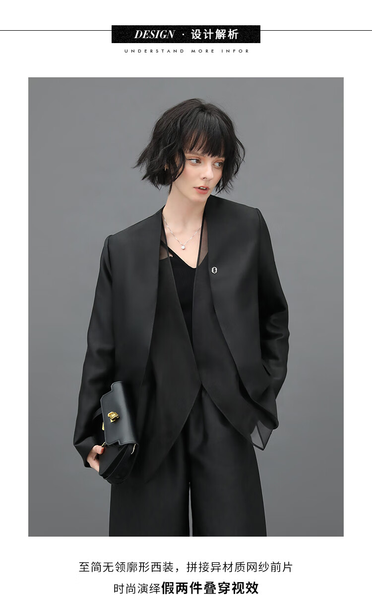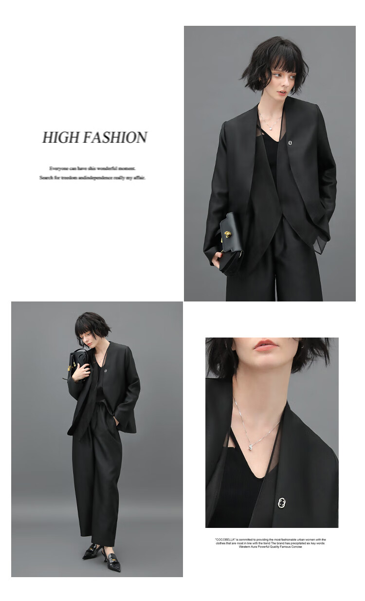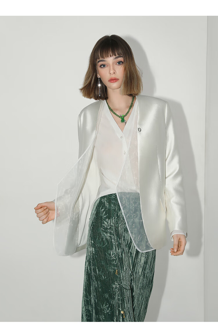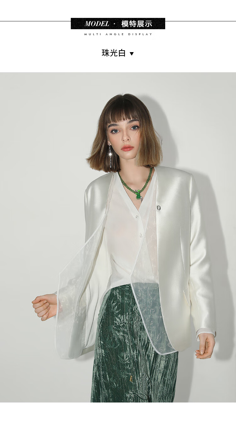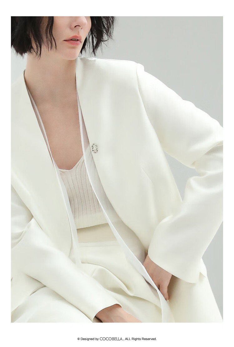 COCOBELLA设计感拼接丝光质感西装女春轻奢风气质OL西服SI533