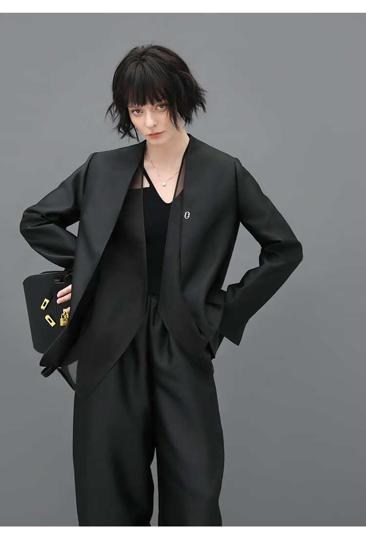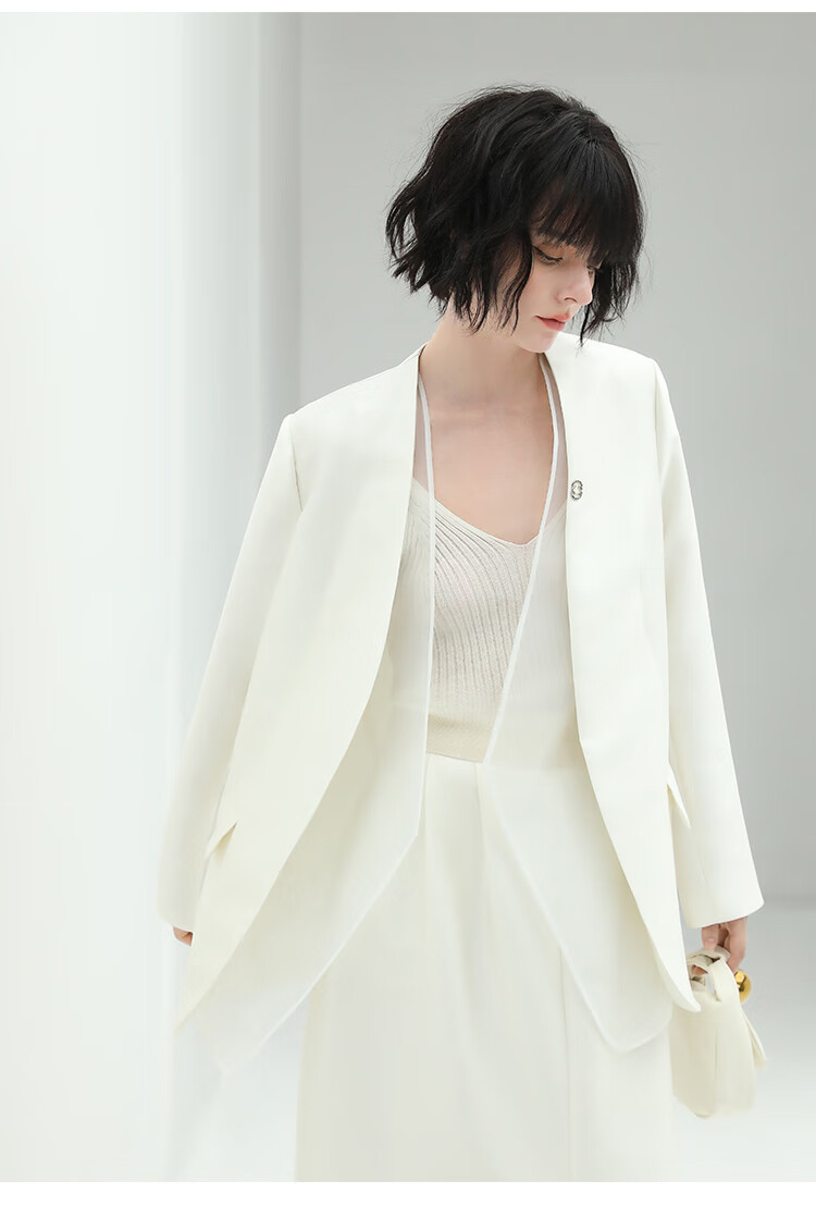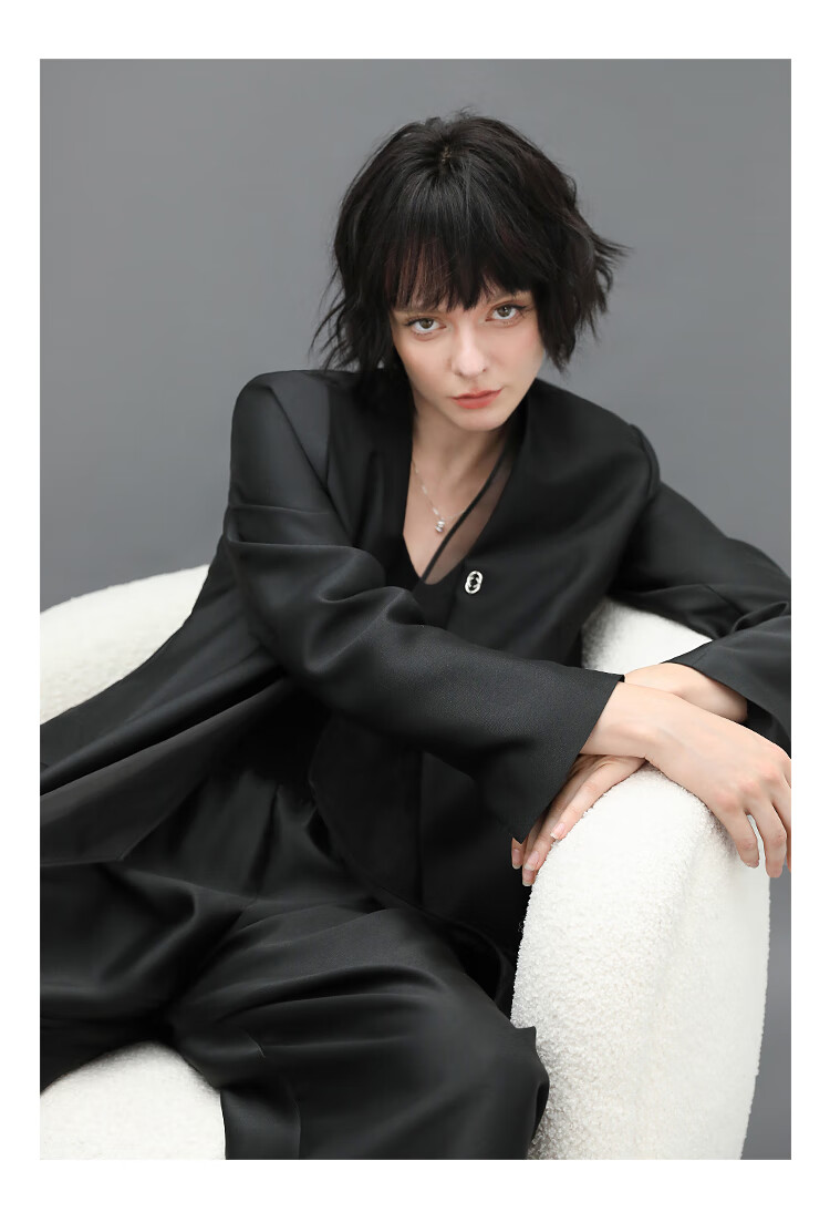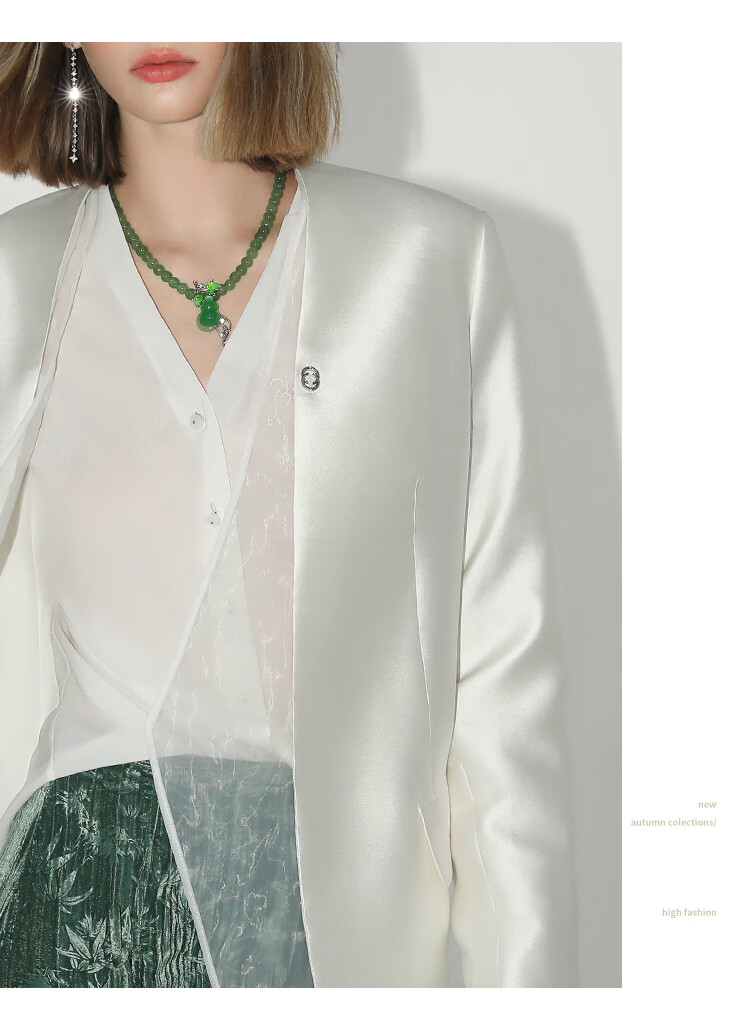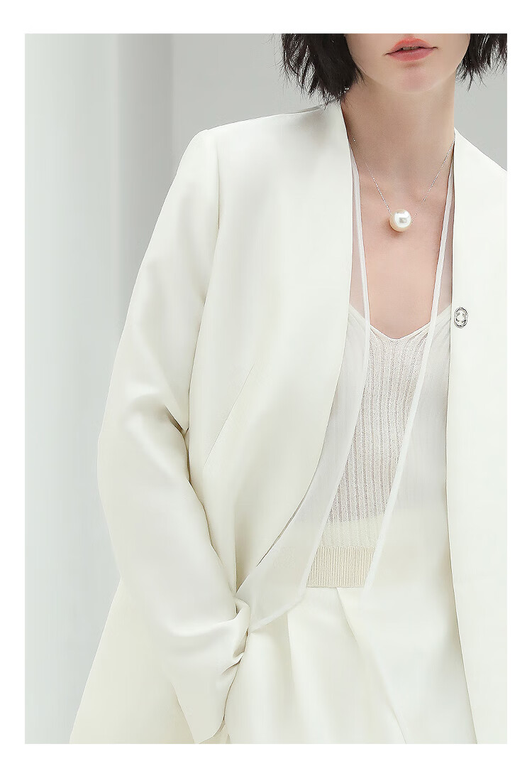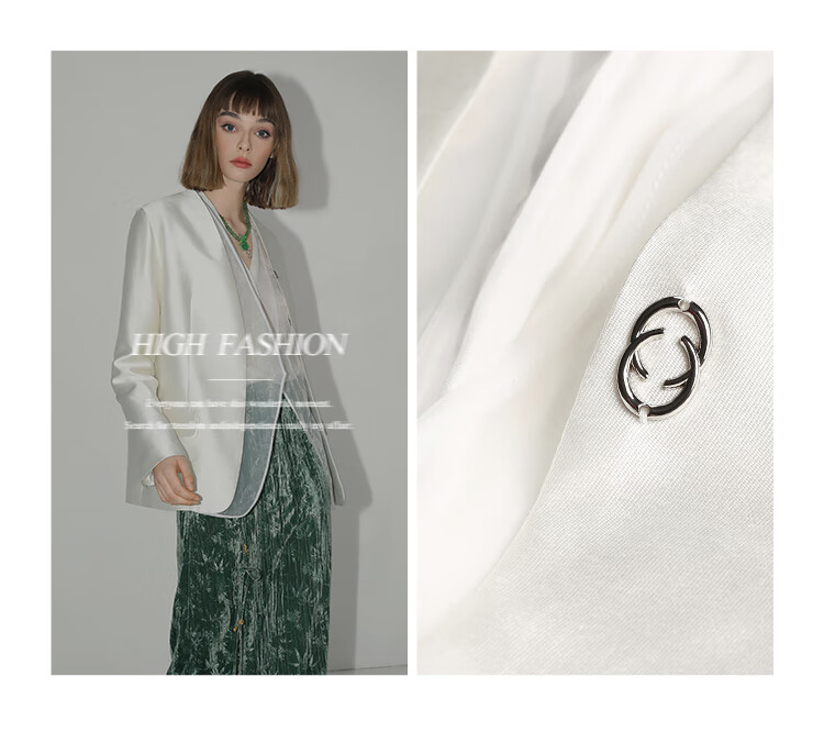 COCOBELLA设计感拼接丝光质感西装女春轻奢风气质OL西服SI533