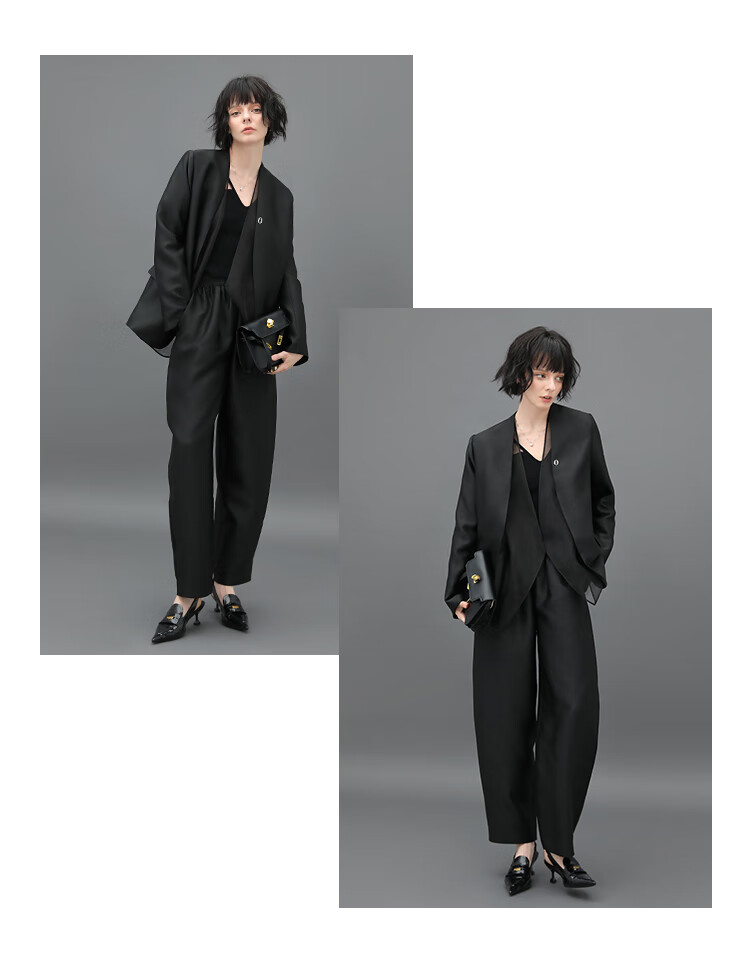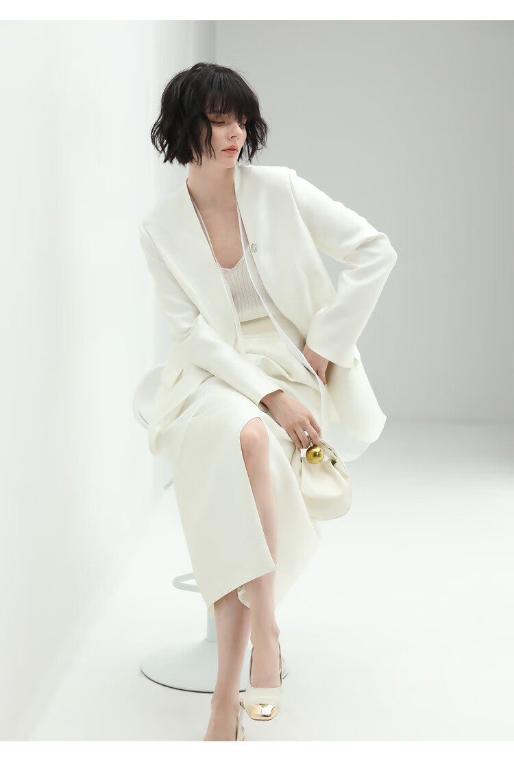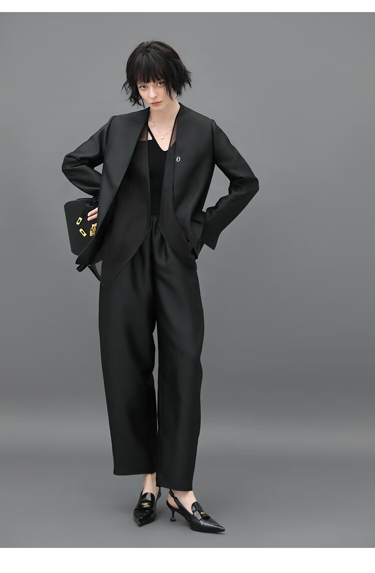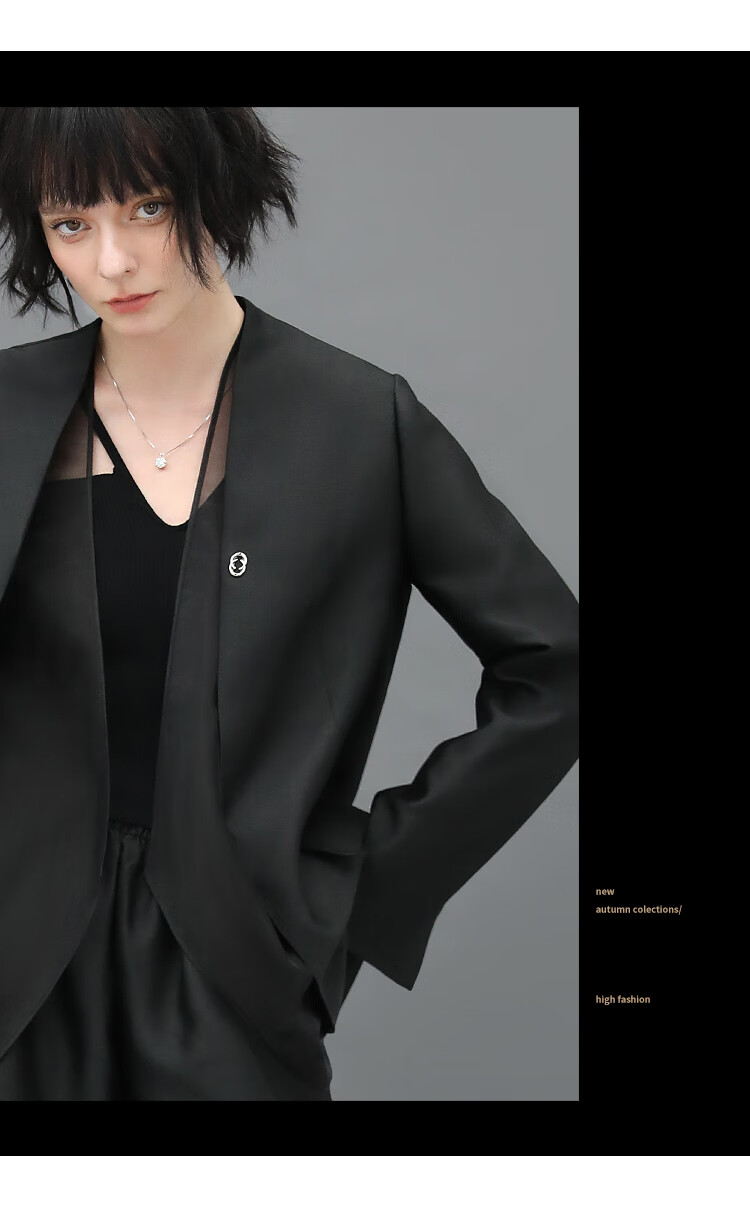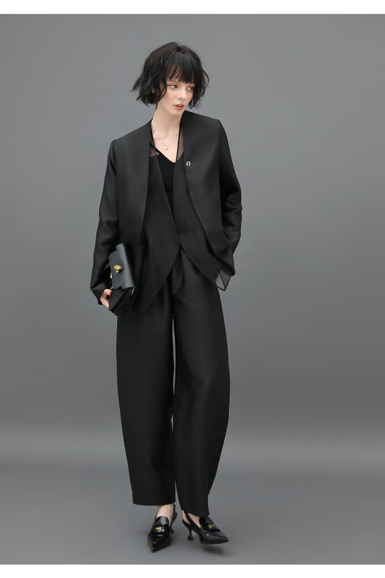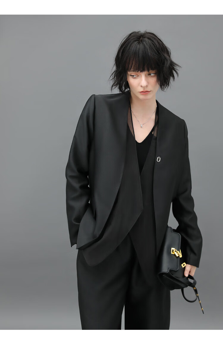 COCOBELLA设计感拼接丝光质感西装女春轻奢风气质OL西服SI533