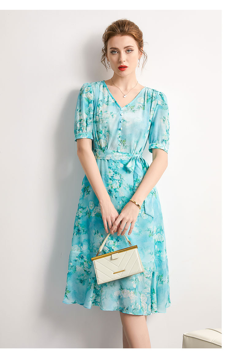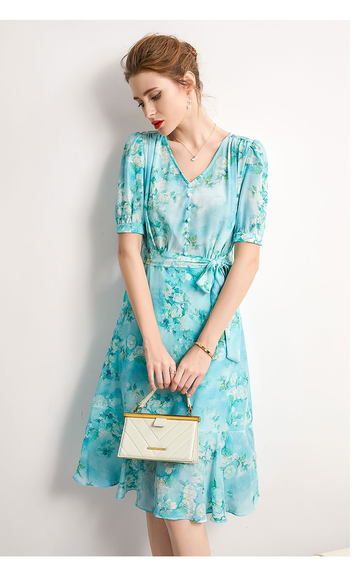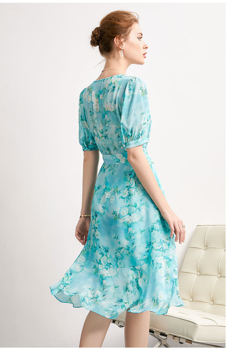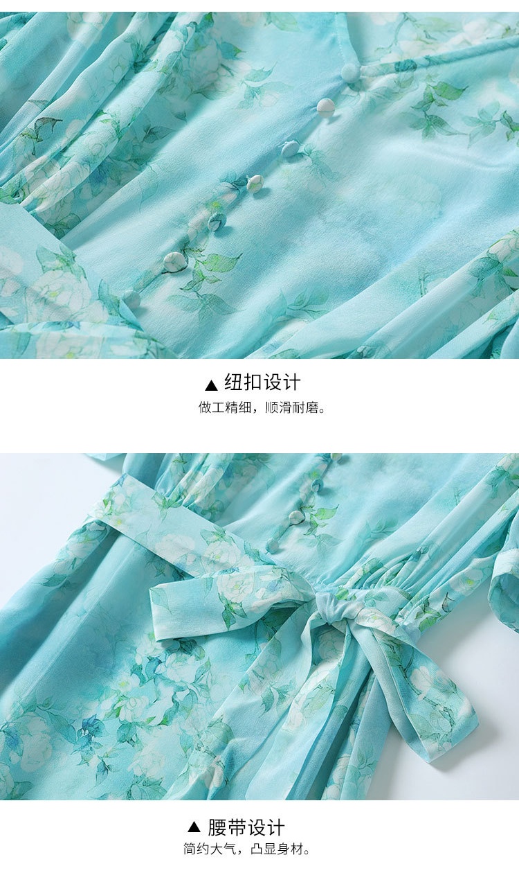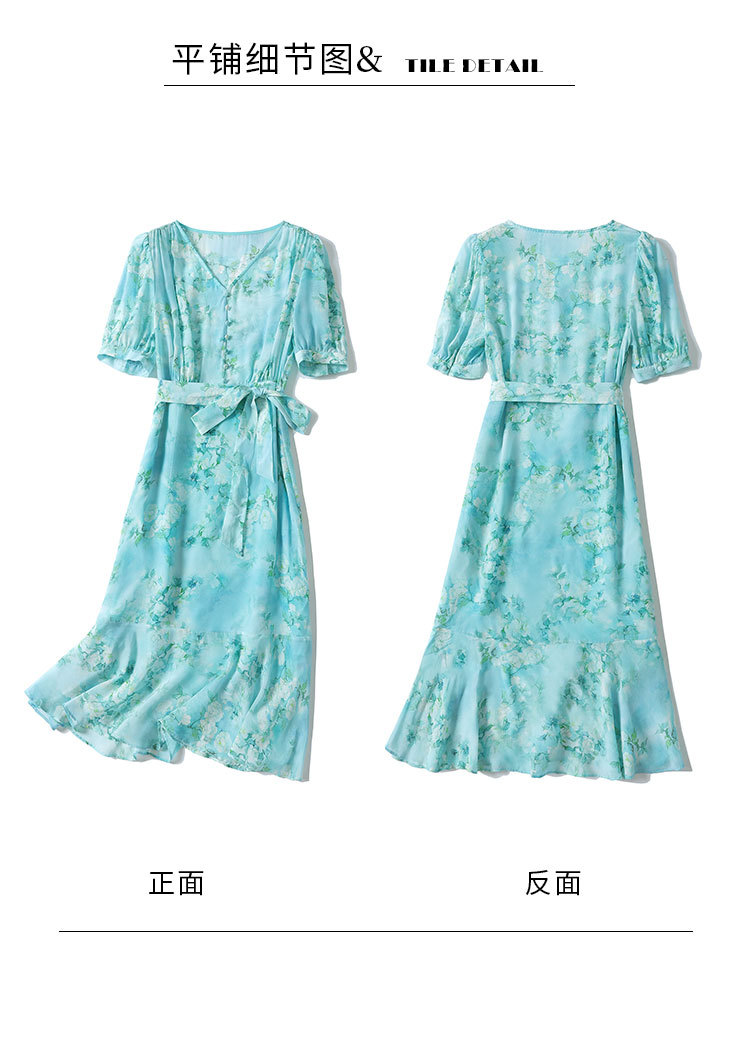 「高货kbnq」全新升级【铂金会员477/天猫639/差价162】(54256)洛诗琳气质真丝印花连衣裙2025夏季双绉蚕丝荷叶边裙子
