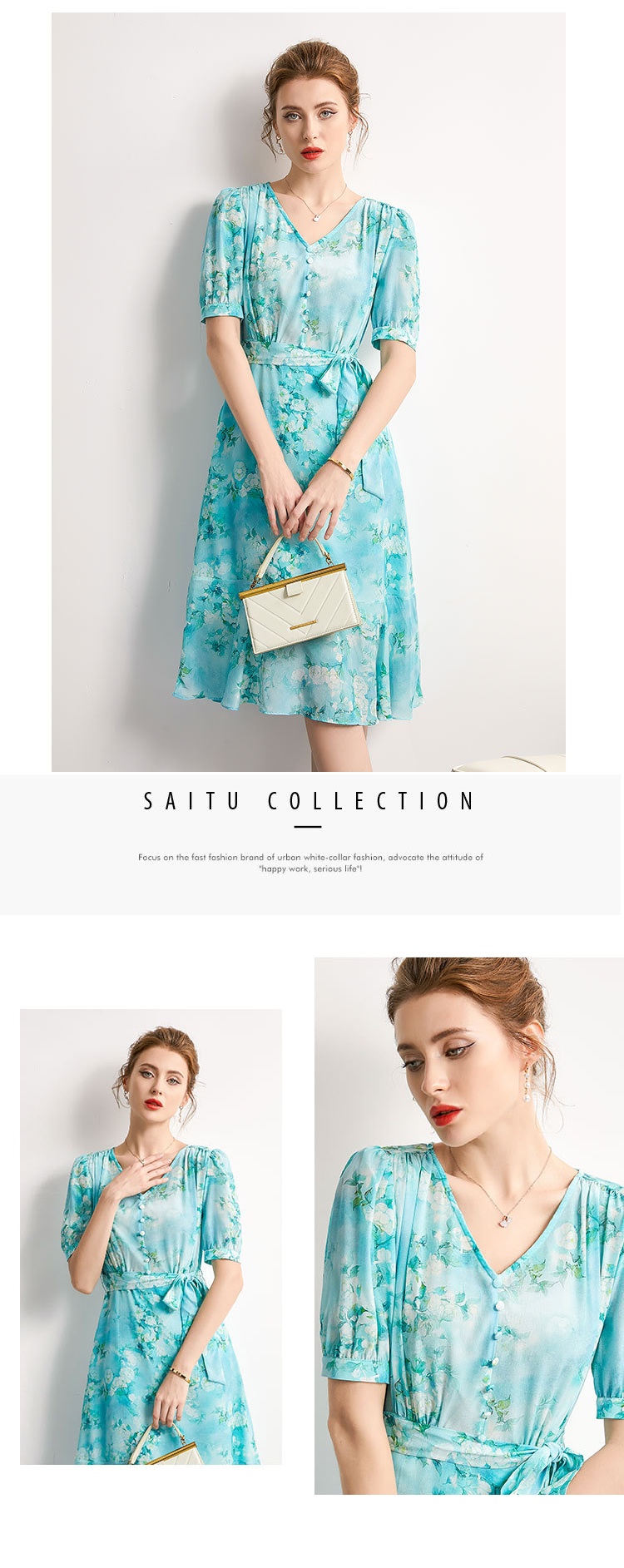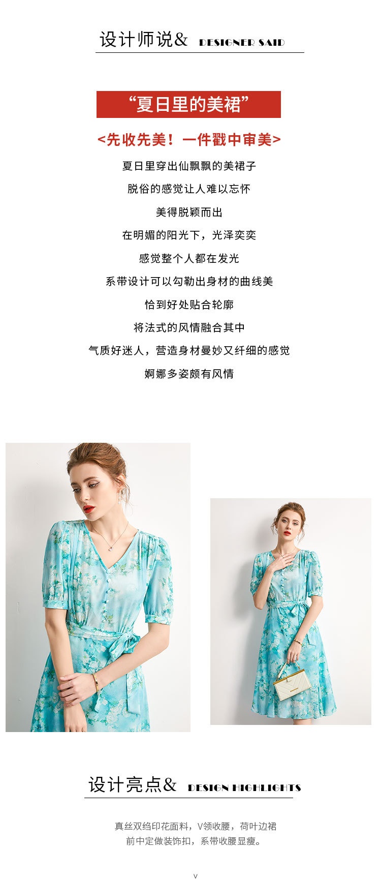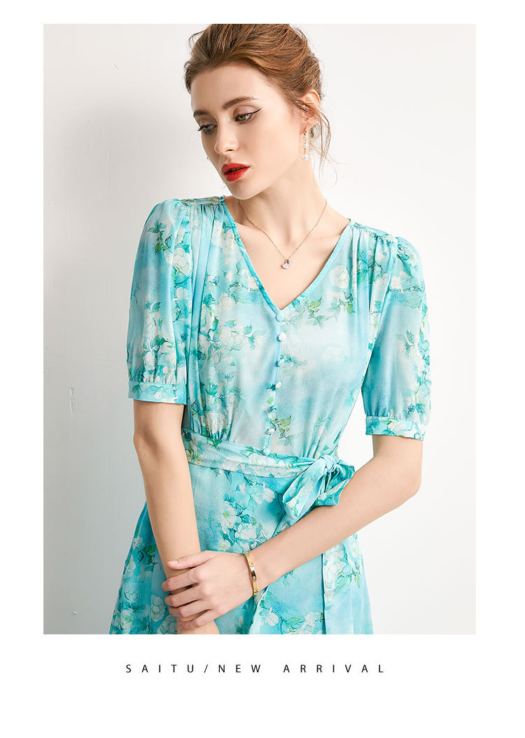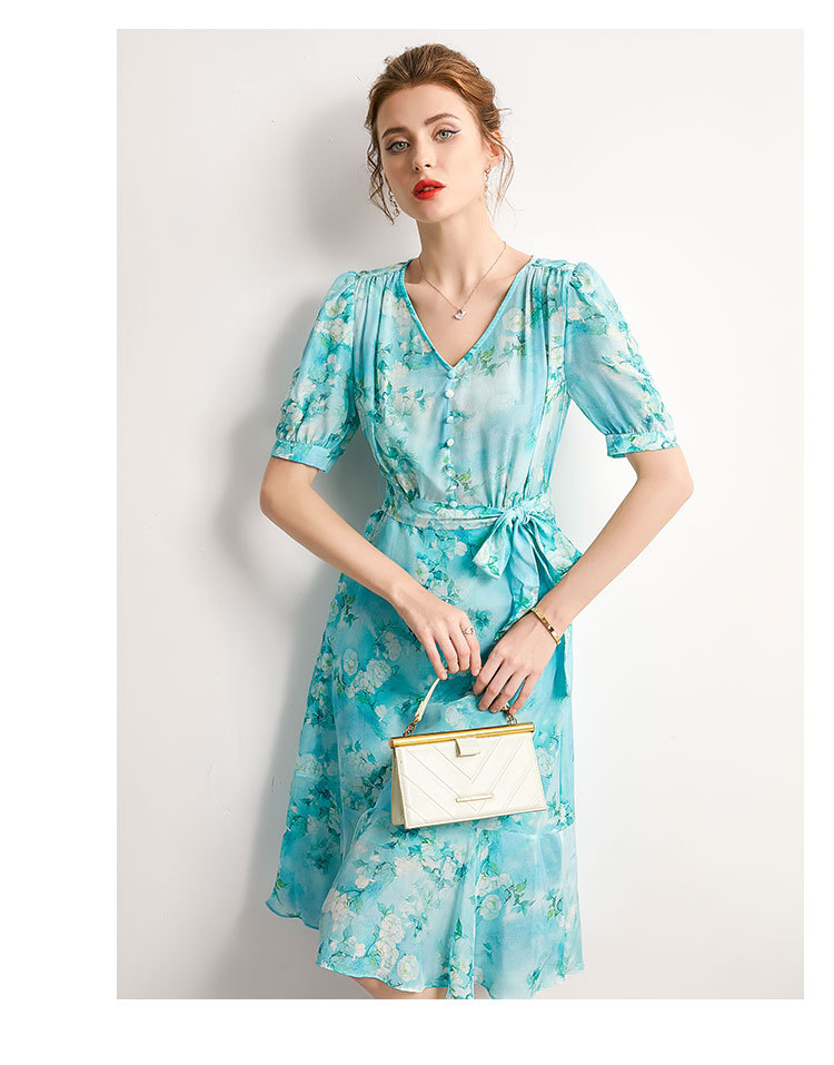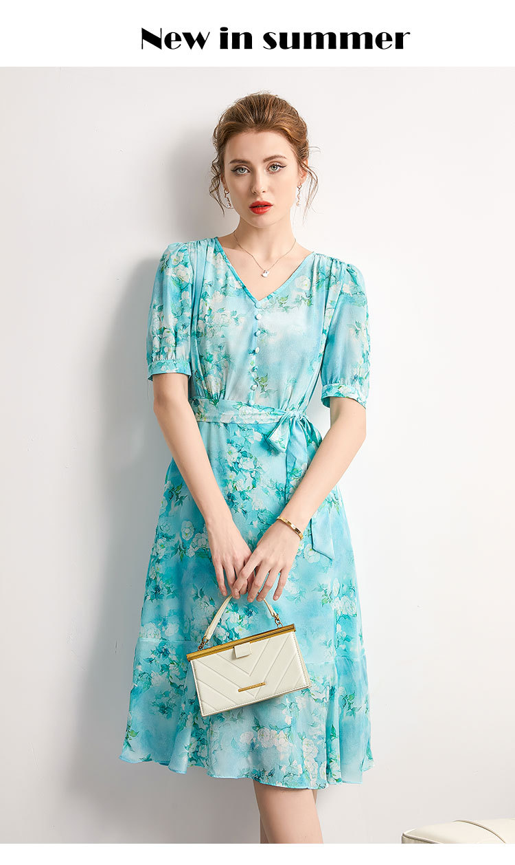 「高货kbnq」全新升级【铂金会员477/天猫639/差价162】(54256)洛诗琳气质真丝印花连衣裙2025夏季双绉蚕丝荷叶边裙子