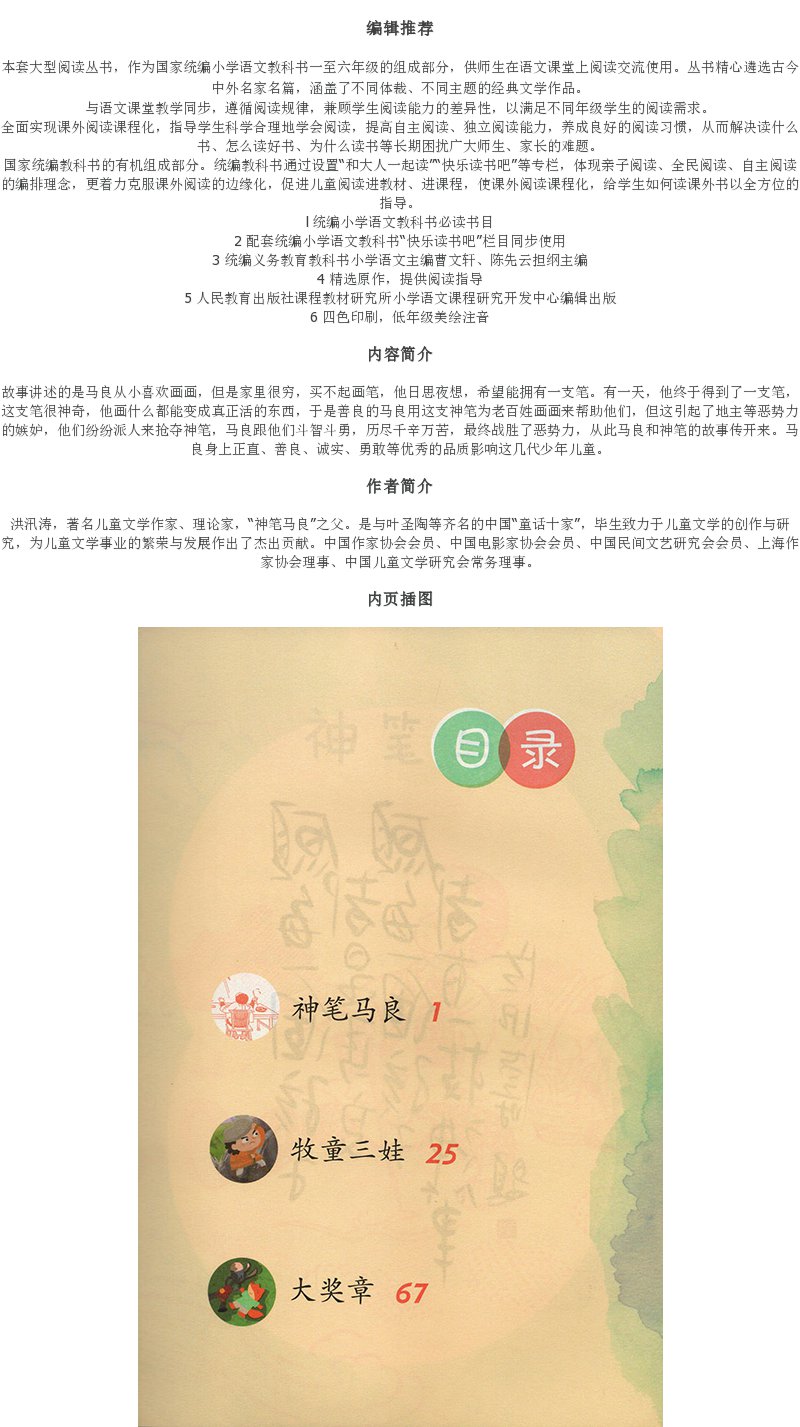 神笔马良人教版 统编语文快乐读书吧2年级下无注音二年级