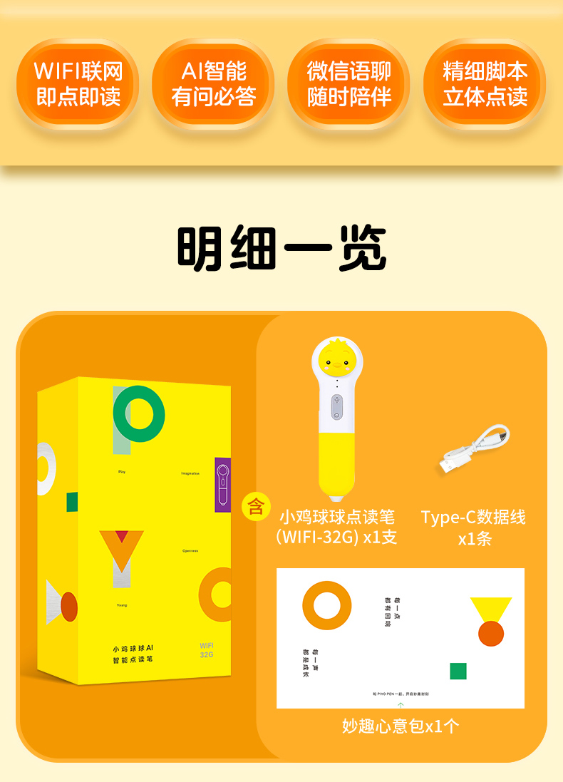 PIYO PEN小鸡球球点读笔(WIFI/32G单笔礼盒)
