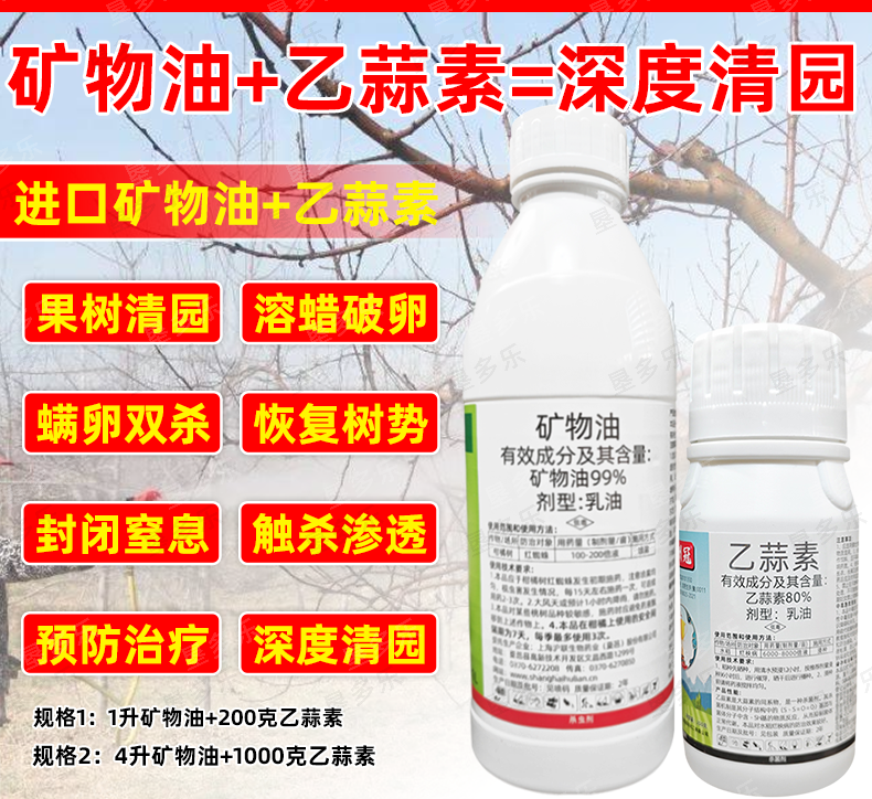 矿物油乙蒜素清园方案套餐柑橘树介壳虫红蜘蛛果树清园剂农用正品