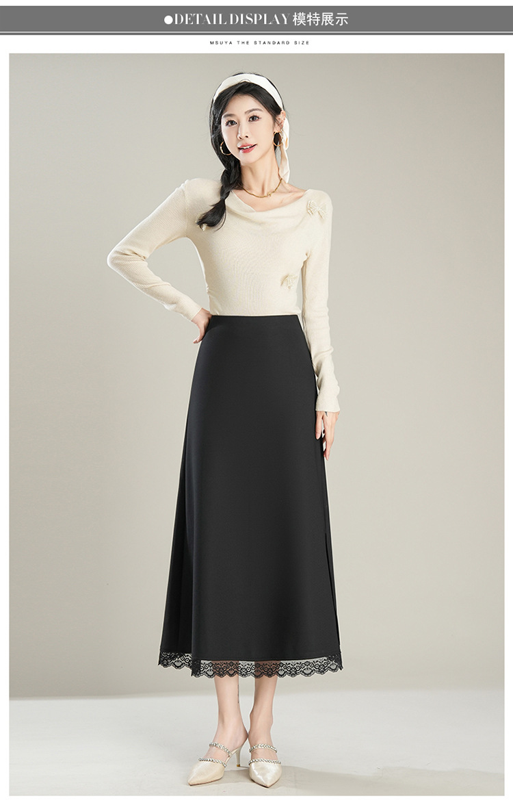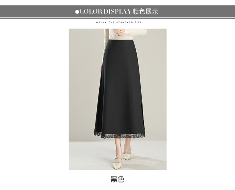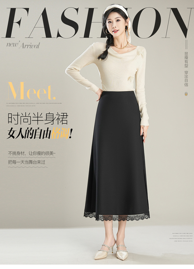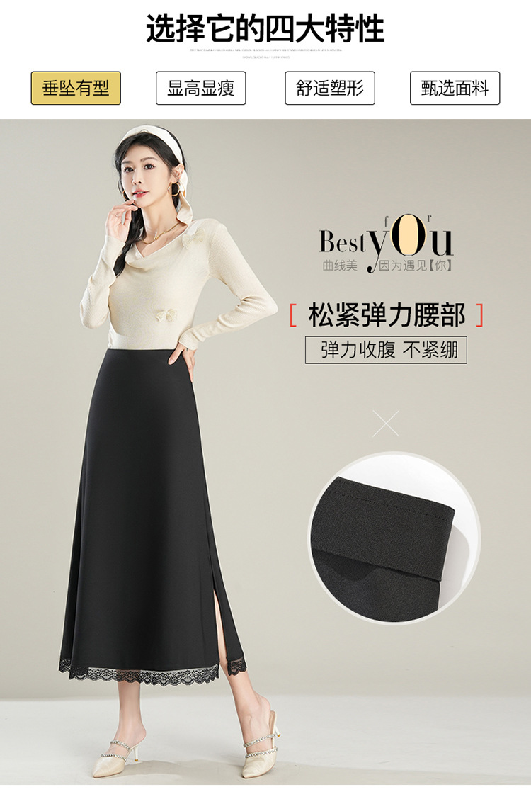 「初秋福利优雅半身裙」洛诗琳新款气质蕾丝边松紧腰半身裙2025年秋季新款前后两穿中长款A字裙65853