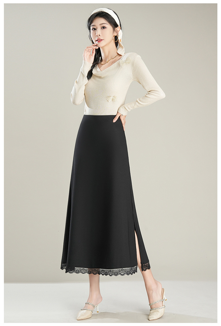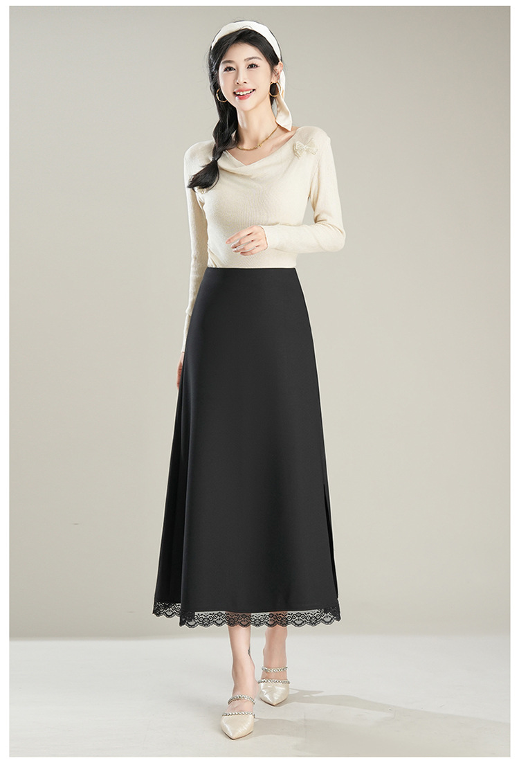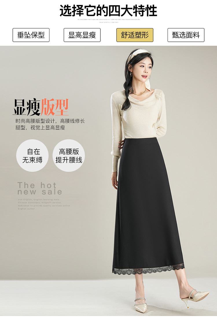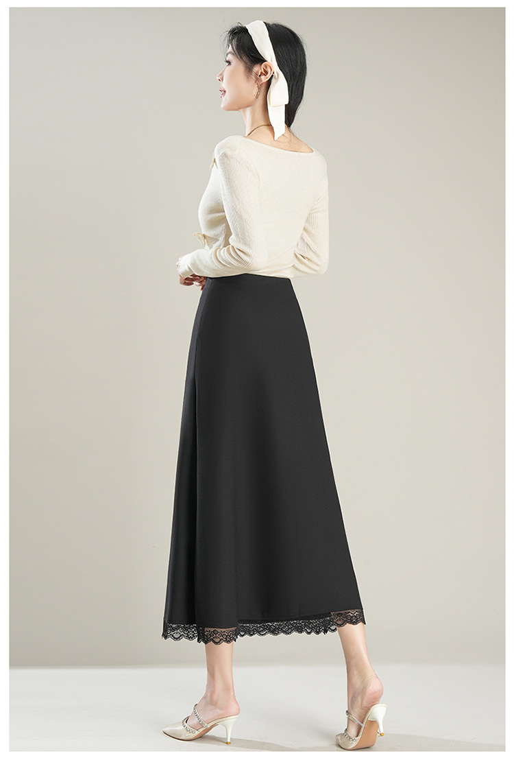 「初秋福利优雅半身裙」洛诗琳新款气质蕾丝边松紧腰半身裙2025年秋季新款前后两穿中长款A字裙65853