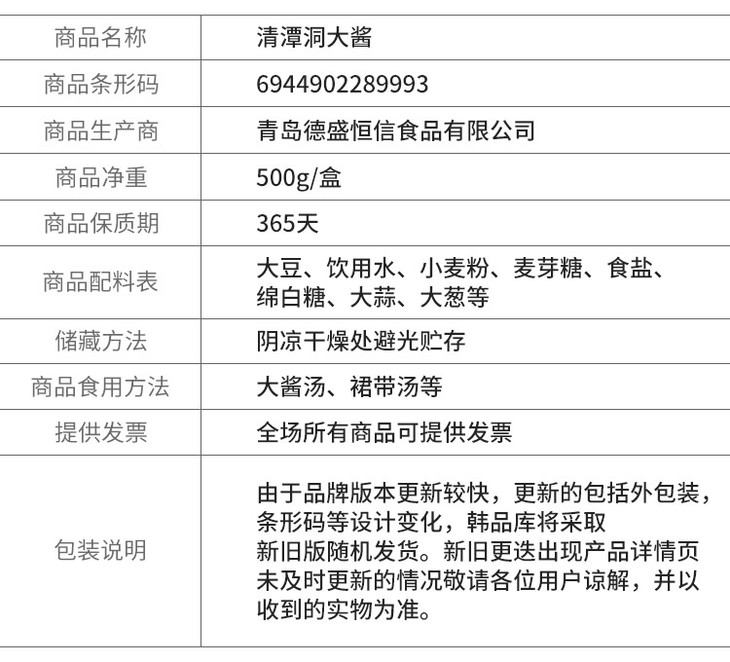 청담동된장清潭洞大酱500g