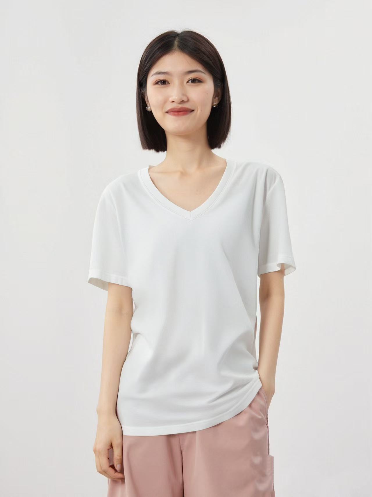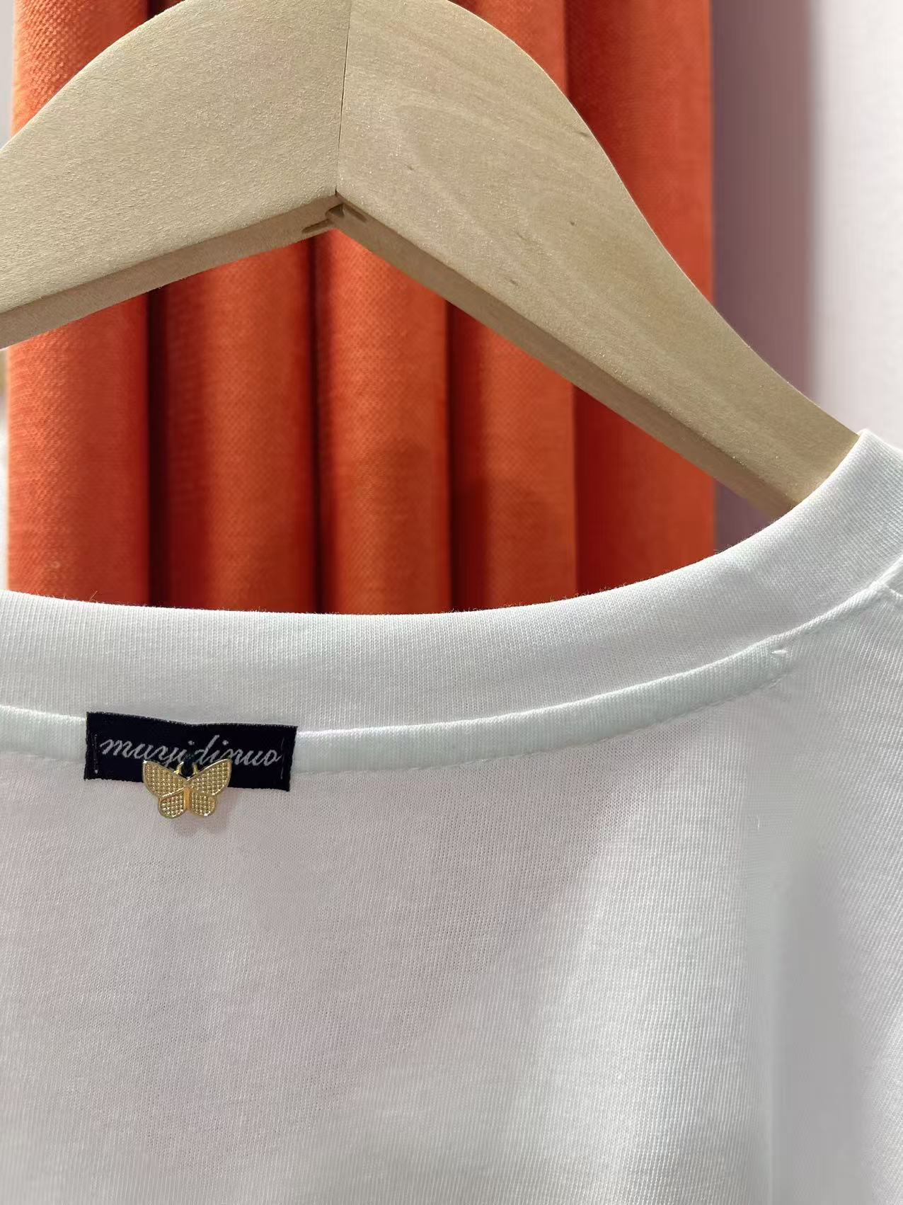 清仓价2025~6127 夏季薄款V领后蝴蝶标T恤-喜出