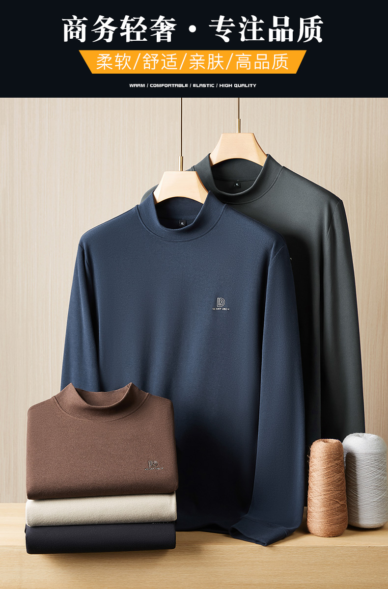 【新款DPF】大依优型大码半高领长袖T恤打底衫休闲加肥加大上衣男士胖子大码t恤打底