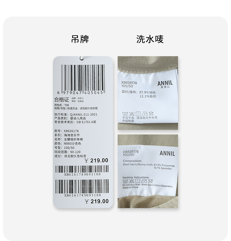 【实体店同款】男童全腰梭织单裤夏季新款安奈儿童装XB626178