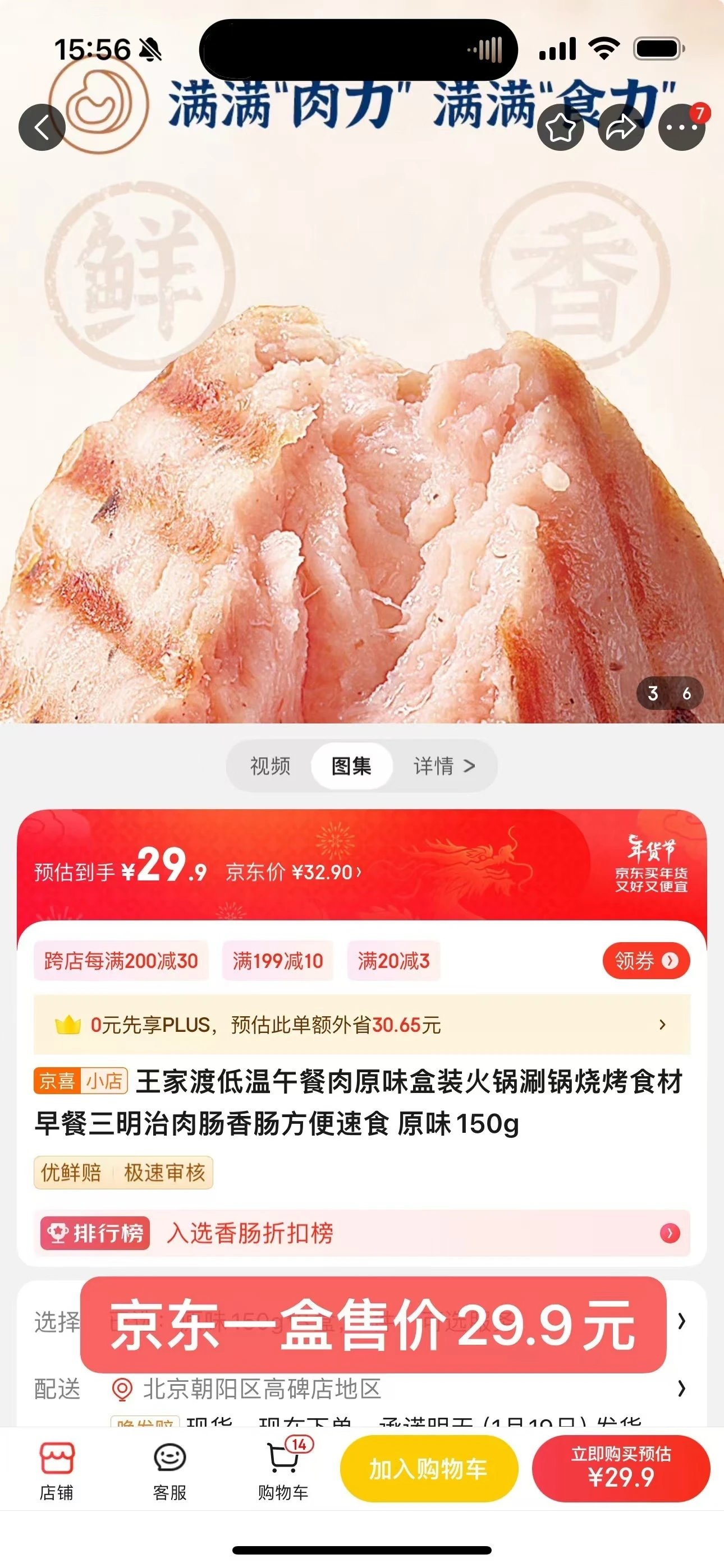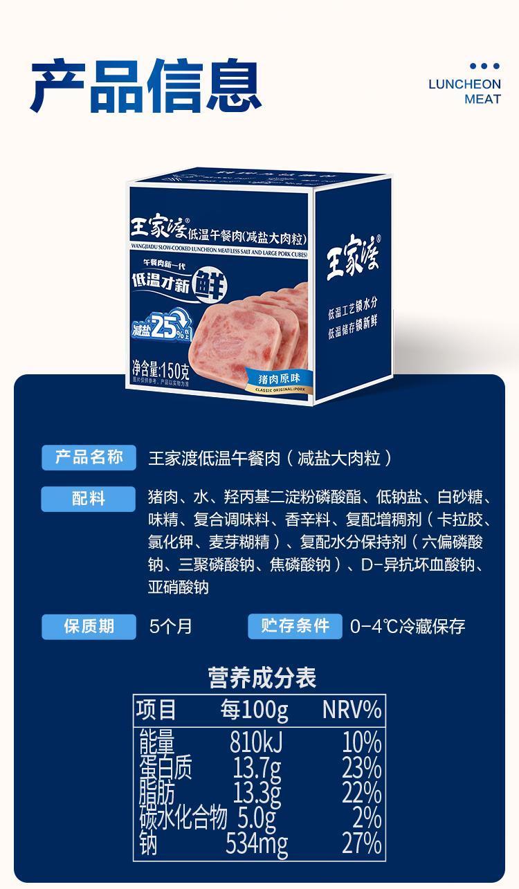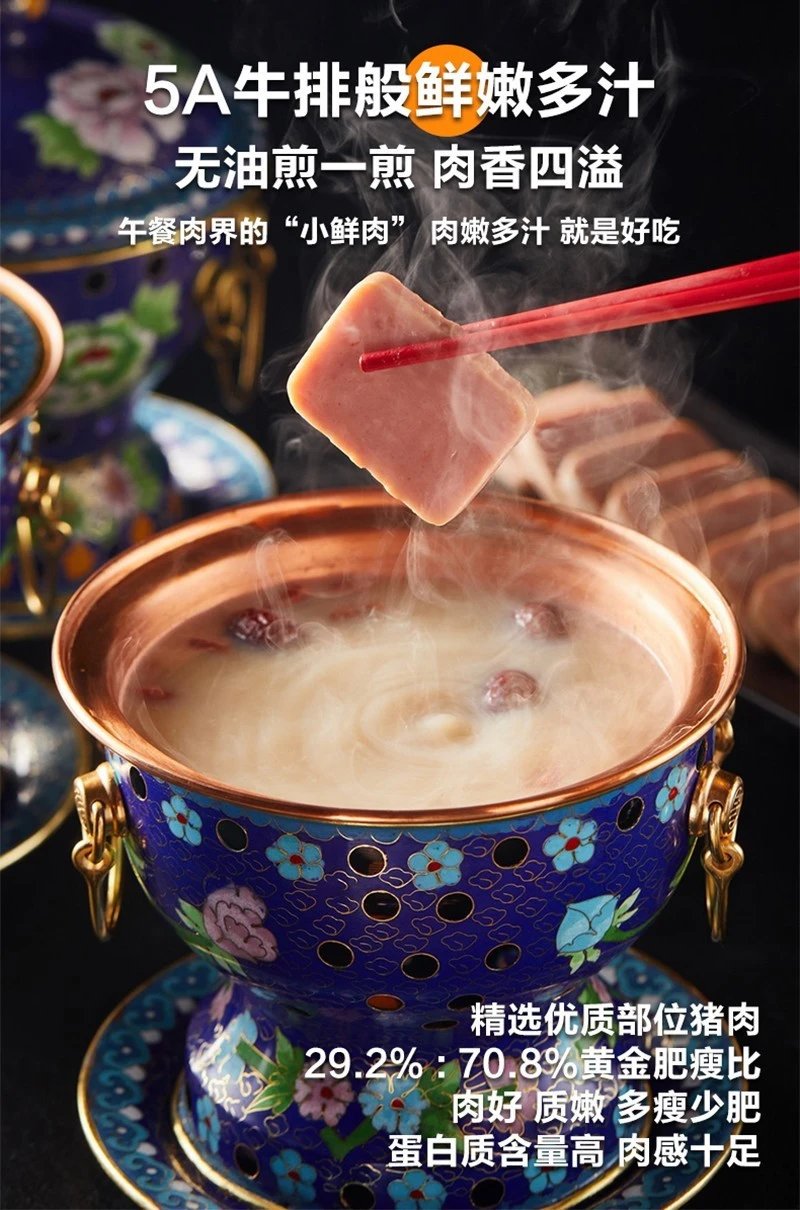 开年福利❤️59.9元到手6盒+送1盒+送52g🎁米其林星级工艺【王家渡低温午餐肉】肉质细腻 鲜嫩多汁 营养更健康,0添加!小朋友放心吃!用来炒饭,夹三明治,涮火锅,煮泡面