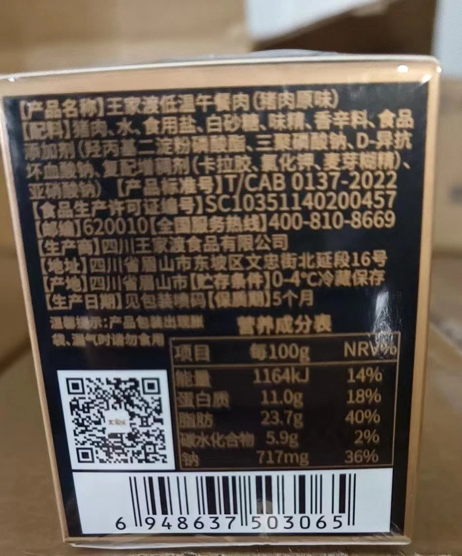 产品名:王家渡低温午餐肉(眉州东坡监制)