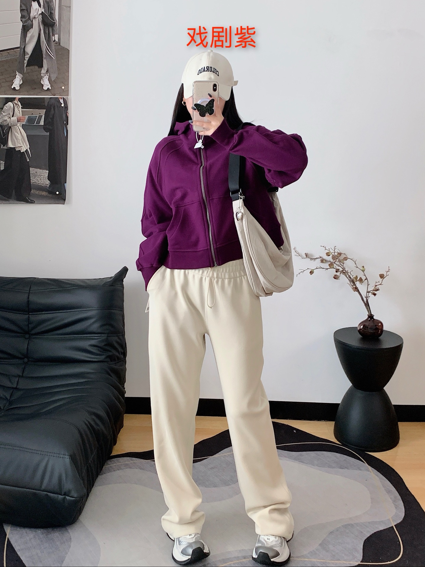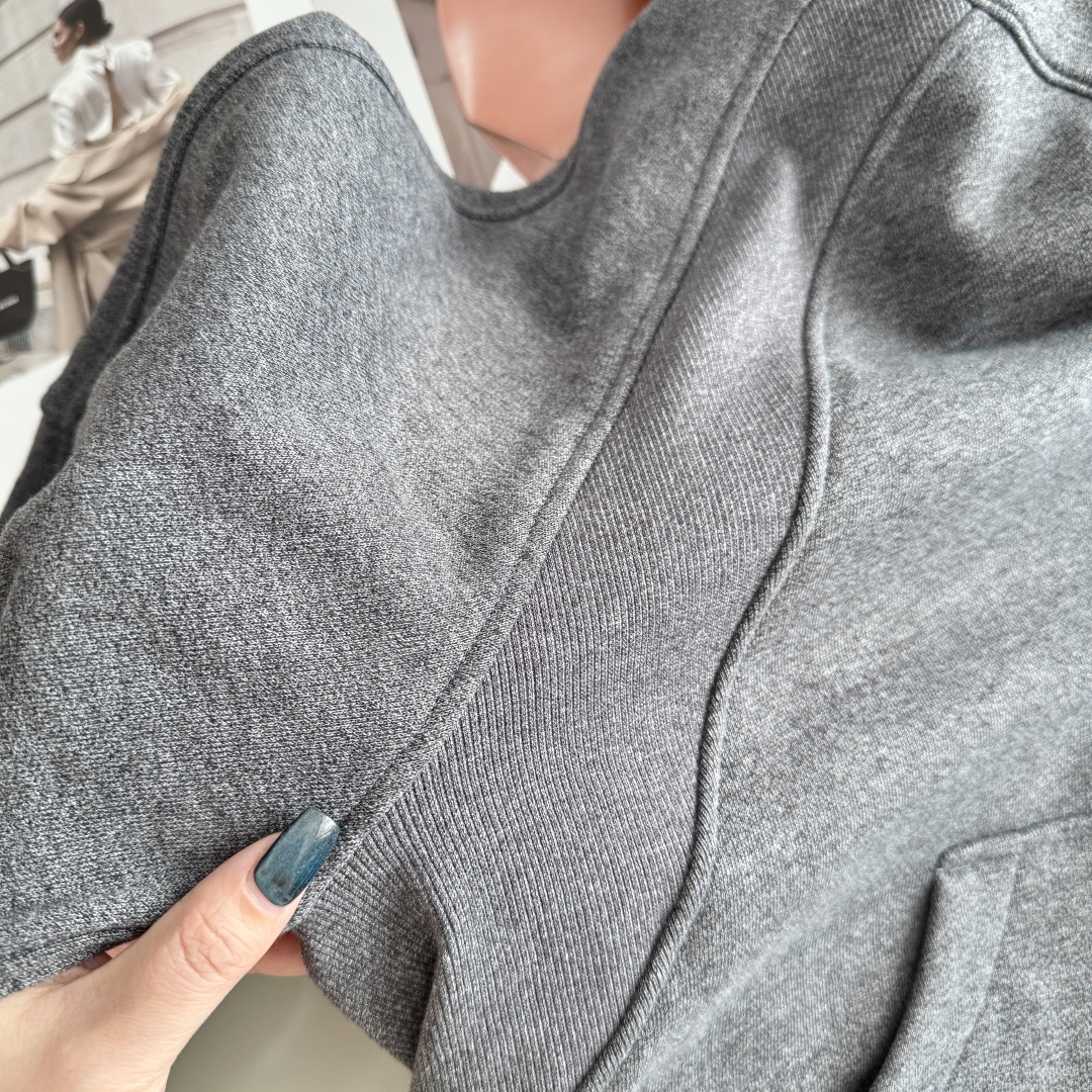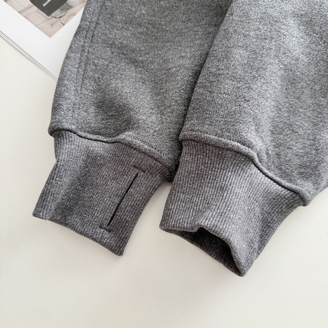 咱们的螺纹和本布完全对色的,面料是跟着大货定织定染来的,97%棉+3%弹力丝,外层轻微磨毛感,内里毛圈质感,既有舒适度又有挺阔感!宽松版型休闲舒适不挑人,可盐可甜运动日常都很实穿时髦百搭~反正春秋穿刚好而且怎么穿都好看!!