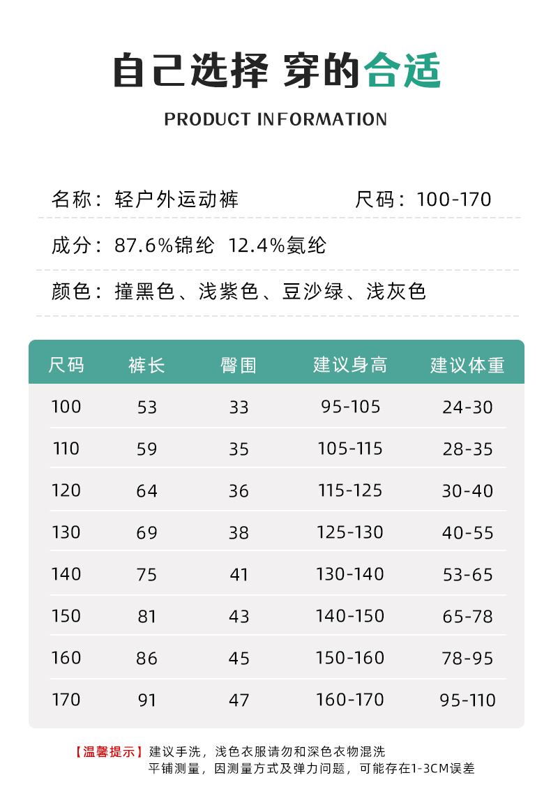 【24年反季特价清仓】龙之涵龙之涵轻户外运动裤2023春季新款儿童裤 婴幼儿A类标准