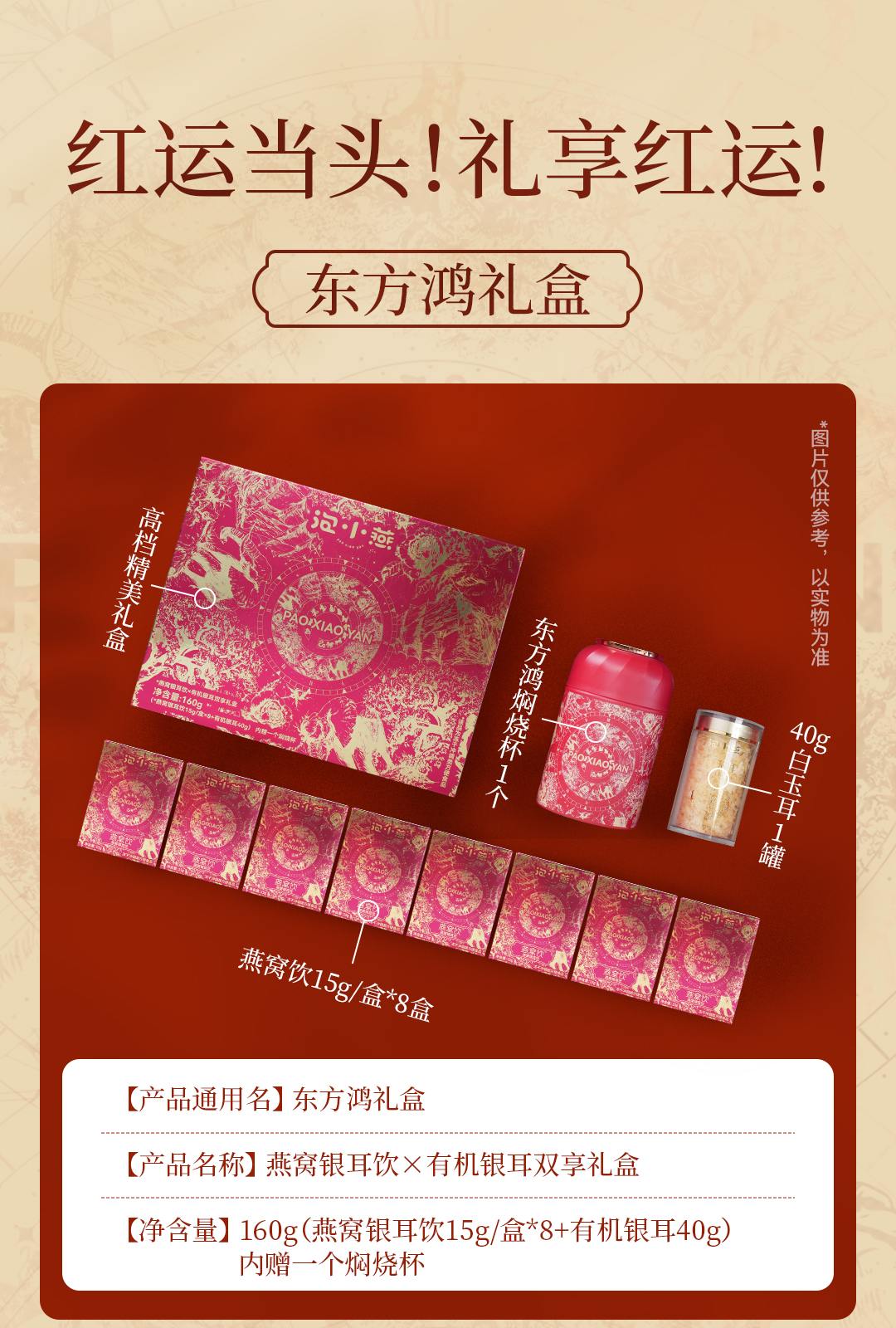 “年货节热卖”泡小燕 东方红礼盒燕窝饮有机银耳/福到甜来炖品礼盒水牛奶桃胶羹陈皮莲子红豆沙