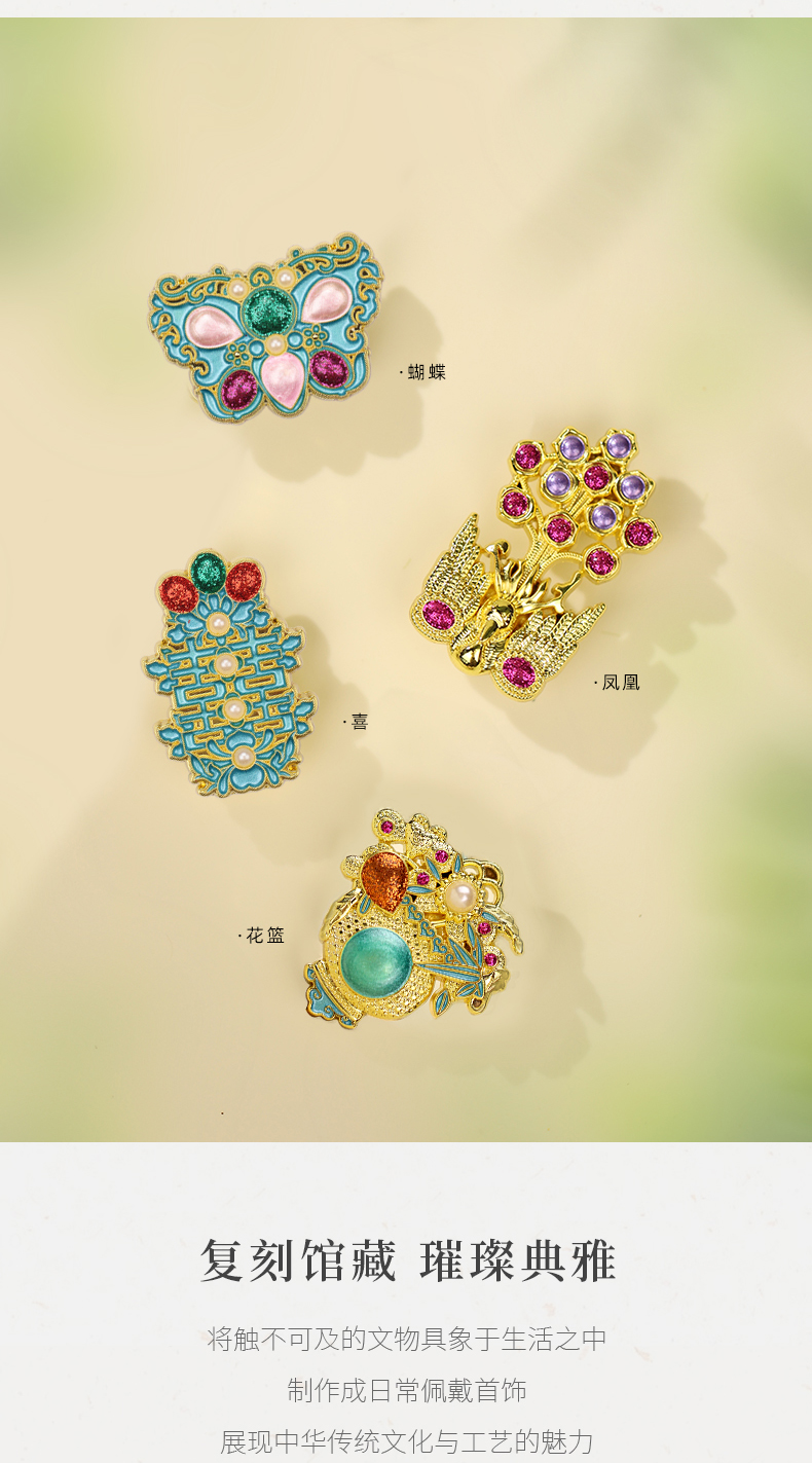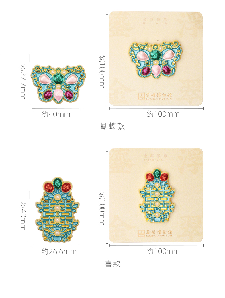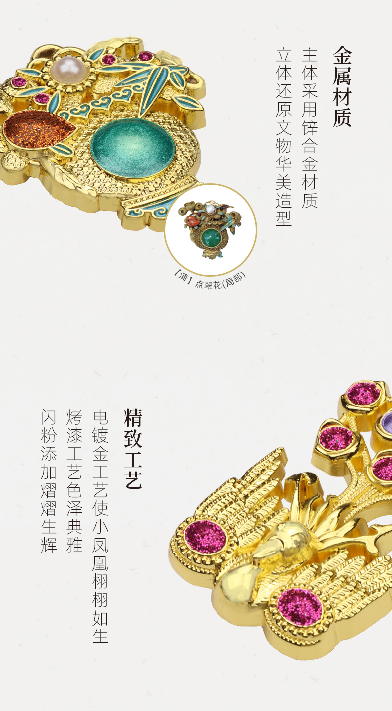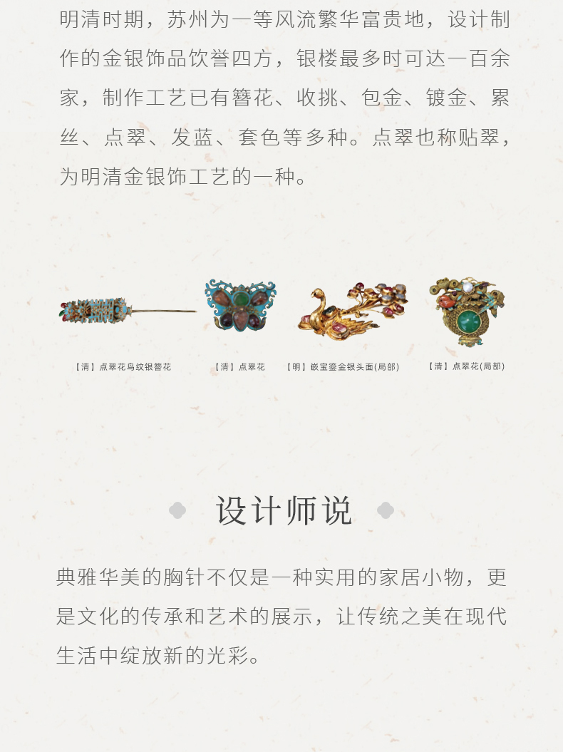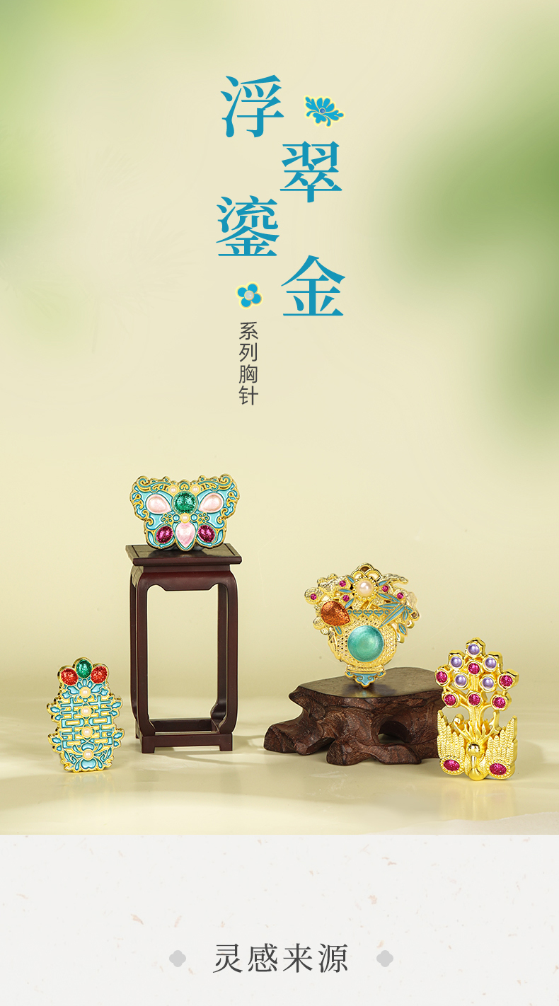 苏州博物馆 浮翠鎏金/嵌彩鎏金胸针