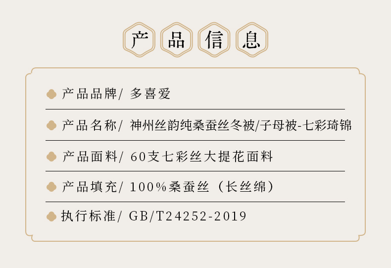 多喜爱 神州丝韵纯桑蚕丝冬被/子母被(七彩琦锦)cs