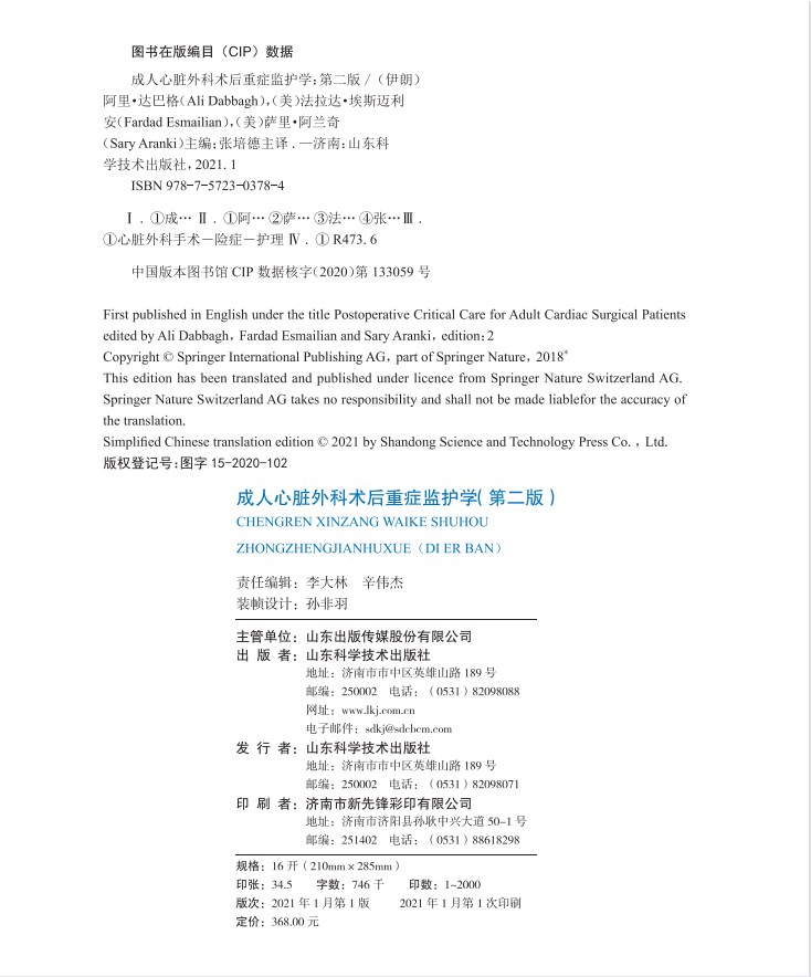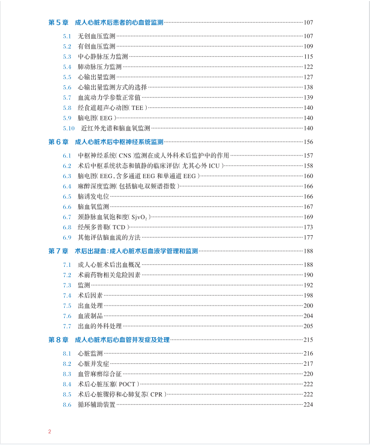 本书几乎涵盖了成人心脏术后监护的各个方面,不仅包括心血管系统的监测、液体管理、内环境管理等核心内容,而且以系统为导向介绍了术后各系统并发症及监测治疗、出凝血紊乱、疼痛管理和营养支持等内容,同时该书对术前患者情况、术中情况和术后监护的影响也做了叙述,更难能可贵的是,该书非常详尽地对心脏生理、心血管药理和用药原则分章节进行描述,还增加了人工心脏、心脏移植患者的术后监护等内容,广泛系统地展现了心脏术后重症监护的各个环节。