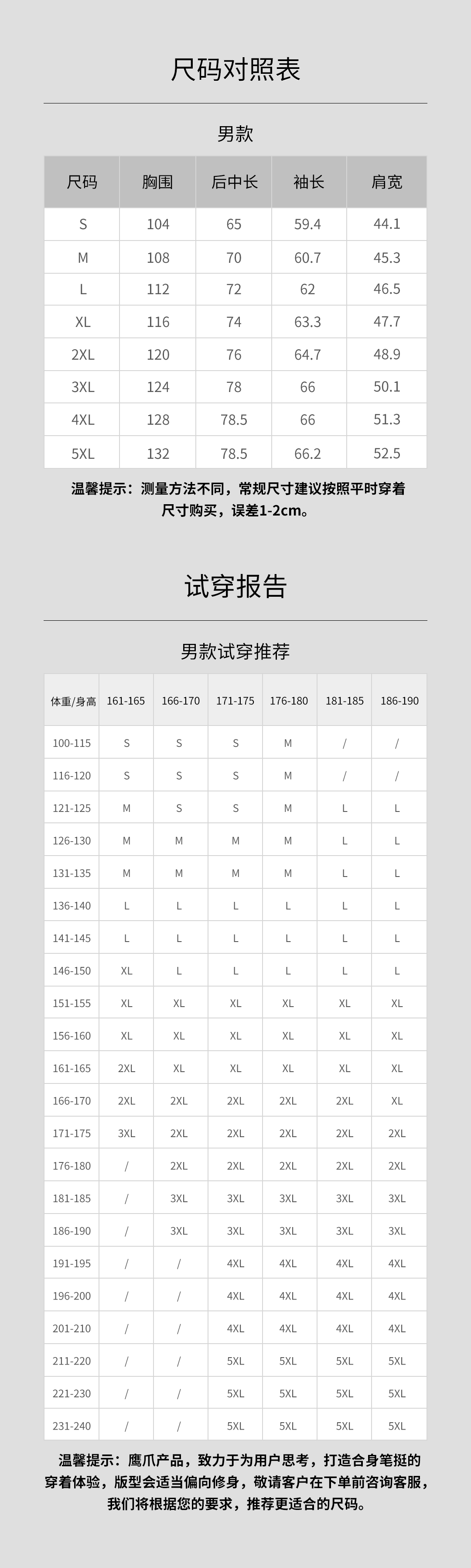 小提示:购买之日起,衣服出现质量问题(非人为损坏)一年内免费维修!无法维修,将直接更换!(磨损件除外)