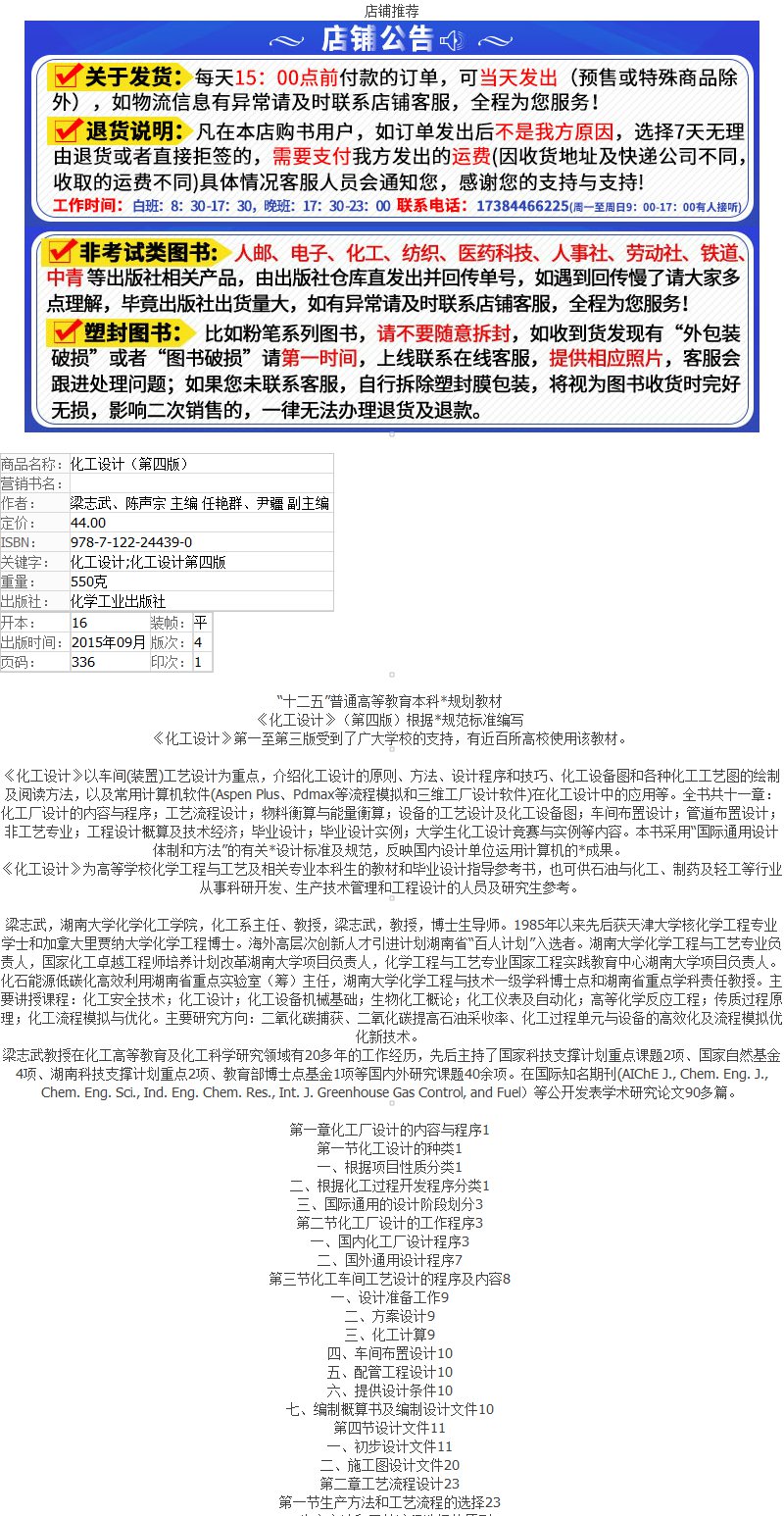 正版 化工设计 第四版 化工设计原则方法设计程序和技巧 化工设备图 化工工艺图绘制阅读方法 工艺流程设计应用 化工设计应用书籍 化学工业出版社 9787122244390