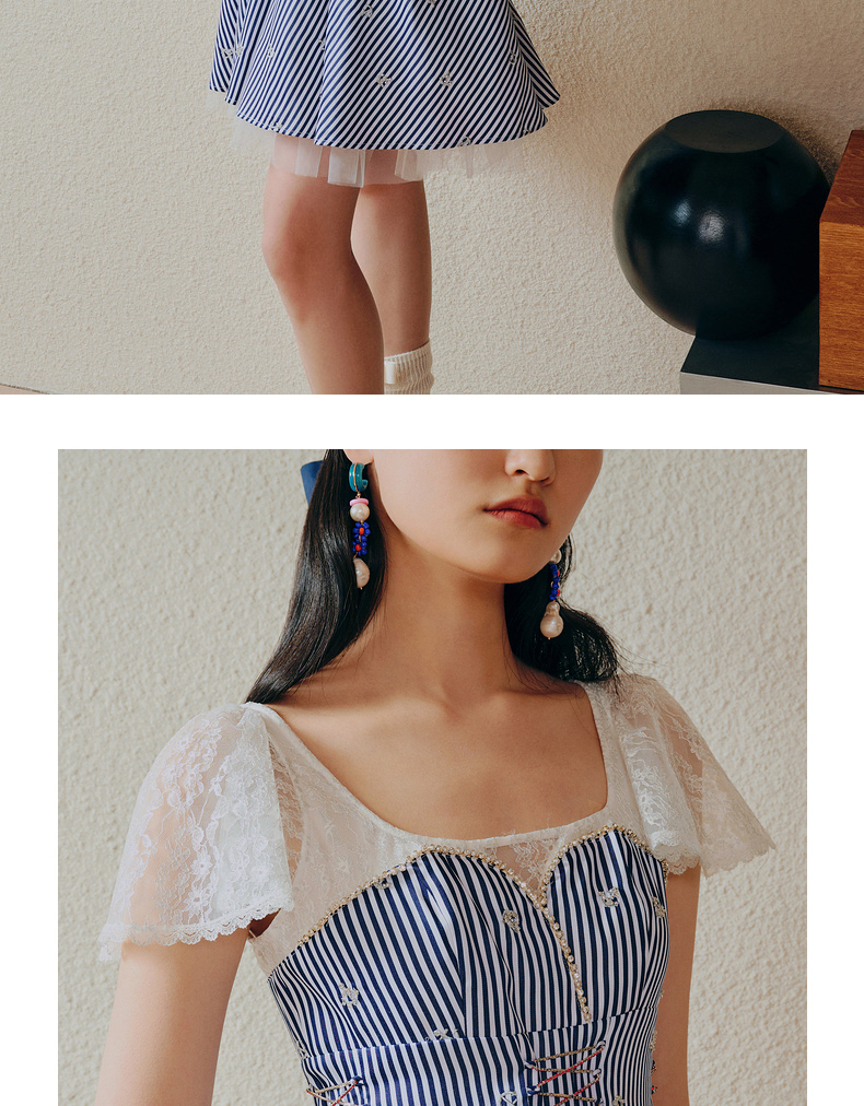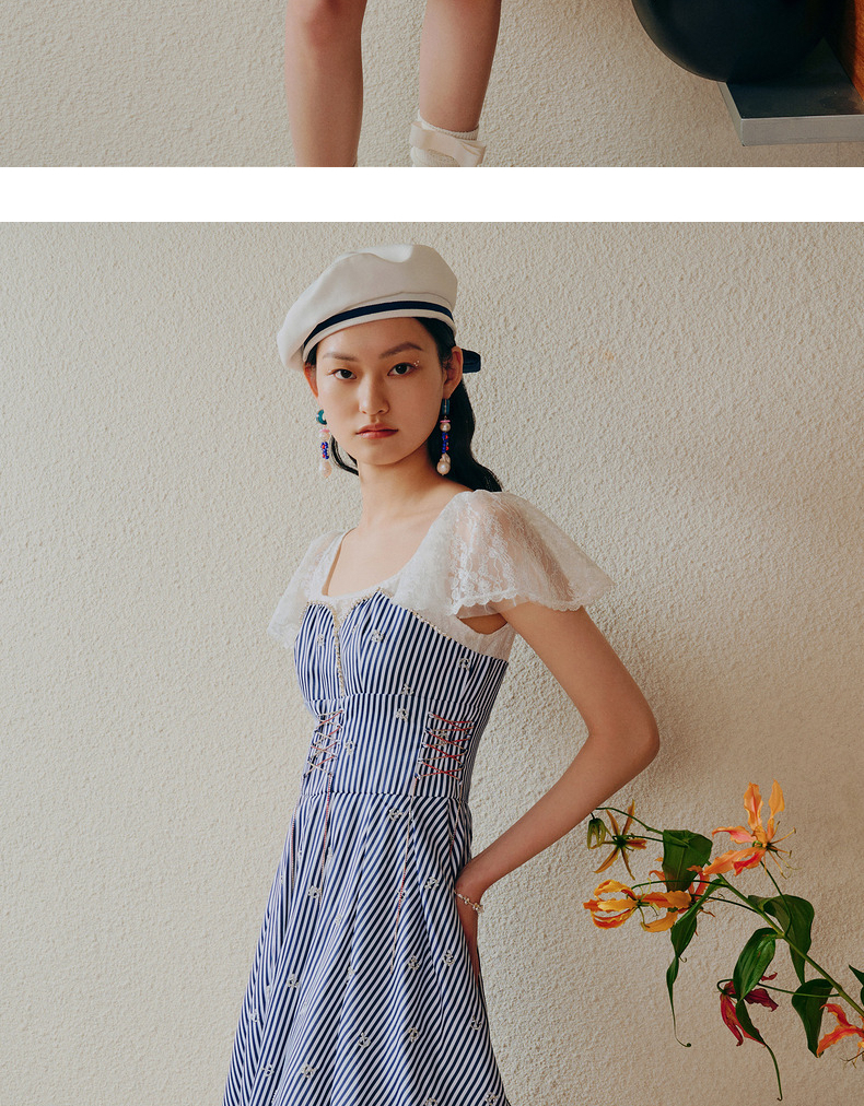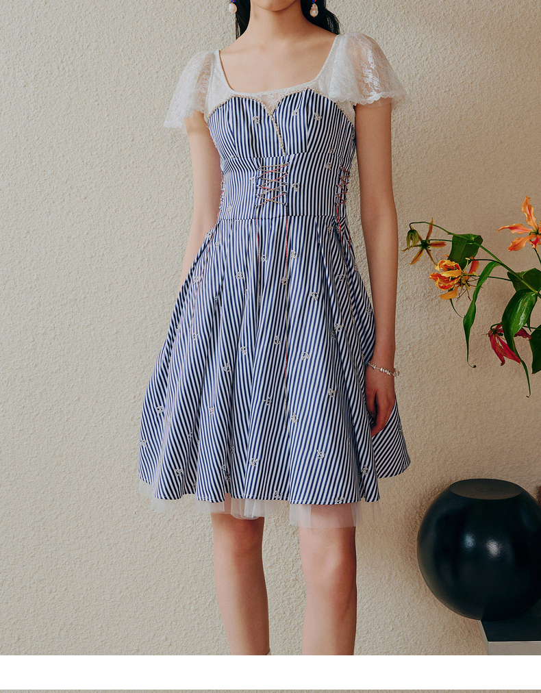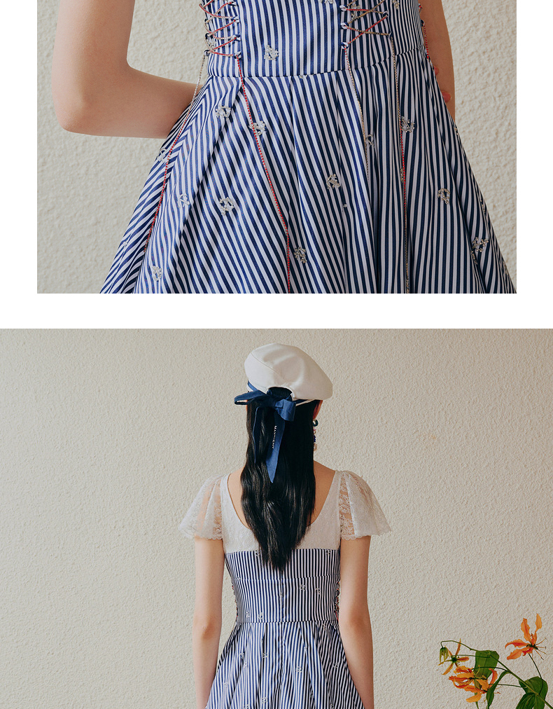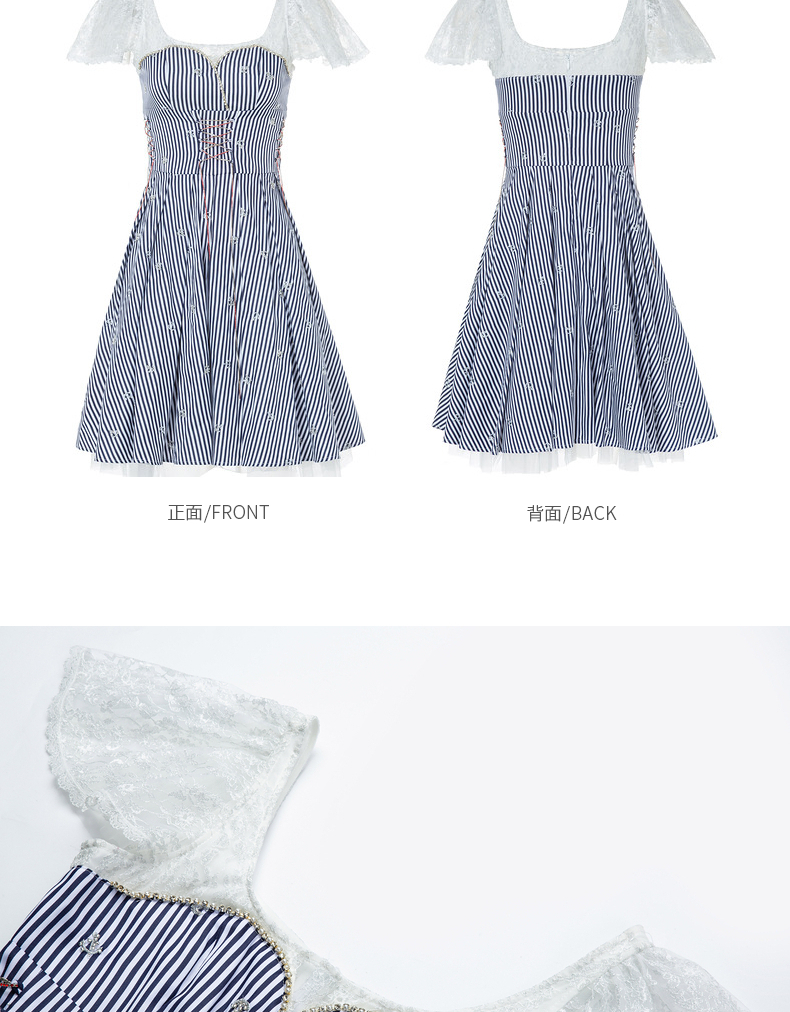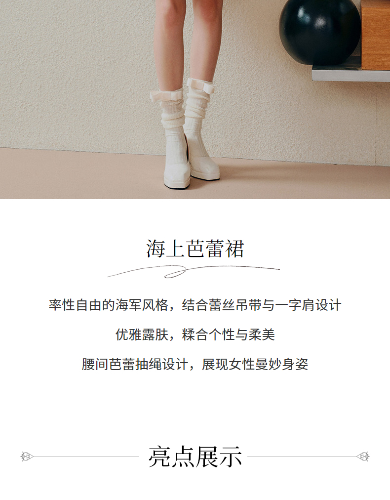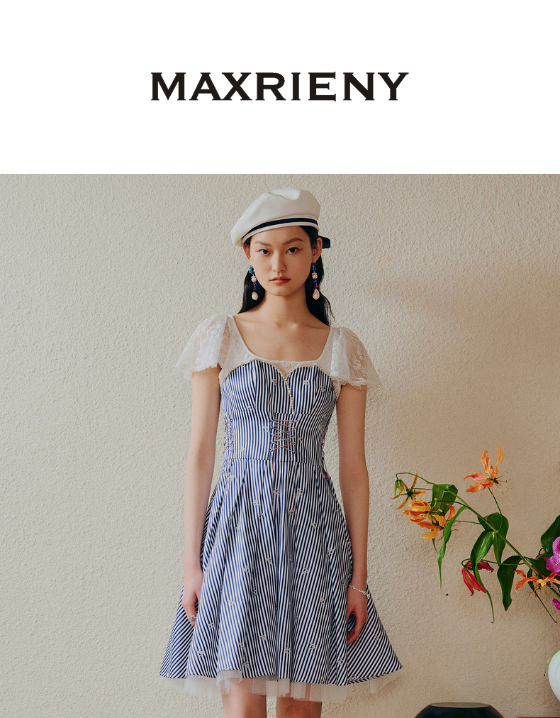 MAXRIENY海军风海上芭蕾裙一字肩吊带连衣裙(货号:MC88DR268)