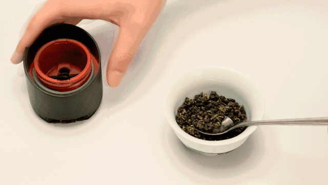 将杯盖打开之后,直接把冲泡的茶叶加入到带着特殊网状小孔和活动滤孔的茶格中。