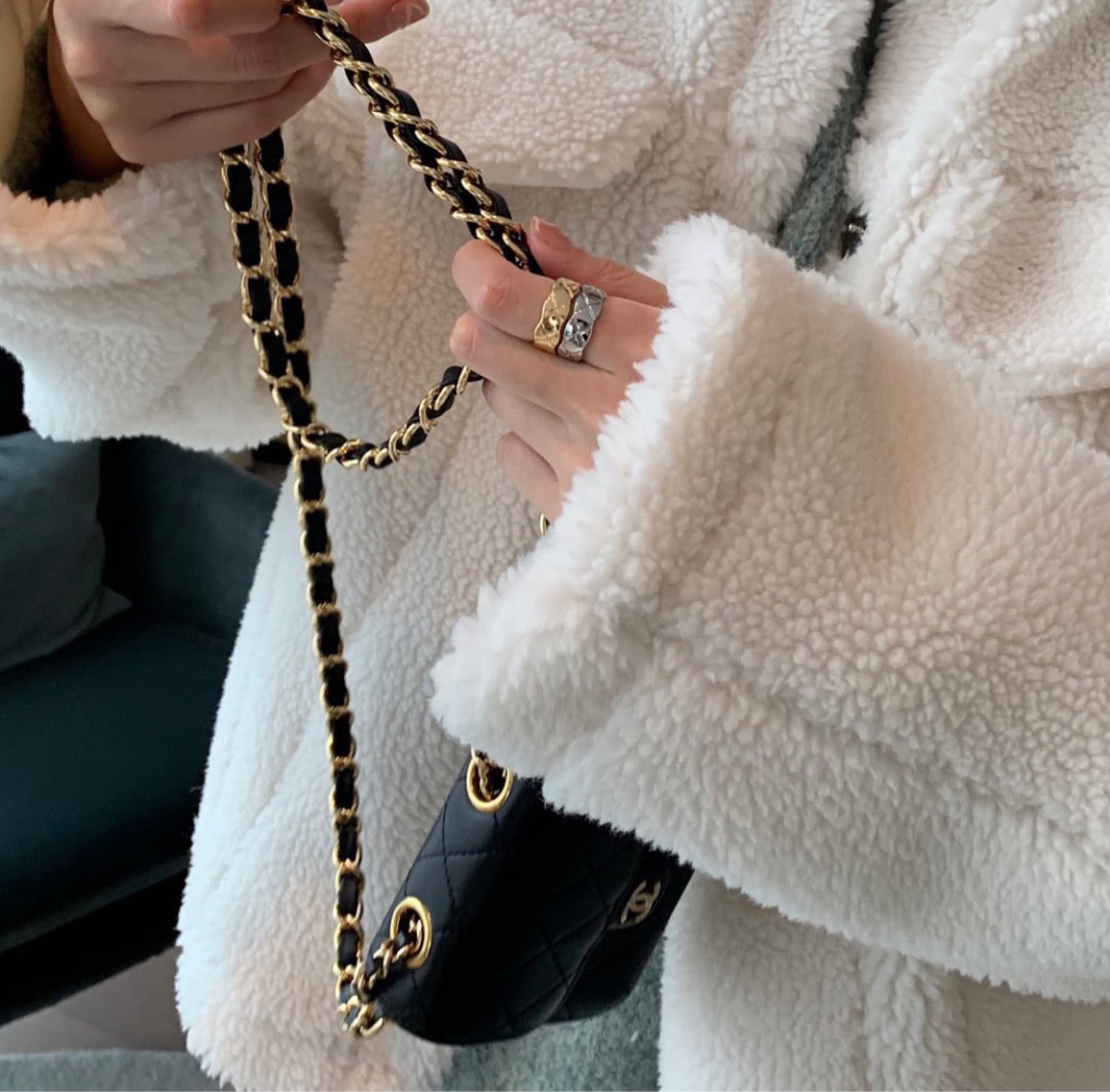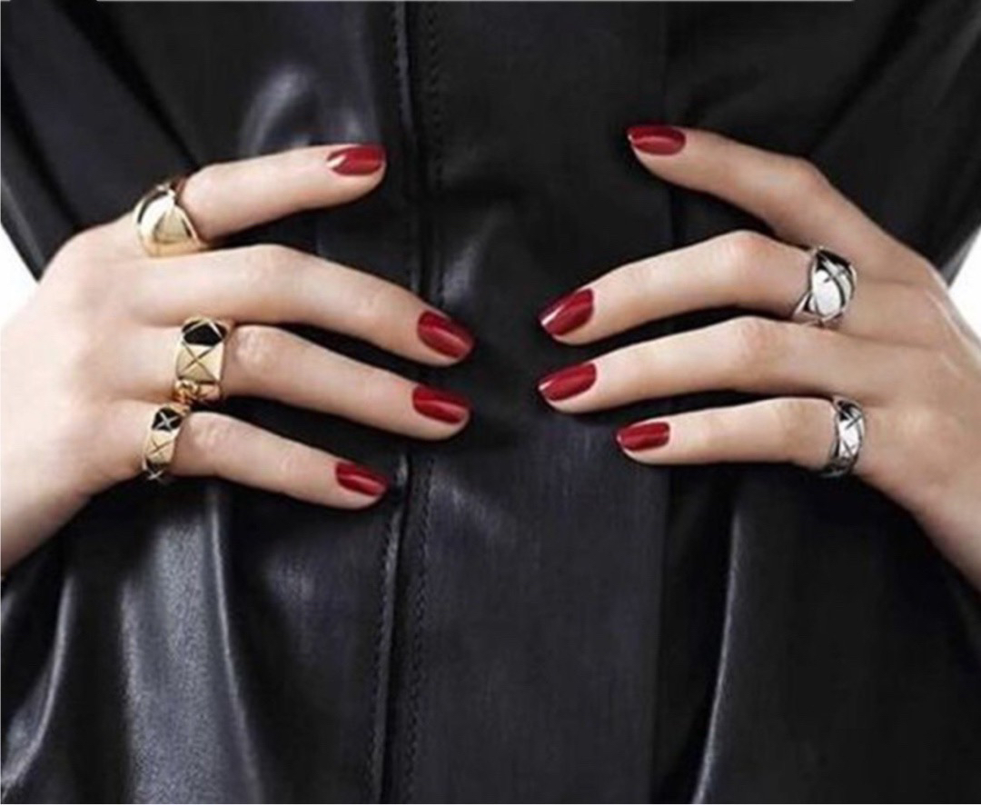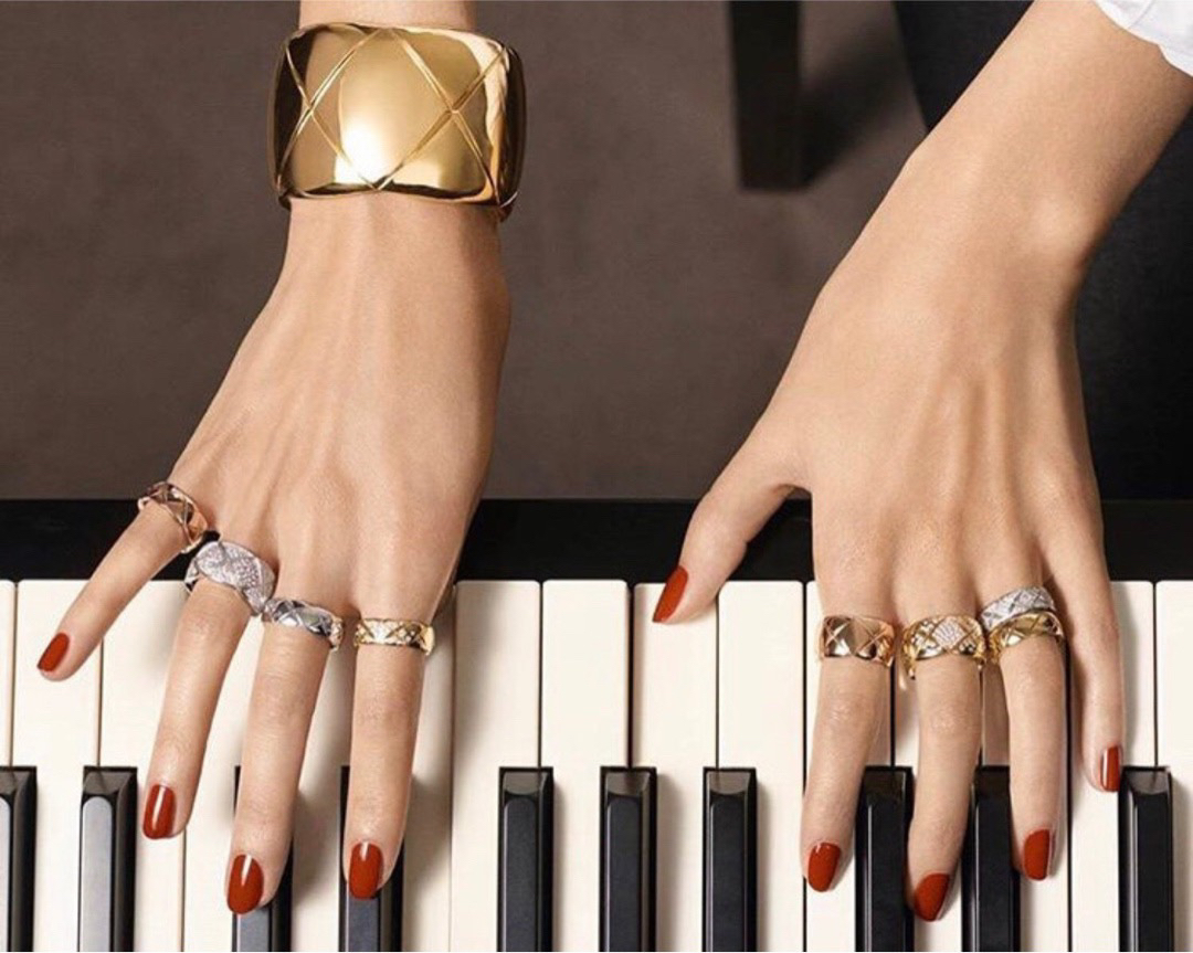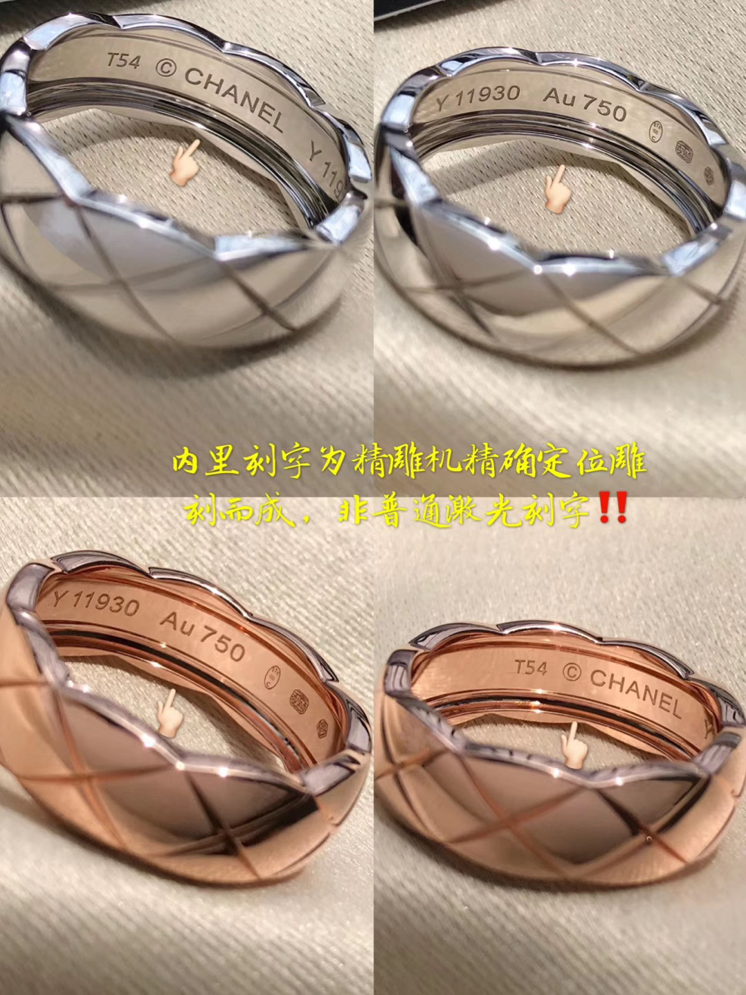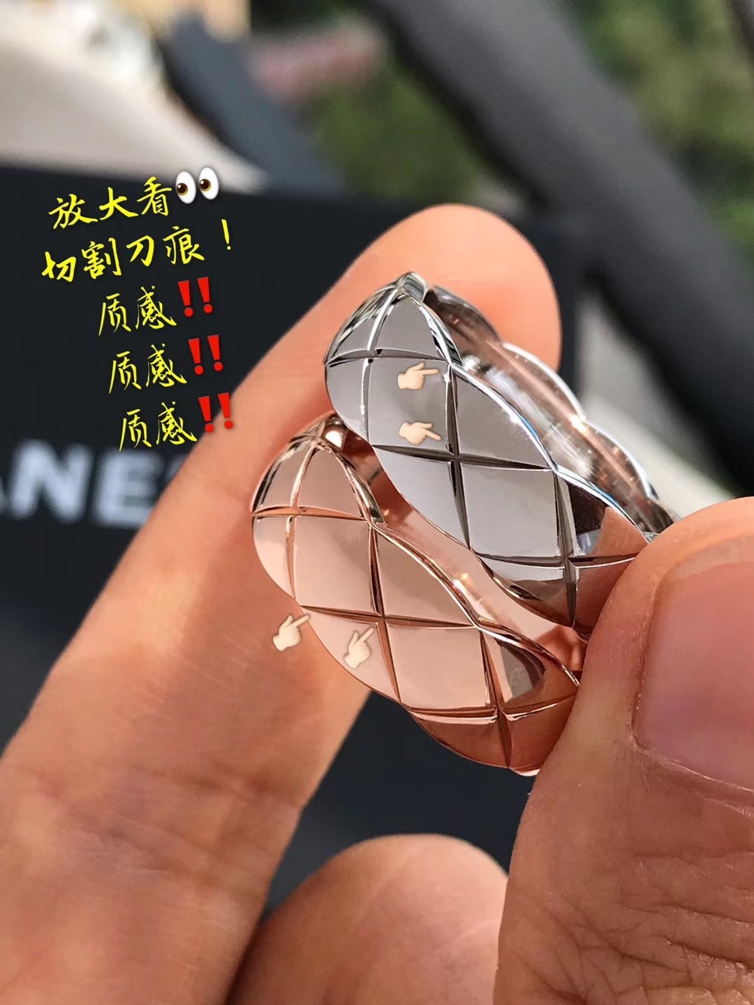 金属光泽质感,满满高级feel,厚金电镀表层不褪色‼以精湛的工艺雕刻出Chanel最经典最优雅的菱格纹,摩登又率直,个性独立,气质不凡,低调奢华,极富现代感!无论单戴还是叠戴,都能彰显独一无二的风格!4条交叉菱格纹为雕刻刀一条一条切出来,而非低成本倒模件,只有刀切才能使菱格线条的棱角感与正品一致带完美视觉效果!细腻细节,真金工艺,银的价格!认准品质‼