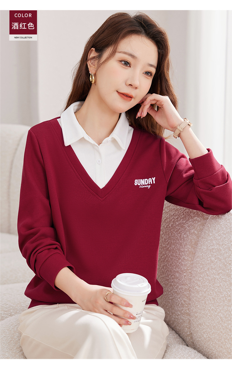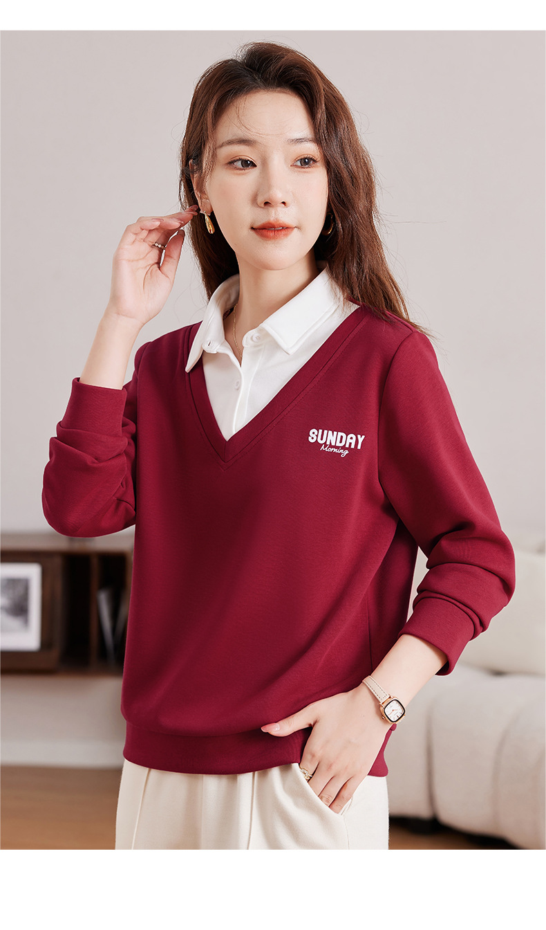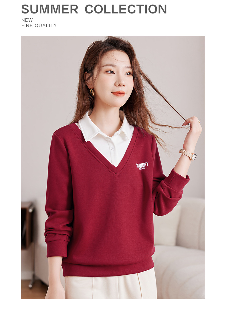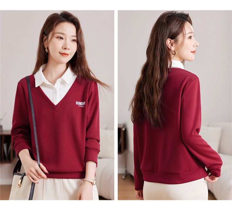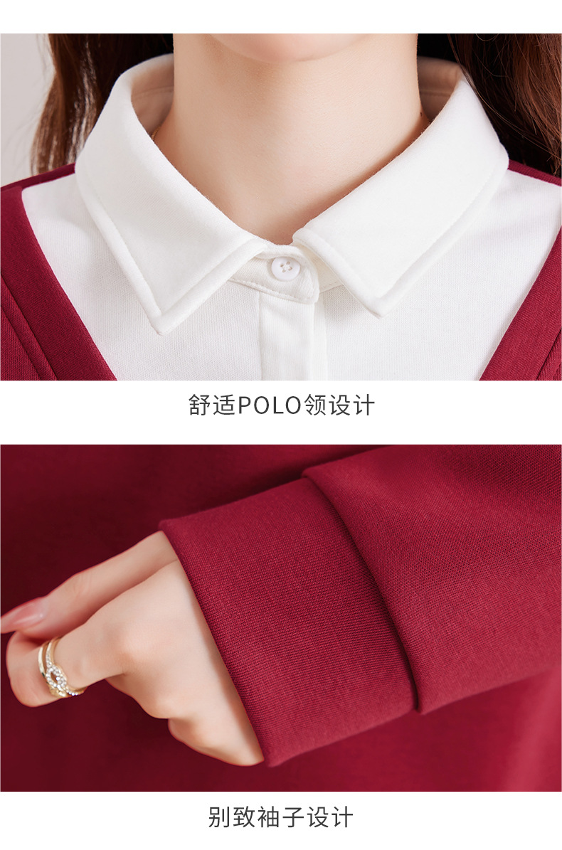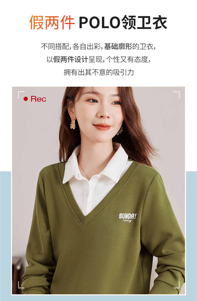 雀说翻领卫衣女新款爆款女装有领红色上衣女士外套AL30045